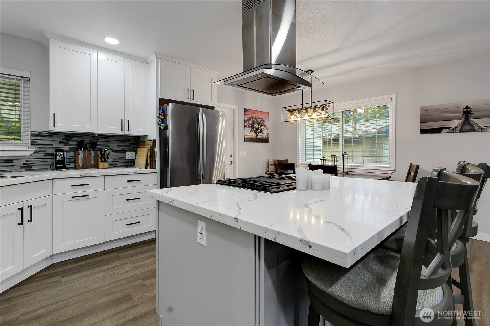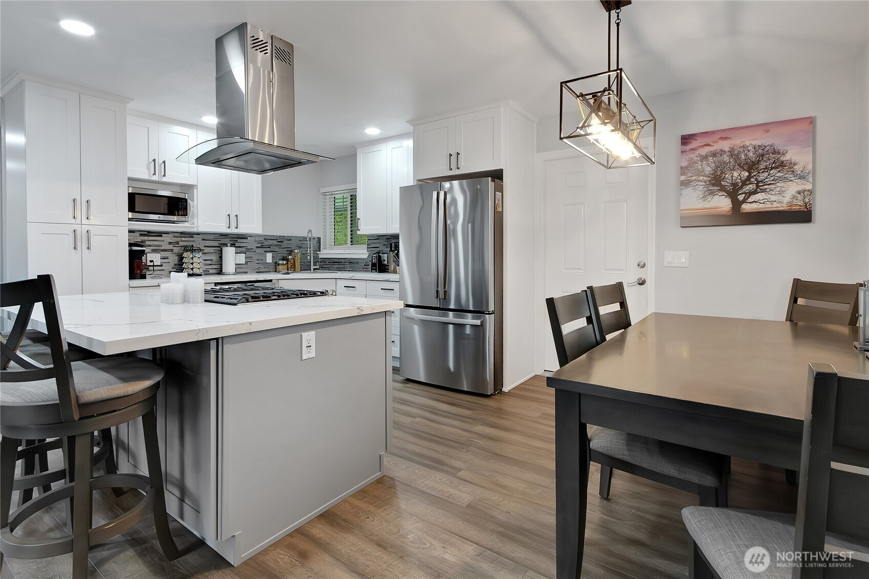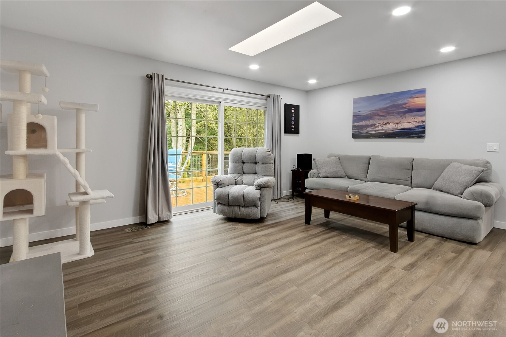 Don’t let first impressions fool you—this spacious 4-bedroom, 2.25-bath rambler with a finished basement offers around 2,200 square feet of flexible living space, perfect for a variety of needs. Situated on a corner lot with mature landscaping and a fully fenced backyard, the home provides both privacy and convenient access to freeways, shopping, and schools. This home features numerous upgrades throughout. The open-concept, gourmet-sized kitchen is perfect for entertaining--allowing you to cook while staying connected with guests. Enjoy stainless steel appliances, updated countertops, backsplash, flooring, and fresh interior paint. Charming farmhouse-style all-wood cabinetry, updated lighting, and wood-wrapped windows add warmth and character. Natural light fills the home thanks to skylights, creating a bright & inviting atmosphere. The finished basement offers excellent potential for an ADU or MIL setup, ideal for multi-generational living or additional income opportunities. Step outside to a low-maintenance deck with durable Trex-style decking-no painting required. With its smart layout and generous space, this home delivers a big-home feel in a comfortable, manageable footprint. This home also comes with free access rights to Mirror Lake, which is stocked with fish and is great for kayaks and other non gas powered water craft, and there is a dog park nearby!