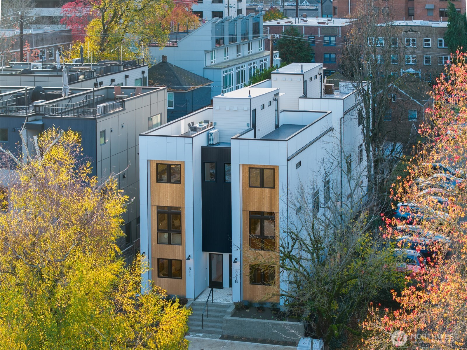 Crisp modern design meets everyday comfort. Four spacious brand-new homes from Pivotal Homes on one of Capitol Hill’s finest tree-lined streets. Step into a main-floor great room with wide-plank floors and a standout kitchen featuring a custom tile backsplash, quartz counters, modern cabinets, and stainless appliances. Powder room for guests. The primary suite offers a spacious ensuite bathroom and generous closet upstairs, with two lower-level bedrooms ideal for guests or work from home. Entertain guests and enjoy stunning views from your private roof deck. Assigned EV-ready parking space included. Walk Score 95 and Bike Score 96. Set on a quiet, peaceful street yet just moments from vibrant conveniences. Photos are of staged unit 311.