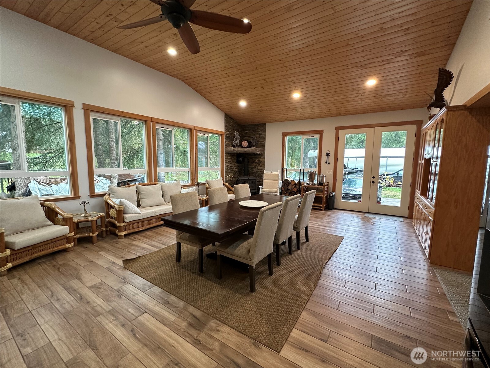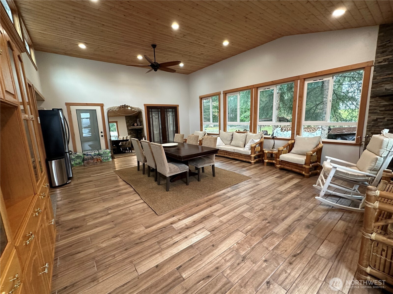 Welcome to a quiet and secluded shy of 2.4 acre fully fenced & gated lot, with 2 beautiful homes in Lake Morton Estates! The main home is 2,482 sqft manufactured doublewide 4 bd/2 bath, office, large pantry, quartz counters & massive sunroom w/wood fireplace for entertaining & gatherings. The recently converted 1,900 sq ft barn offers 3 bd/2¾ baths, an office, kitchen, oversized island w/quartz counters, metal roof. The owner converted the barn into living space & added a sunroom to the manufactured home without permits. Will require applying for and obtaining the required permits, inspections, & approvals to meet current building codes & health dept. Additional info available through your Broker, please consult with them first! Sold as-is!