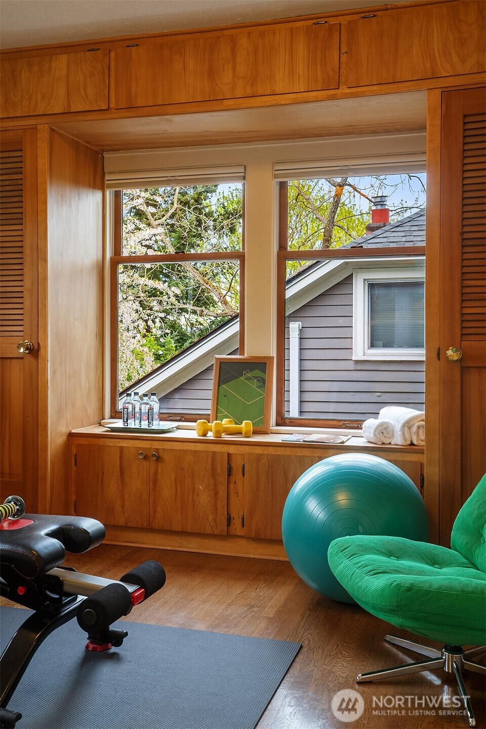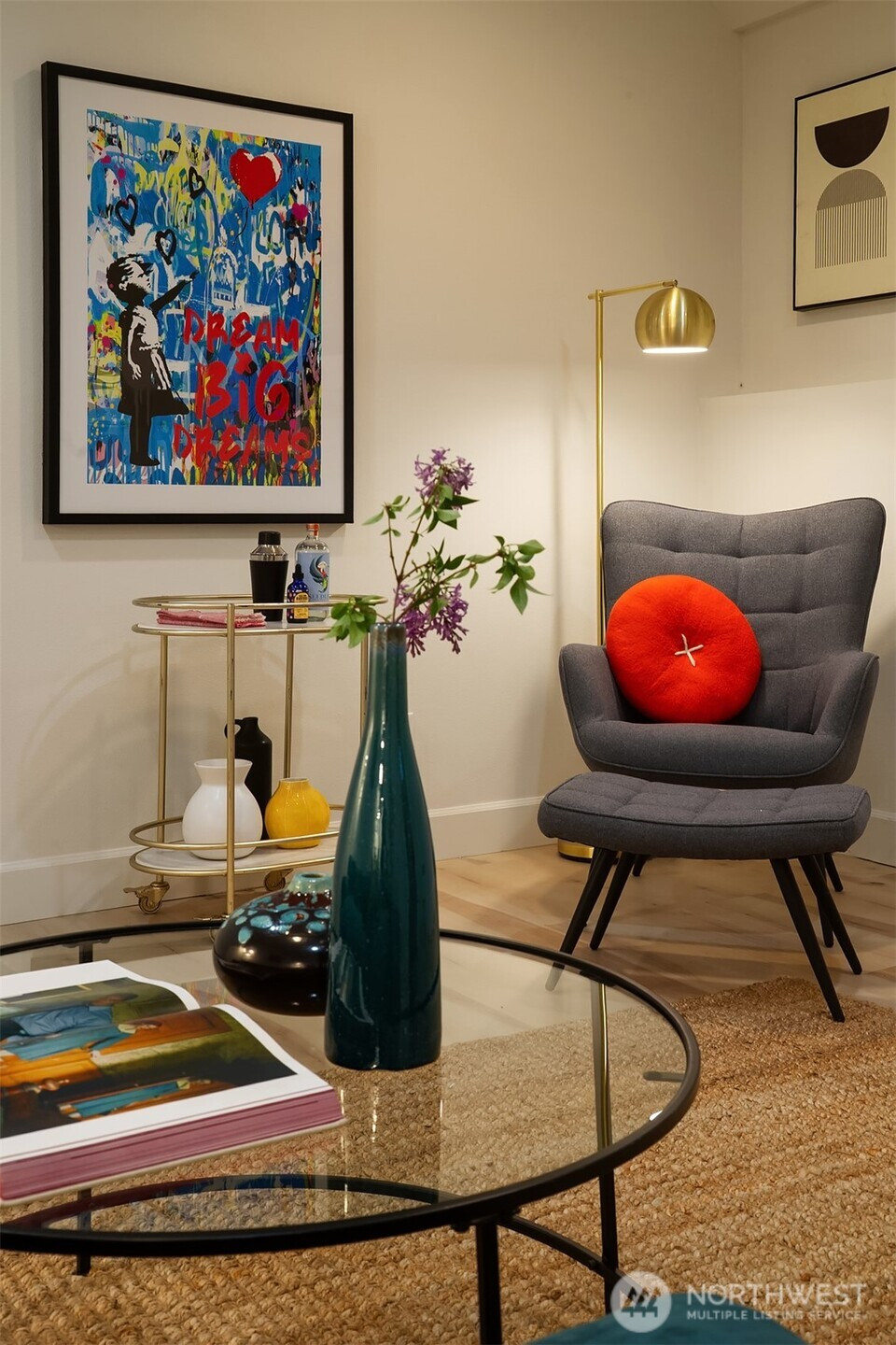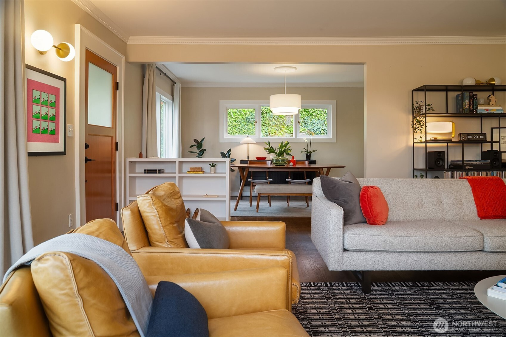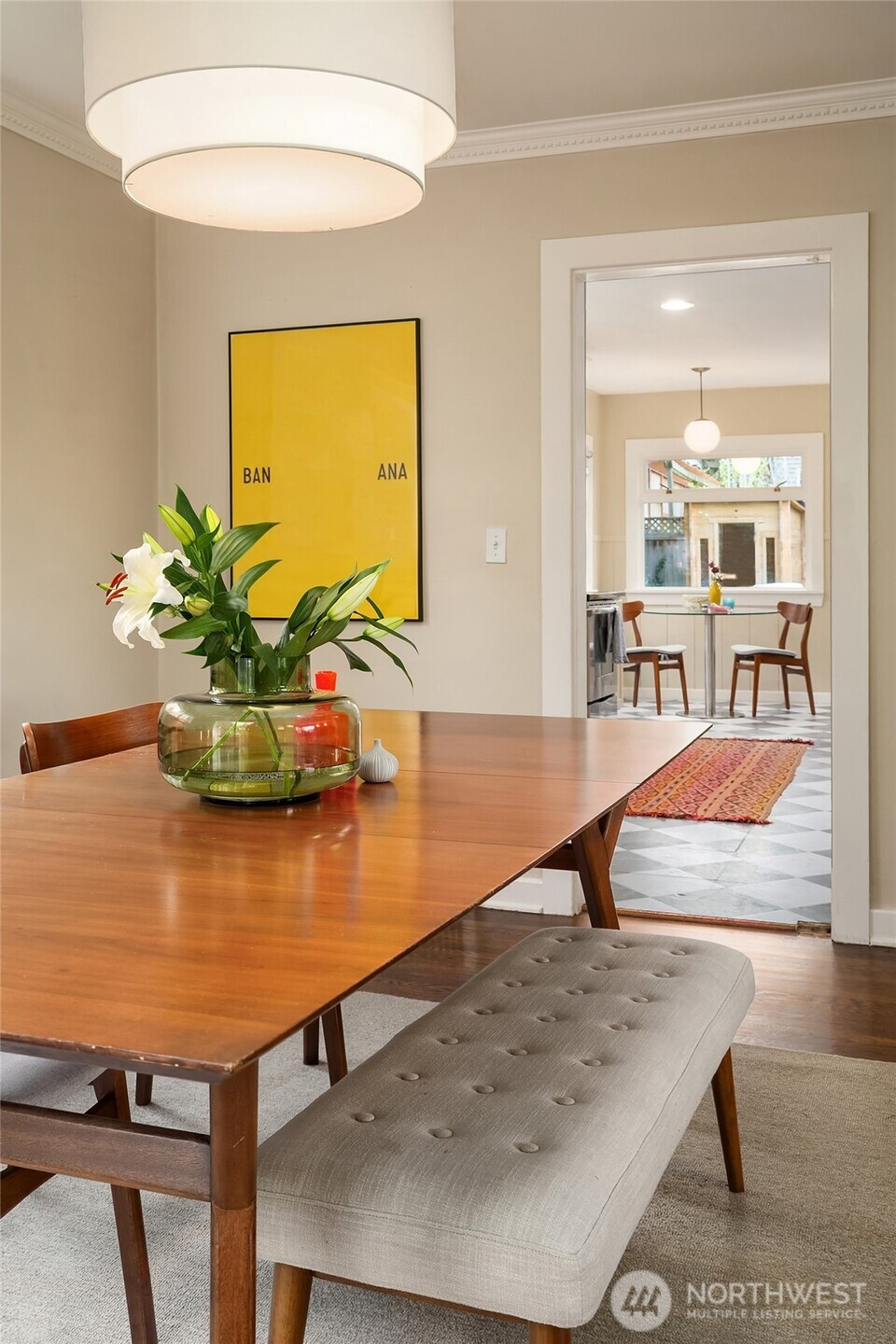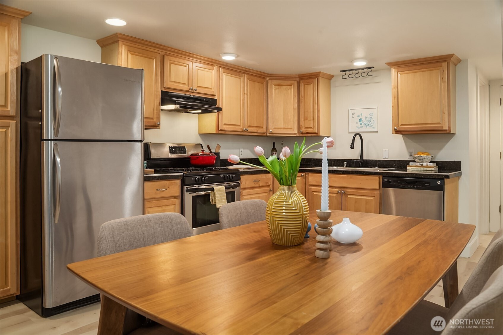 Sitting pretty, a quick jaunt from Greenlake and walking distance to the heart of Tangletown, this stylish Tudor exudes quiet luxury. Perched for privacy with an oasis-like backyard complete with sauna, lawn and garden beds and a party size deck. The "relax you’re home vibes" start as soon as you walk in. The light moves softly through the space, offering warmth regardless of season. The living room is anchored by peek-a-boo views and a beautiful fireplace with custom surround. The dining room opens to a dreamy kitchen and jewel-box breakfast nook with garden views. The main floor bedroom with Ralph Lauren vibes and a walk-in closet is right next to a stylish full bath. Upstairs delights with warm fir floors, tree-top views and 3 well-appointed bedrooms. The beautifully remodeled upstairs bathroom is as functional as it is pretty. And all this goodness is connected by a spacious upstairs landing charmingly lit by a stunning stained glass window. Soaring ceilings in the lower-level living room set the tone. And whether you want additional living space, a deluxe Airbnb, or guest quarters, the possibilities in the lower-level abound. In McDonald International attendance area. Dreamy.