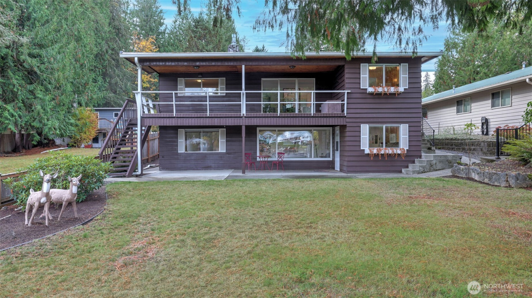 This charming and well-maintained 1960s split-entry home on desirable Lake Morton featuring a flexible two-kitchen, two-dining layout and separate entrance doors to lower level no stair entry—perfect for entertaining, multi-generational living, or generating rental income. This 3BR/1.75BA home shines with new carpet, updated flooring throughout, and fresh interior paint. Additional perks include a home office, large laundry/craft room, and abundant storage. Outside, enjoy your detached 2-car garage, RV parking, and dual carports. Take in panoramic lake views from your private dock, covered deck, and patio while you entertain year round.