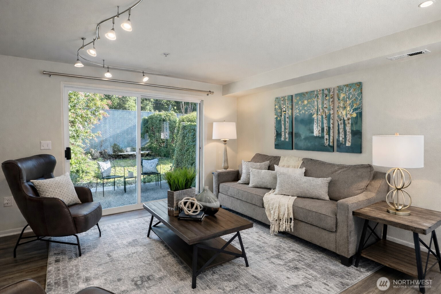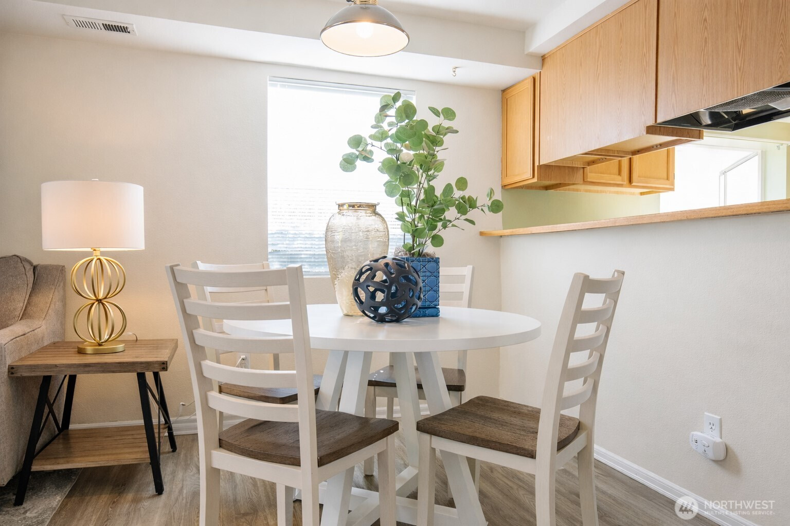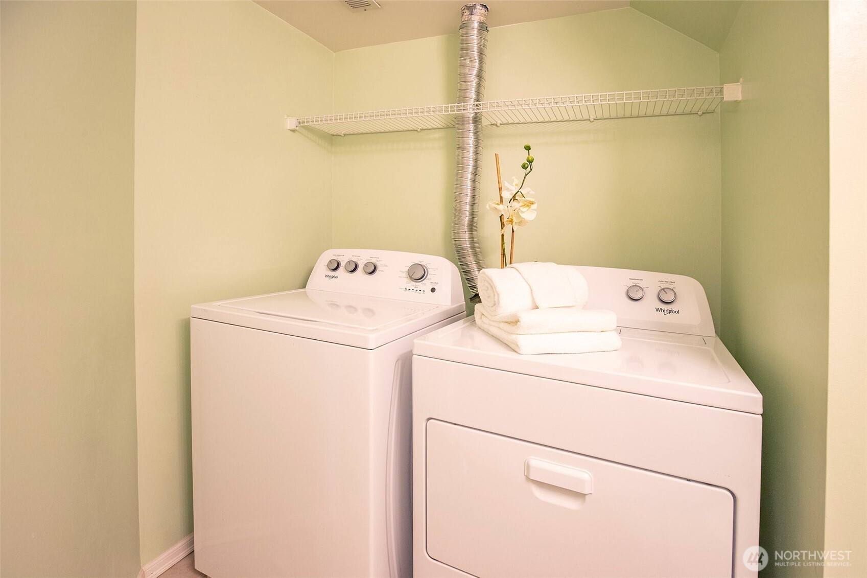 Welcome to Park Place Townhomes in the heart of downtown North Bend, where magnificent mountain views greet you right from your own home. This light-filled 2-story end-unit offers privacy, abundant natural light, and stunning views of Mount Si. The spacious Living room features a cozy gas fireplace and seamless access to a private patio—perfect for morning coffee or summer BBQs. The Kitchen is equipped with stainless steel appliances and generous cabinet storage, creating both functionality and style. A convenient half bath and full-size laundry are located on the main level. Upstairs there are 2 spacious bedrooms, including Primary with breathtaking Mount Si views, a large closet, and direct access to the full bath with dual sinks. Updated luxury vinyl plank flooring throughout adds a clean, modern touch. Enjoy the ease of a 1-car garage plus driveway parking. Ideally located just minutes from shopping, restaurants, local bars, trails, and with Si View Park right next door. Quick access to I-90 makes commuting simple. Welcome home!