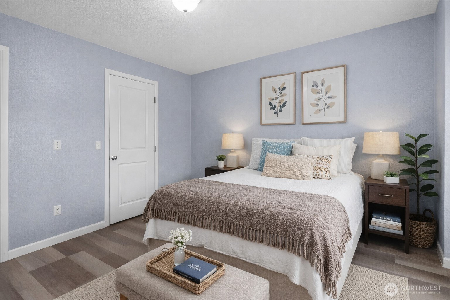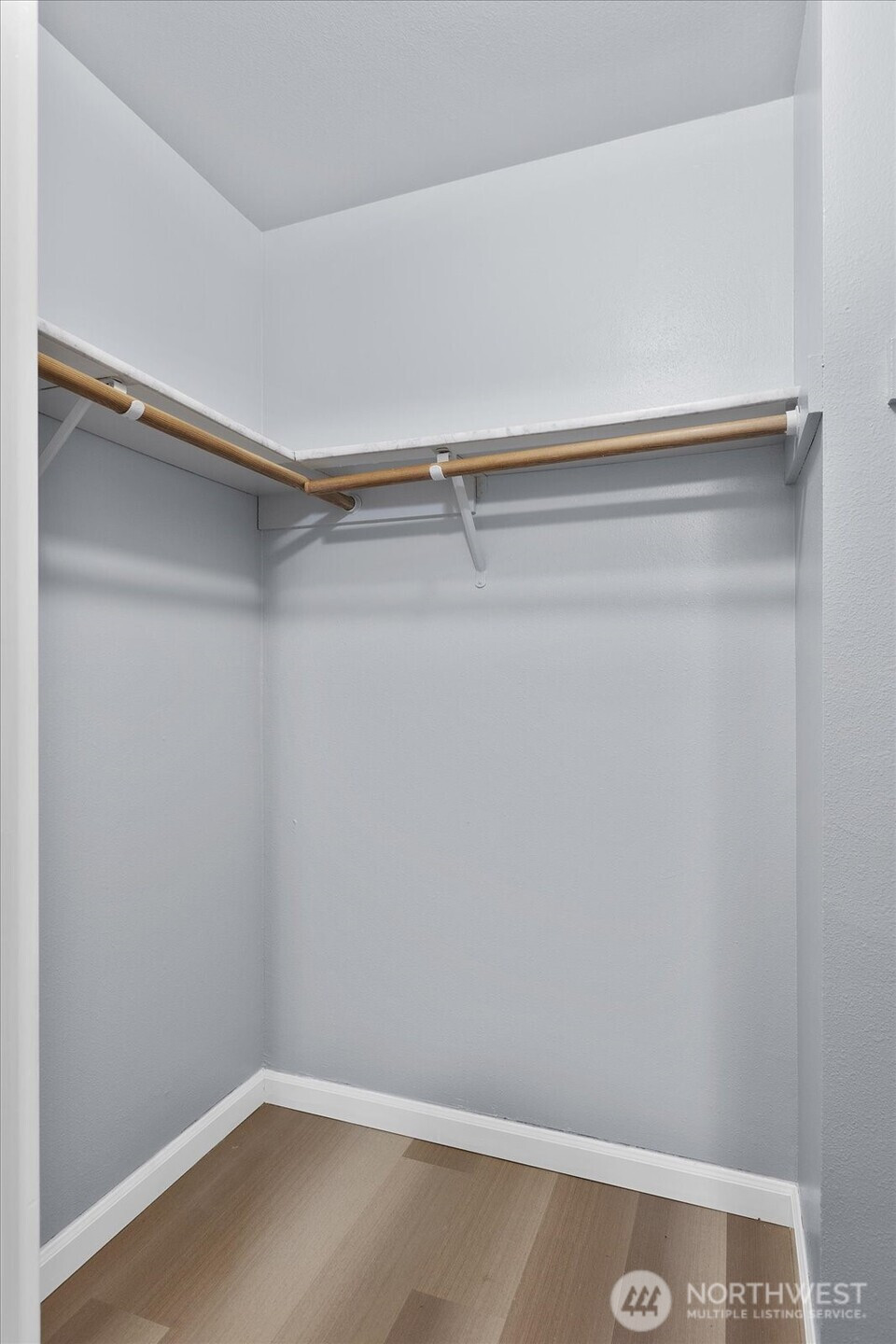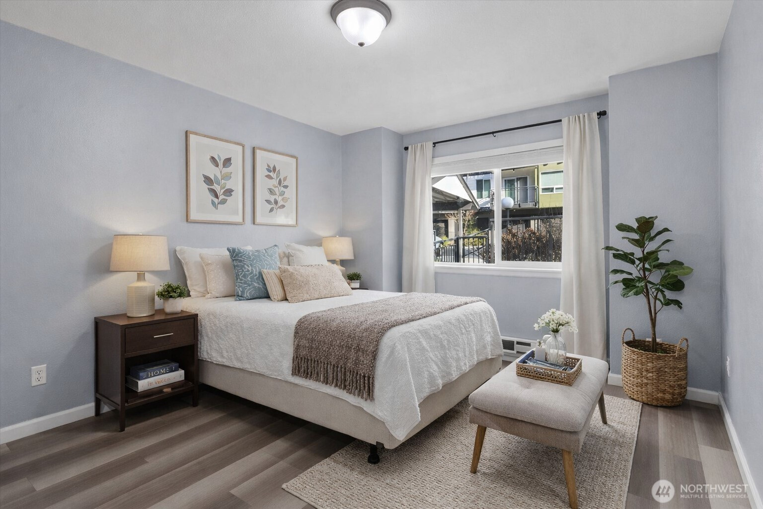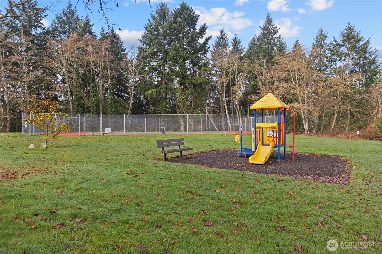 Perched as a top-floor end unit with no stairs, this light-filled condo backs to a serene greenbelt, offering exceptional privacy and a peaceful setting. A slate entry leads into the spacious living room, where a cozy wood-burning fireplace creates a warm, inviting focal point. Large windows flood the home with natural light, enhanced by fresh interior paint and updated light fixtures throughout. Step outside to your private balcony—perfect for morning coffee or unwinding at the end of the day. The kitchen features stainless steel appliances and luxury vinyl plank flooring, blending style and durability. The beautifully renovated bathroom boasts an alabaster quartz countertop, custom cabinetry, and thoughtfully chosen accent paint. Both bedrooms are generously sized with walk-in closets. All appliances are included for true move-in readiness. Enjoy two covered parking spaces (41 & 42). HOA dues include water, sewer, and garbage. Community amenities offer a garden, athletic court, clubhouse, swimming pool, off leash dog park, and scenic walking trails. Conveniently located just minutes from groceries, shopping, and dining.
