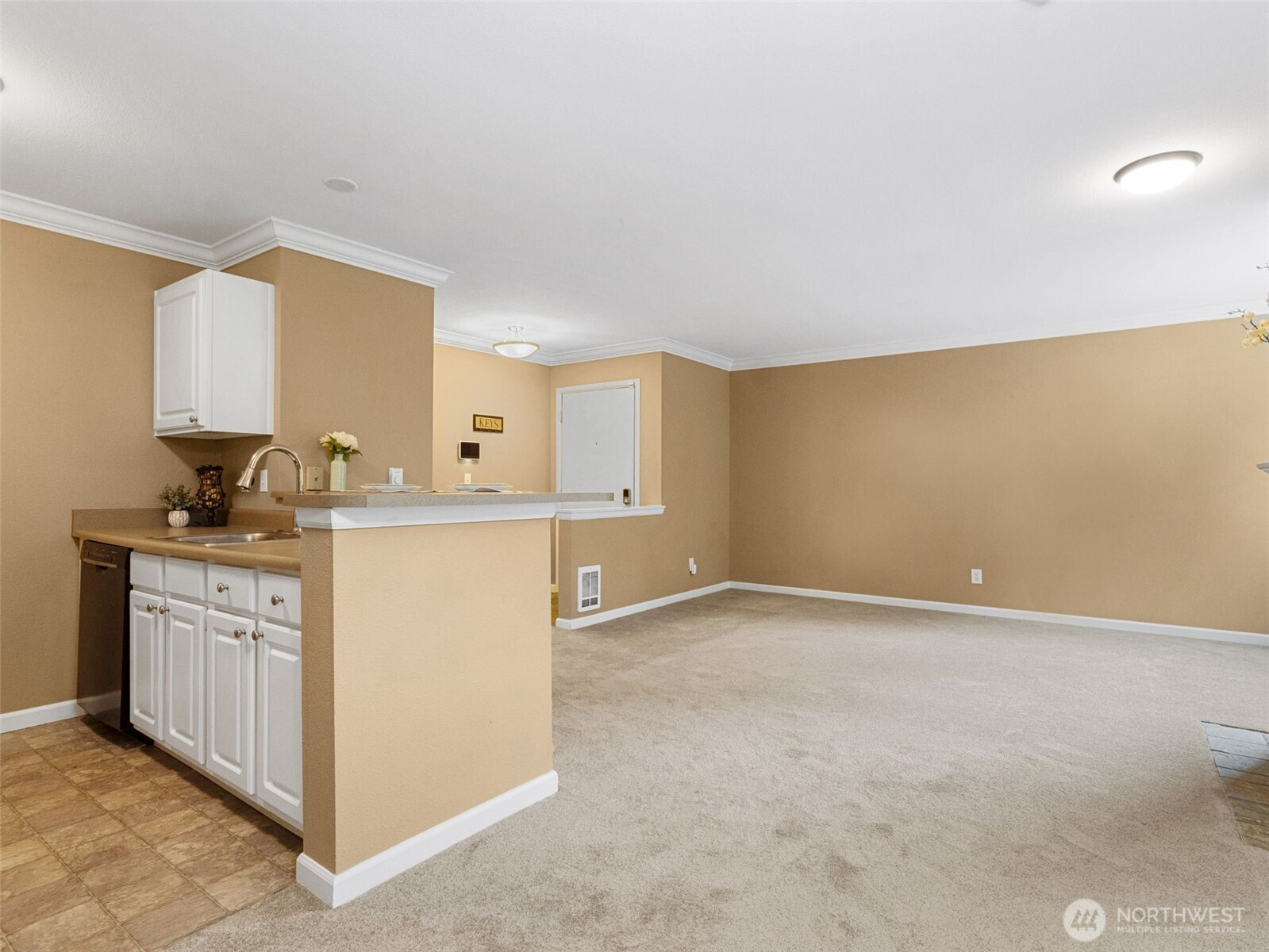 This bright, welcoming, street level condo with NO STAIRS has an open layout and brand-new carpet. It is designed for both comfort and ease of living. The spacious living area flows to a dining space and a private back balcony that overlooks a peaceful greenbelt—perfect for enjoying a quiet, natural setting. This home offers accessible wide hallways and doorways throughout, creating a more open and functional feel. Although technically a second-floor unit, it features true street-level entry making everyday access simple and convenient. A covered entry and an assigned carport parking space directly in front (with extra room for easy loading and unloading) add to the convenience. Inside, you’ll find a well-equipped kitchen with newer range/oven, microwave, and dishwasher. The cozy wood-burning fireplace, white millwork, and crown molding bring warmth and charm to the space. The oversized bedroom offers exceptional flexibility, with a walk-in closet and room for a home office or additional living space. Located in the gated Madera West Condo community where rentals are allowed and up to two pets welcome. HOA dues include water, sewer, and garbage, plus access to amenities: clubhouse, pool, hot tub, exercise room, sports court, playground, dog park & community garden. Also available are RV/boat parking and guest parking. Close to parks and I-5 & light rail access. Vivint security system in home is included.