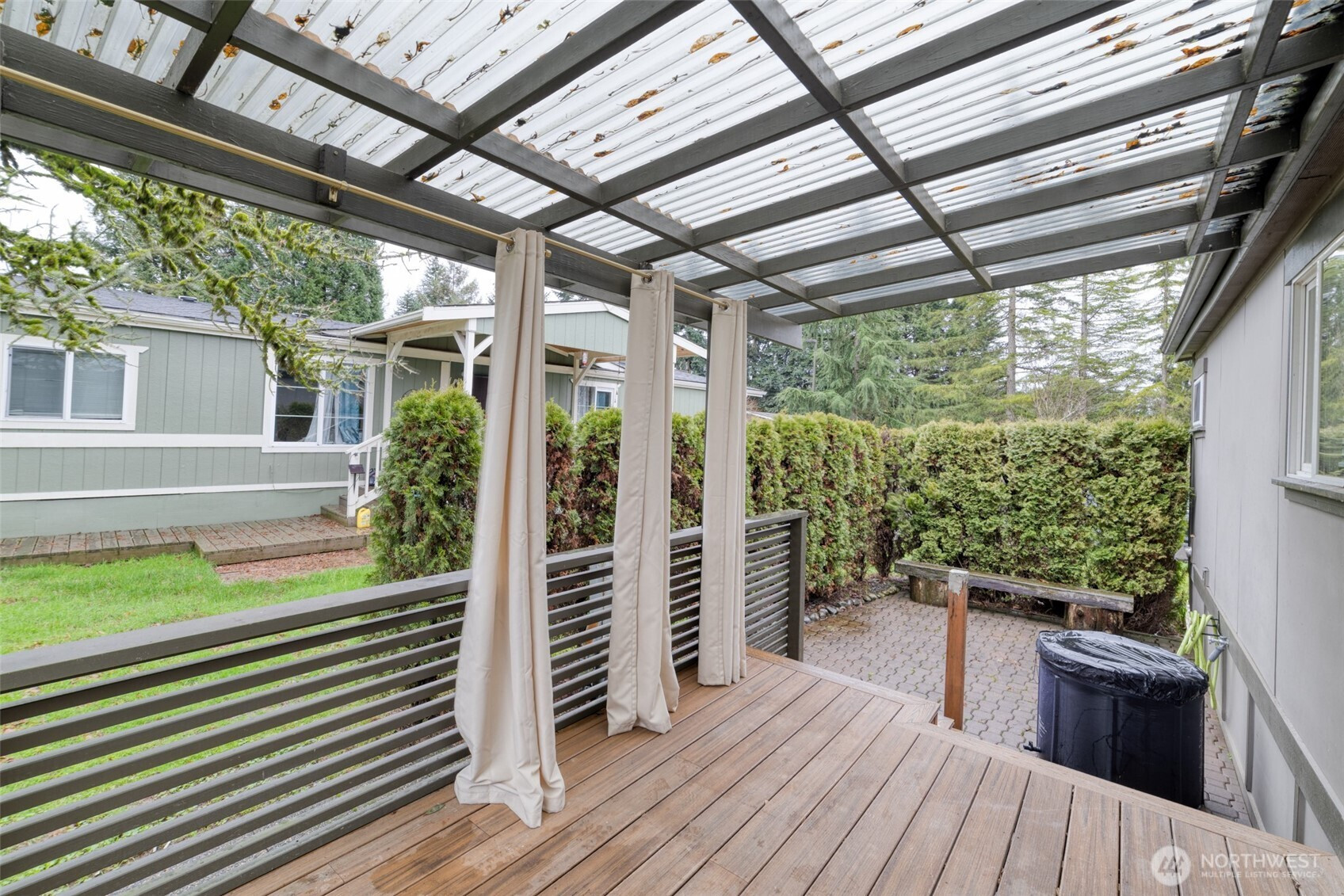 This beautifully maintained 3-bed, 2-bath manufactured home is located in the desirable College Park community of Lea Hill and offers 1,244 sq ft of comfortable, well-designed living space. Highlights include vaulted ceilings, great natural light, a cozy wood stove, and beautiful flooring throughout. The spacious kitchen provides plenty of room to cook and gather, while the private patio/deck is perfect for relaxing or entertaining. Two assigned parking spaces and a Community Recreational Area to add to the appeal. Conveniently located near shopping, schools, and major routes—an excellent opportunity to own a beautiful home in a well-run park. Some photos of home are virtually staged.