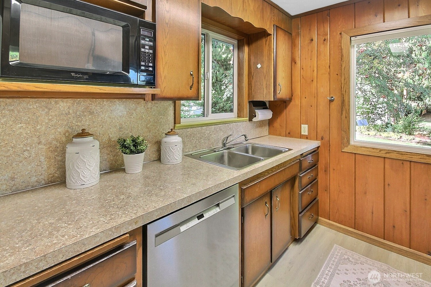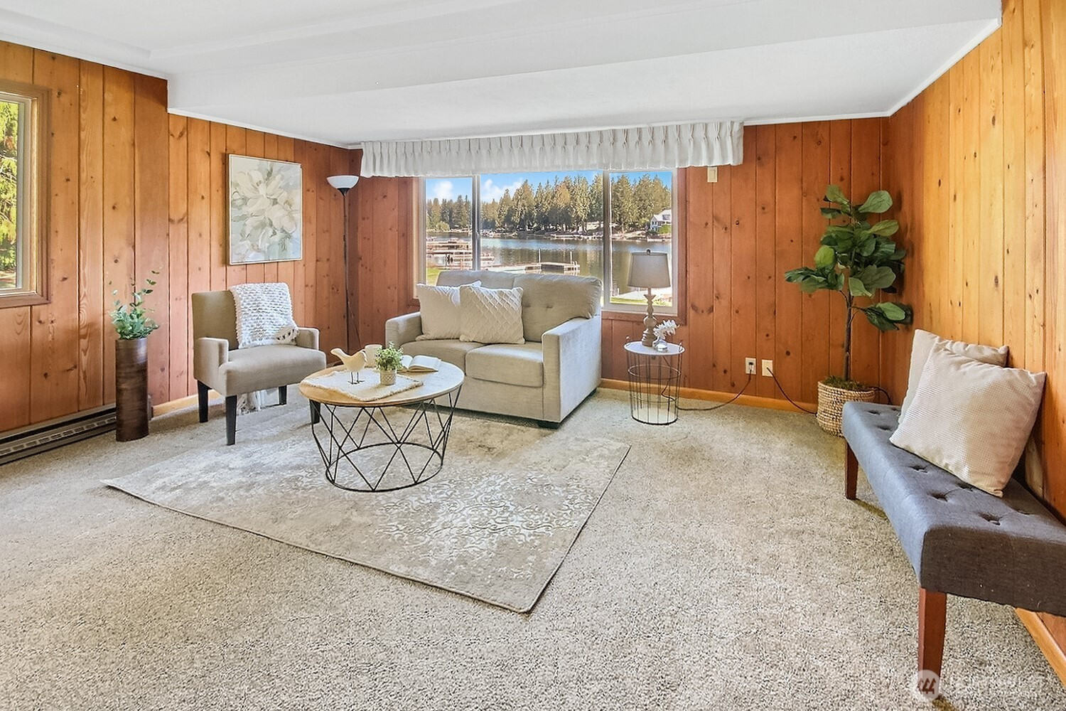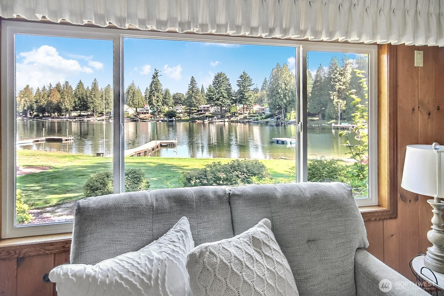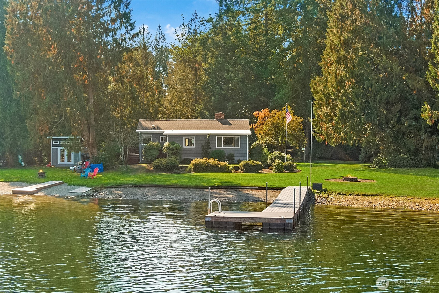 Your lakefront dream is an affordable reality! Drive down the wooded private driveway to this adorable home that includes 2 separate tax lots for a total of 90 feet of low bank, Lake Morton frontage on over an acre of land! The original pine paneling is in pristine condition and adds to the undeniable charm of this sweet home. All the necessary updates, but ready for the cosmetic improvements that will make it your own. 930 sq ft in the main house + 384 sq ft in the heated "auxiliary/guest" living space. Huge trex deck, fireplace, beautiful mature landscaping. Relax on the dock, around the firepit or enjoy the expansive yard. Make this your year round home or weekend get away!