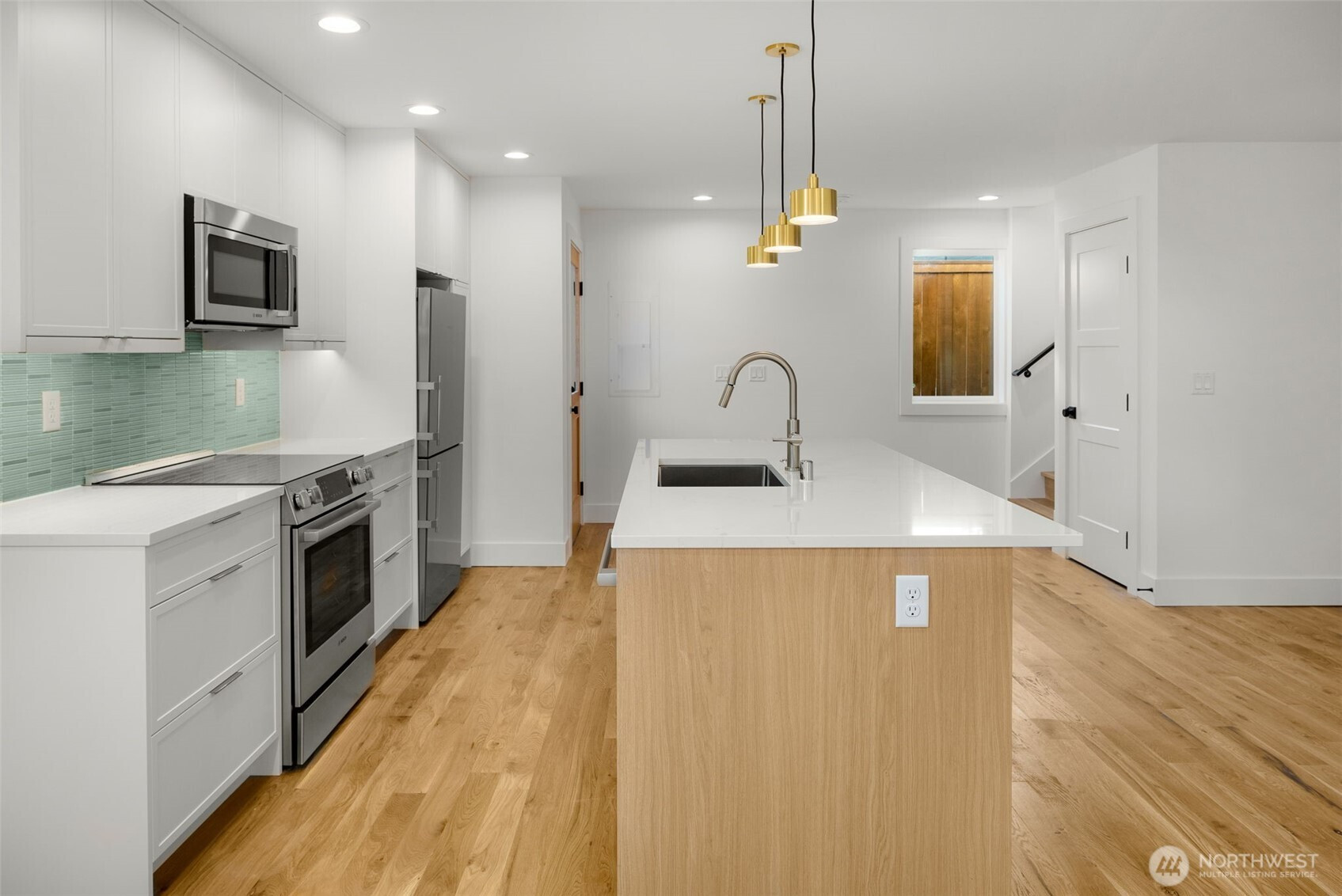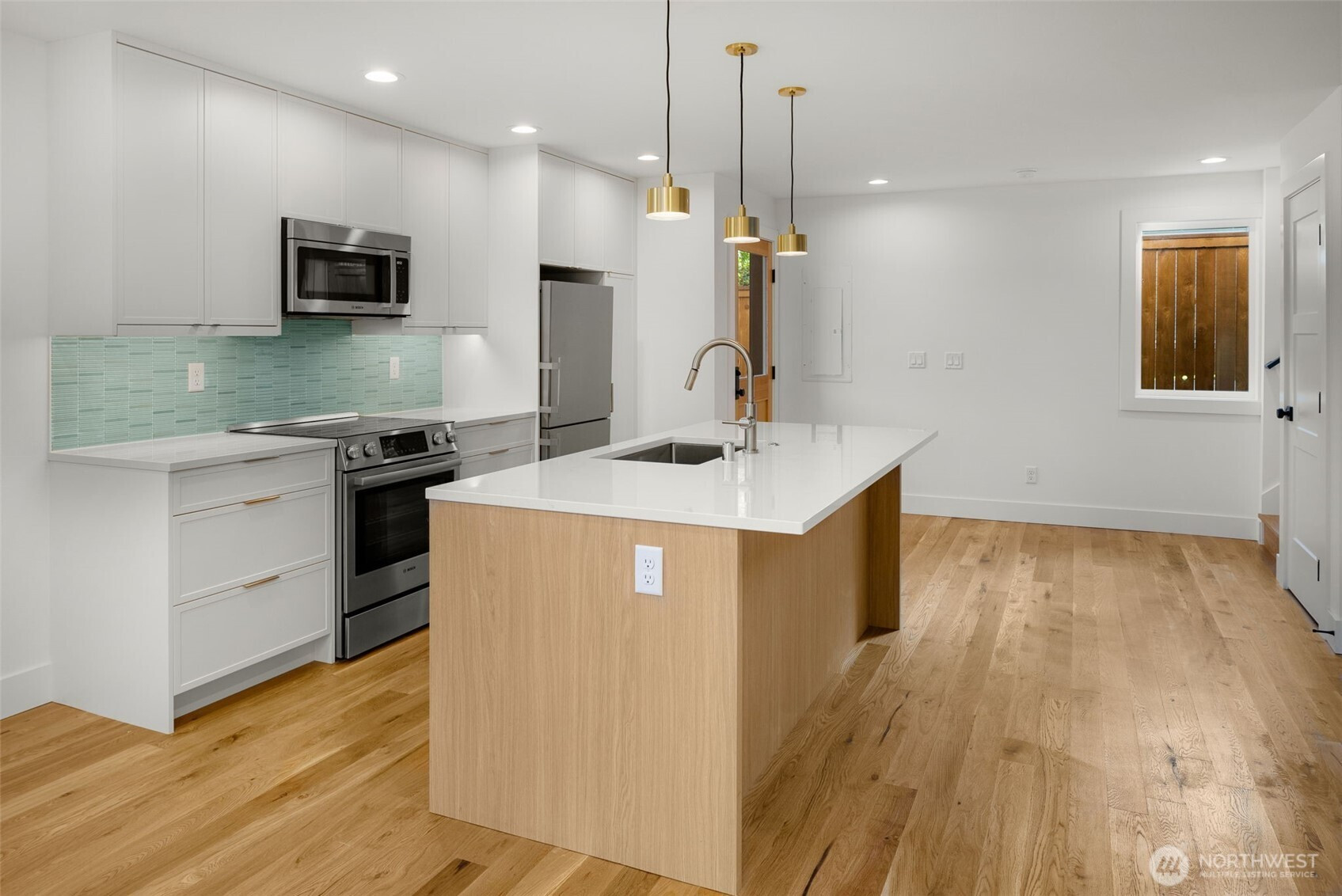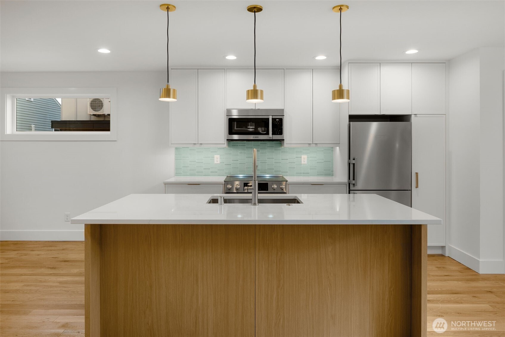 Welcome to this BRAND-NEW 2-bedroom residence by Hernandez Builds in Greenwood! This turn-key new construction home offers off-street parking, walls of windows, open-concept living on the entry-level, a luxurious primary suite, storage options, and a private rooftop deck for you to enjoy all year round. Highlights include high-end stainless steel appliances, chef's kitchen with island + breakfast bar, custom finishes & more! Roofdeck is complete with water/electric hookups on for grilling or convenient entertaining! Enjoy all things Greenwood: Preserve & Gather Coffee, Bar Sur Mur, Flint Creek Cattle Co., NEW Trader Joe's, Metropolitan Market, Lamplighter, Chuck's Hop Shop! Easy access to Green Lake, I-5, Hwy 99 & more! Don't miss out!