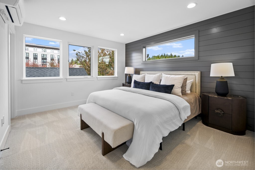 Distinct and refined, this 2-bedroom town home offers thoughtfully designed living in a brand-new Greenwood micro-community. An open main level connects living and dining to a well-appointed kitchen; a private rooftop deck tops the home, offering an opportunity to unwind with nature. The top-floor primary retreat includes a walk-in closet and ensuite bath, while the lower level second bedroom provides comfortable separation. The entry level adds a versatile flex space for bikes, gear, or a compact studio, and private, off-street parking simplifies arrivals. Moments to Coyle’s Bakeshop, Taproot Theatre, Chuck’s Hop Shop, and FlintCreek Cattle Co. Near Green Lake and Woodland Park Zoo. A must see!