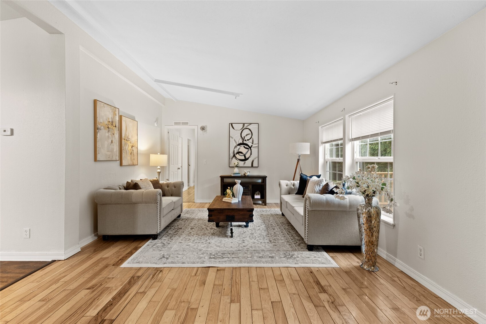 Escape to this gorgeous, light-filled retreat perfectly situated on 1.65 peaceful acres in Duvall. This home offers a seamless blend of natural beauty and functional design. The fantastic floor plan is anchored by soaring vaulted ceilings and expansive living spaces featuring classic hardwood floors. The heart of the home is a light and bright kitchen with abundant cabinetry and counter space, perfect for culinary enthusiasts. Retreat to the spacious primary suite, complete with a large walk-in closet and private ensuite bath. Two additional bedrooms, a full guest bathroom, and a convenient half-bath provide ample space for everyone. Relax in the sunroom or step outside to the fully fenced grounds, offering endless possibilities for play, vibrant gardens, animal pastures or hobby farm. The property is well-equipped with a two-car garage and two versatile outbuildings, providing excellent storage for hobbies or equipment. Whether you are wandering through your private acreage or enjoying the tranquil atmosphere from the deck, this is a rare opportunity to own a piece of paradise.