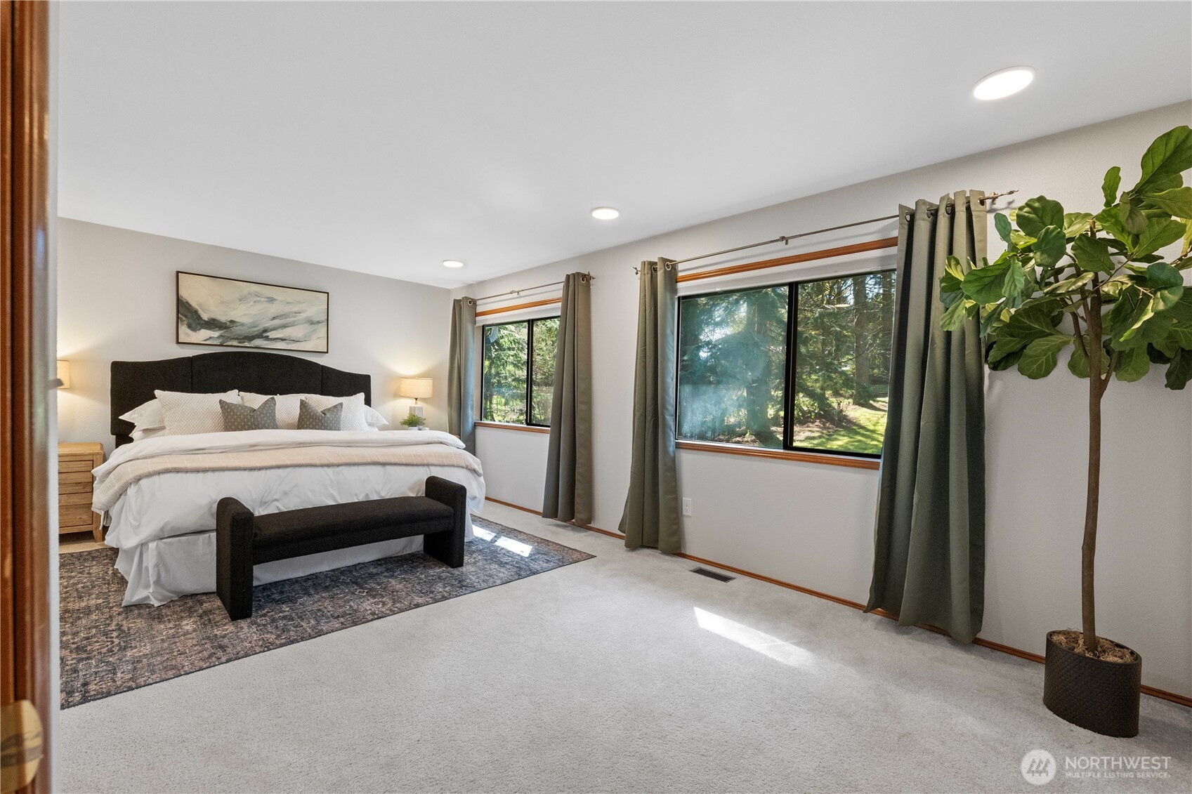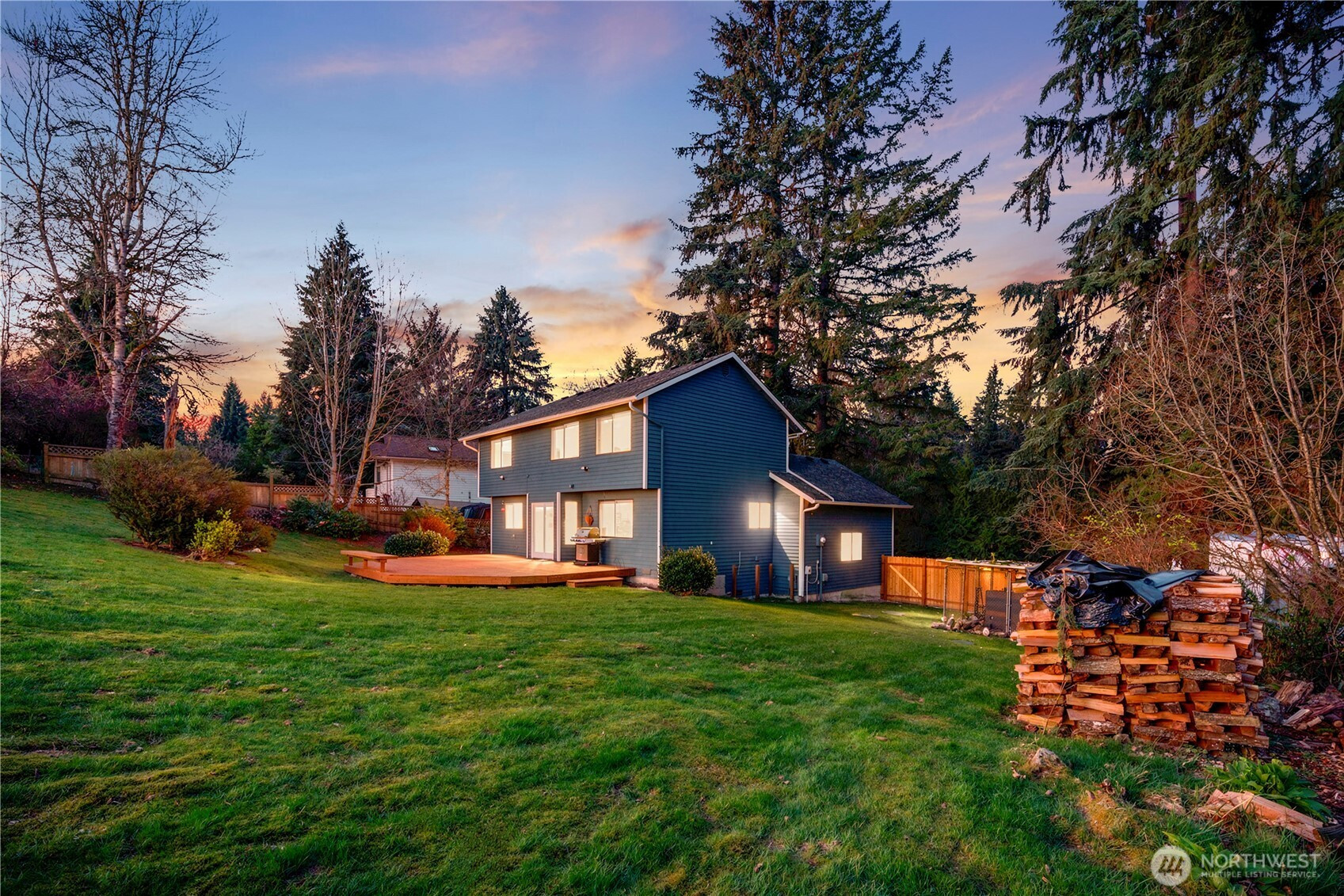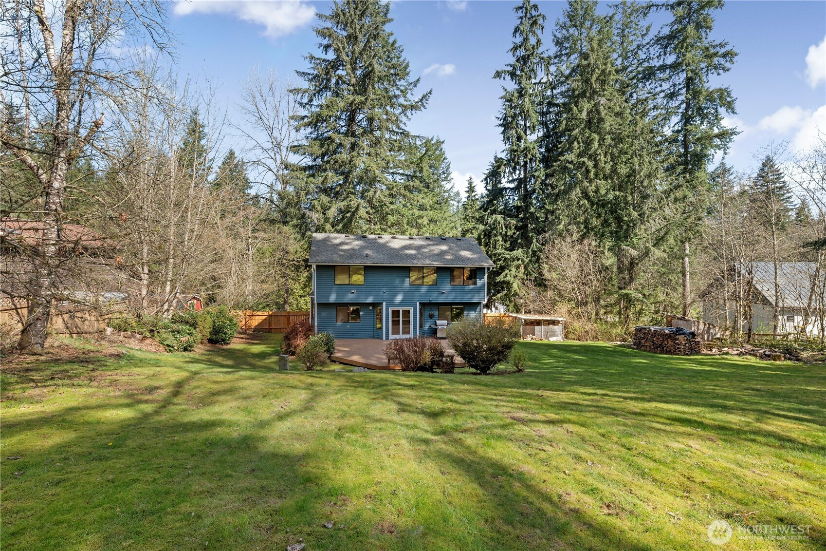 This well-cared-for 3-bed, 2.5-bath home offers 1,800 sf of comfortable living space on a shy acre with room for all of the best toys. Step inside the bright, inviting living room with vaulted ceilings, a bay window, and cozy fireplace. The formal dining area boasts wood floors and connects easily to the kitchen, creating a layout that works for enjoying and entertaining alike. The kitchen (featuring a breakfast bar, ceramic cooktop, SS fridge, walk-in pantry, and plenty of cabinet space) opens to the family room, while French doors lead to a large deck and beautiful backyard—perfect for relaxing, entertaining, or enjoying the outdoors. The main floor laundry and a 1/2 bath add convenience, and upstairs, the primary suite offers generous space, large windows, a walk-in closet, and a private en suite. Two additional bedrooms and another full bathroom mean space for everyone/everything. A standout feature is the ~960 sq ft detached shop, thoughtfully built on a reinforced concrete slab. With tall ceilings and a 12’ x 14’ high-lift garage door, it’s fantastic for storage, and a hobbyist's dream! The additional 8’ x 8’ rear door and side access add flexibility, and there’s room for multiple vehicles. Located just minutes from downtown Duvall, you’ll enjoy convenient access to local restaurants, shops, and everyday services while having space to spread out at home. Come to a place where everyday living feels easy, and there’s room to pursue everything you love!