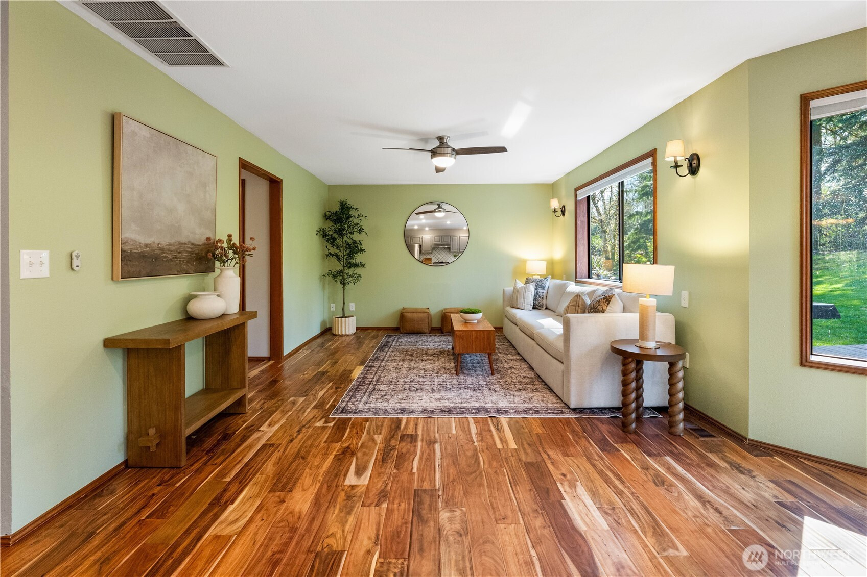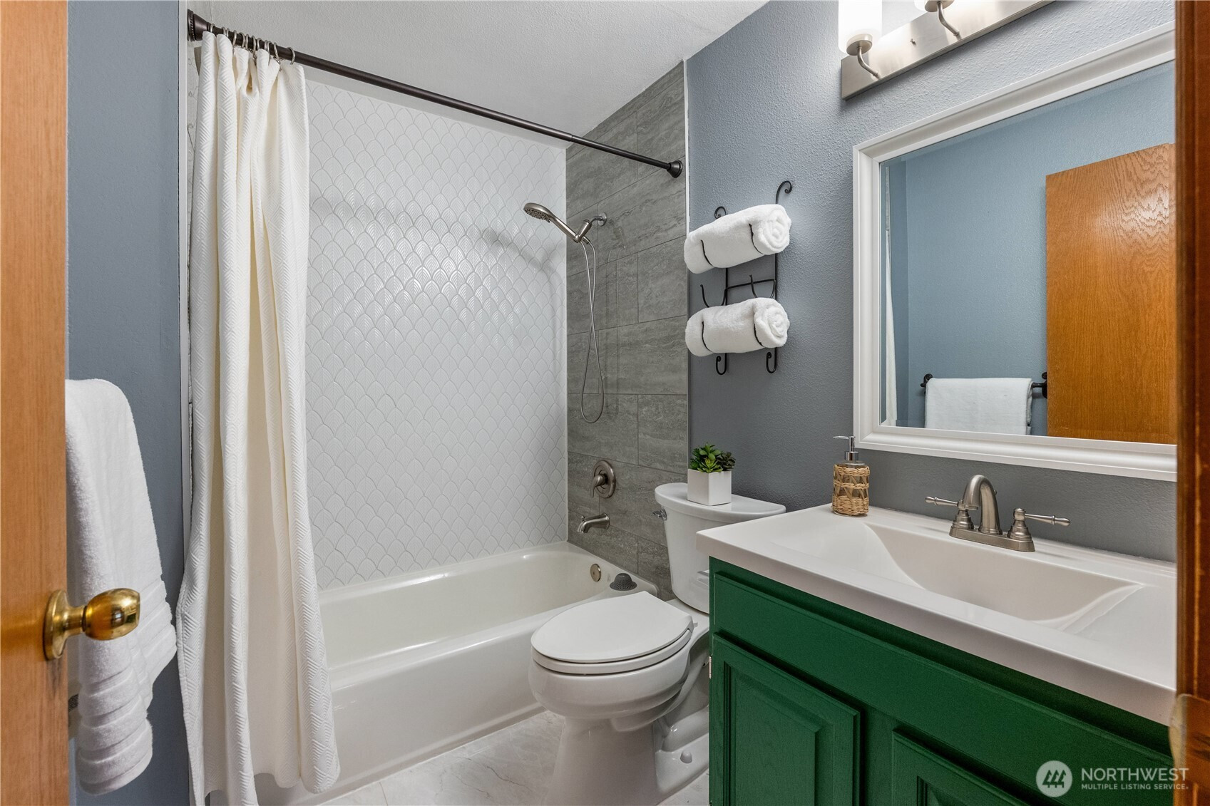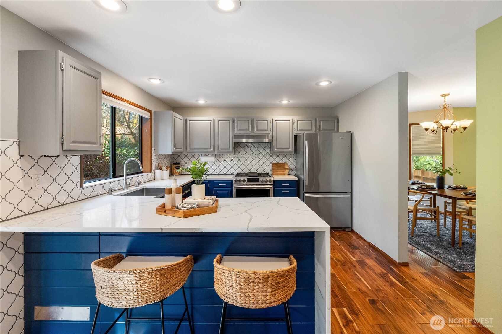 This well-cared-for 3-bed, 2.5-bath home offers 1,800 sf of comfortable living space on a shy acre with room for all of the best toys. Step inside the bright, inviting living room with vaulted ceilings, a bay window, and cozy fireplace. The formal dining area boasts wood floors and connects easily to the kitchen, creating a layout that works for enjoying and entertaining alike. The kitchen (featuring a breakfast bar, ceramic cooktop, SS fridge, walk-in pantry, and plenty of cabinet space) opens to the family room, while French doors lead to a large deck and beautiful backyard—perfect for relaxing, entertaining, or enjoying the outdoors. The main floor laundry and a 1/2 bath add convenience, and upstairs, the primary suite offers generous space, large windows, a walk-in closet, and a private en suite. Two additional bedrooms and another full bathroom mean space for everyone/everything. A standout feature is the ~960 sq ft detached shop, thoughtfully built on a reinforced concrete slab. With tall ceilings and a 12’ x 14’ high-lift garage door, it’s fantastic for storage, and a hobbyist's dream! The additional 8’ x 8’ rear door and side access add flexibility, and there’s room for multiple vehicles. Located just minutes from downtown Duvall, you’ll enjoy convenient access to local restaurants, shops, and everyday services while having space to spread out at home. Come to a place where everyday living feels easy, and there’s room to pursue everything you love!