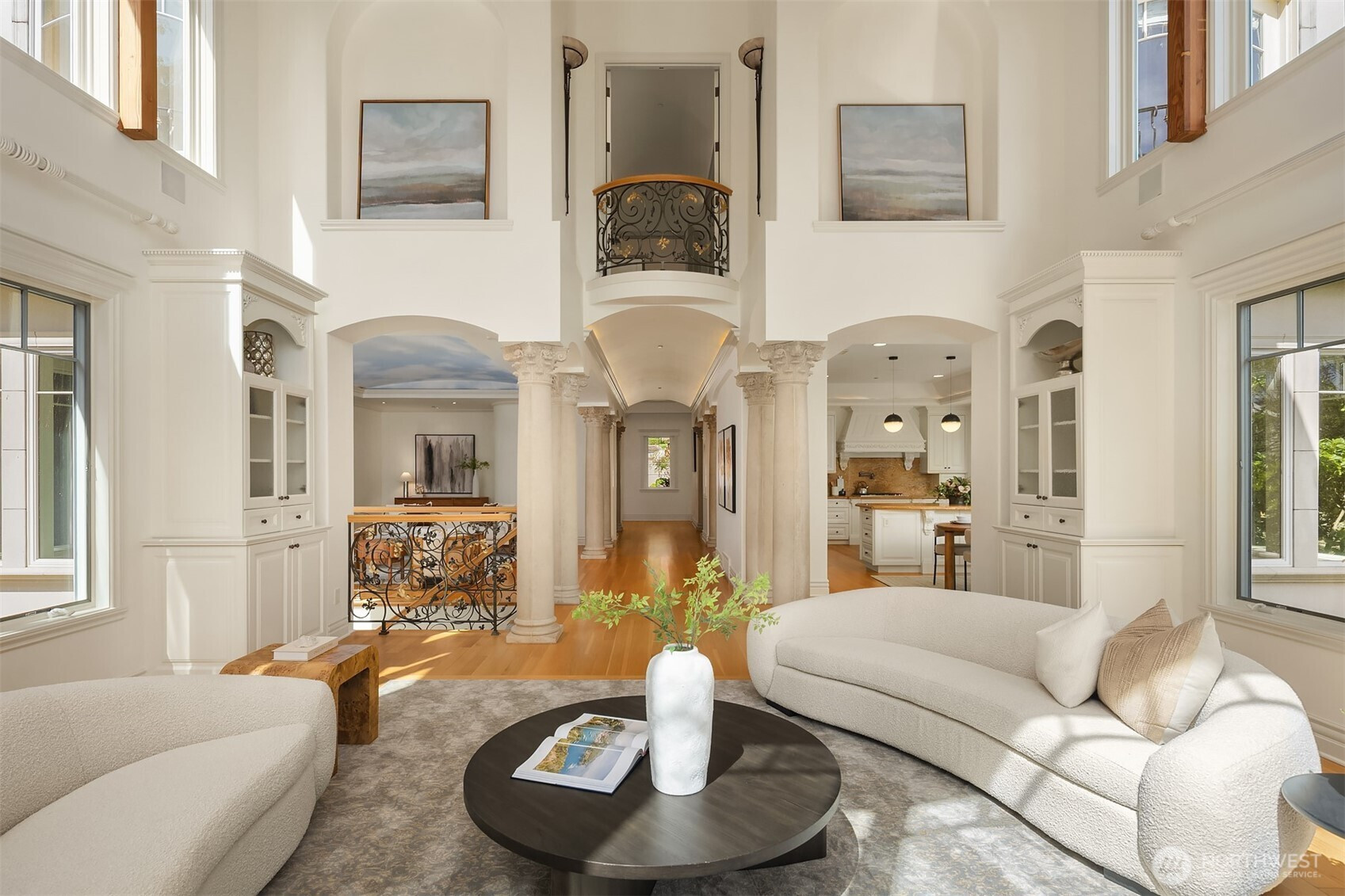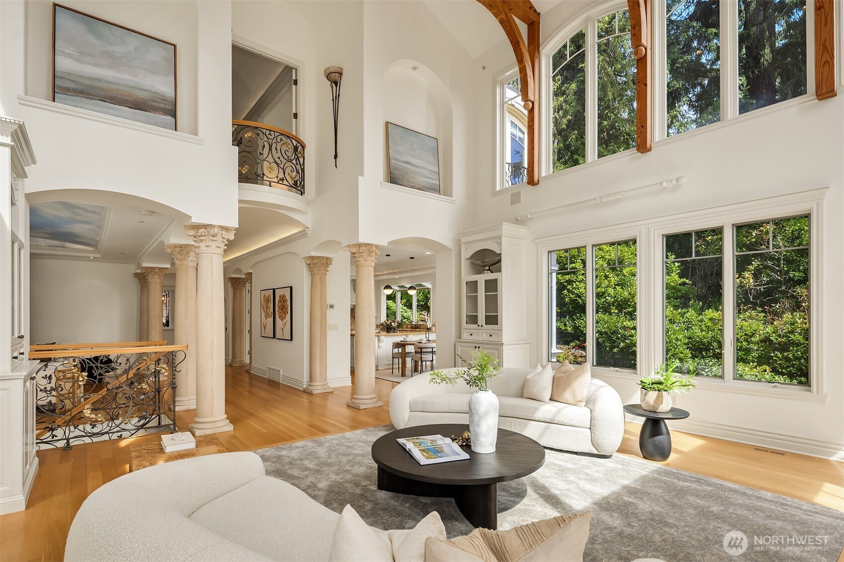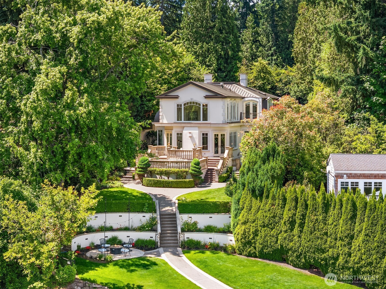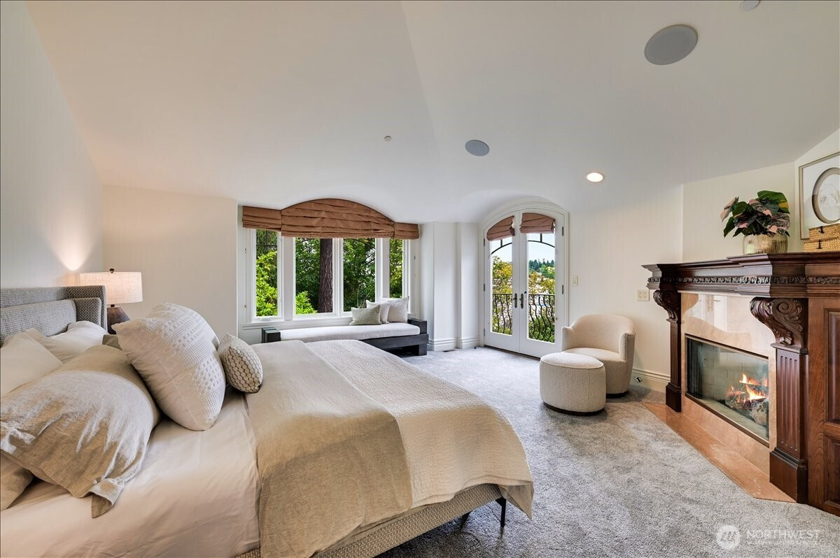 (503) 893-8874A distinctive gated estate in one of the nation’s most coveted neighborhoods. This Mediterranean-style residence features cathedral ceilings, Italian columns, and French doors opening to serene patios and a 200-ft dock with year-round moorage. Gorgeous wrought iron railings, crystal chandeliers, and a whole-house sound system add to the refined ambiance. Each bedroom is an ensuite. Downstairs offers relaxation with a wine cellar, spa, cold bar and terraces. Chef’s kitchen is outfitted with brand-name appliances. Curved design flows through the lush, landscaped grounds of this Lake Washington shore house. Mature trees, vibrant blooms, and curated shrubs welcome visits from blue herons and bald eagles. Fountain, BBQ island, firepit, dog run.