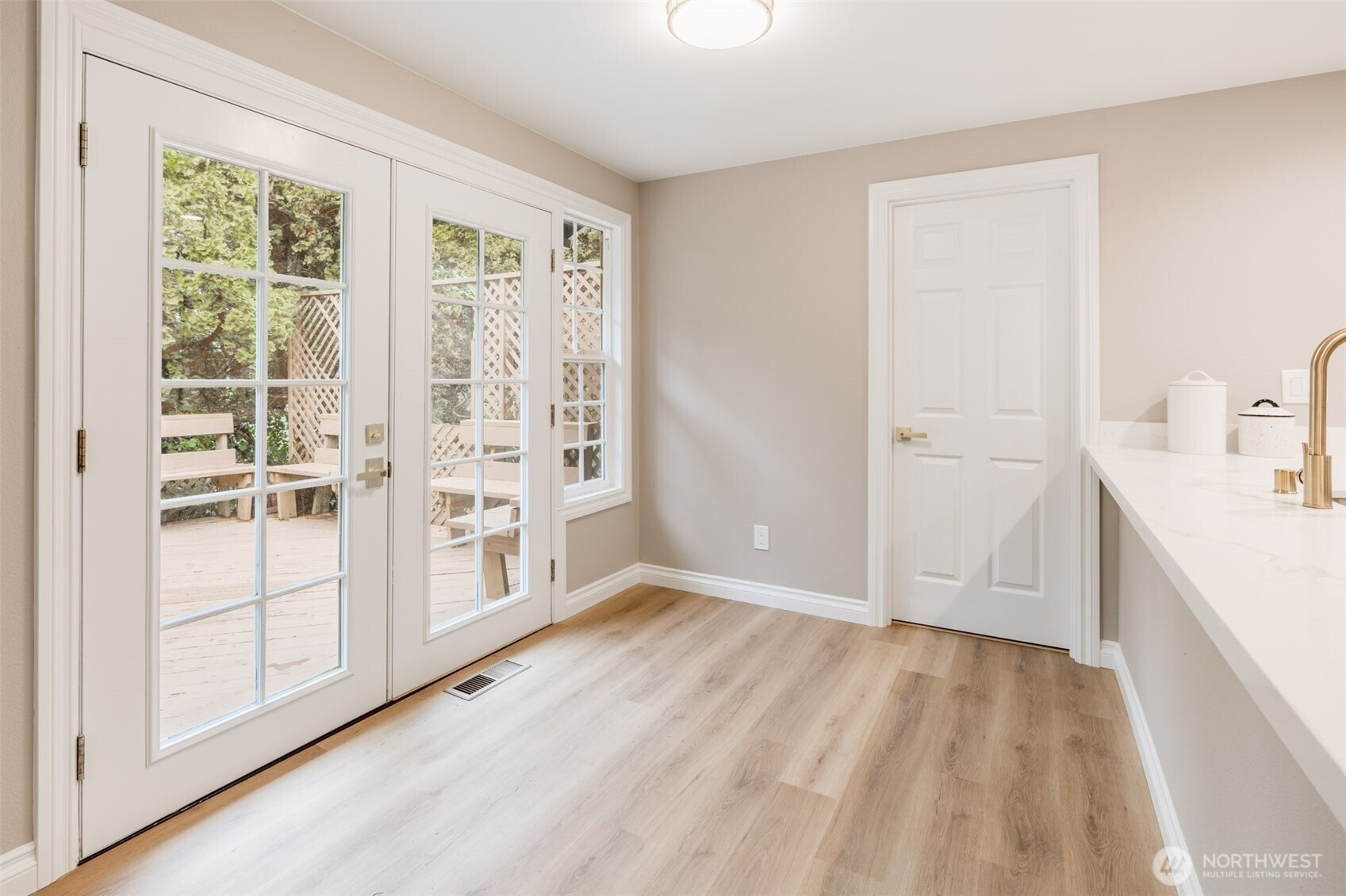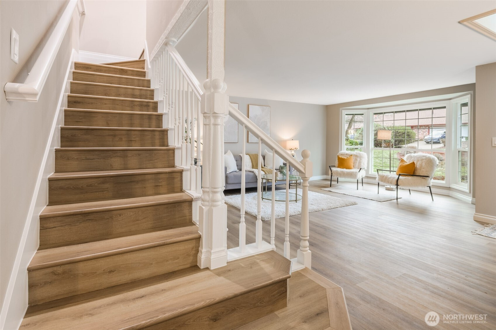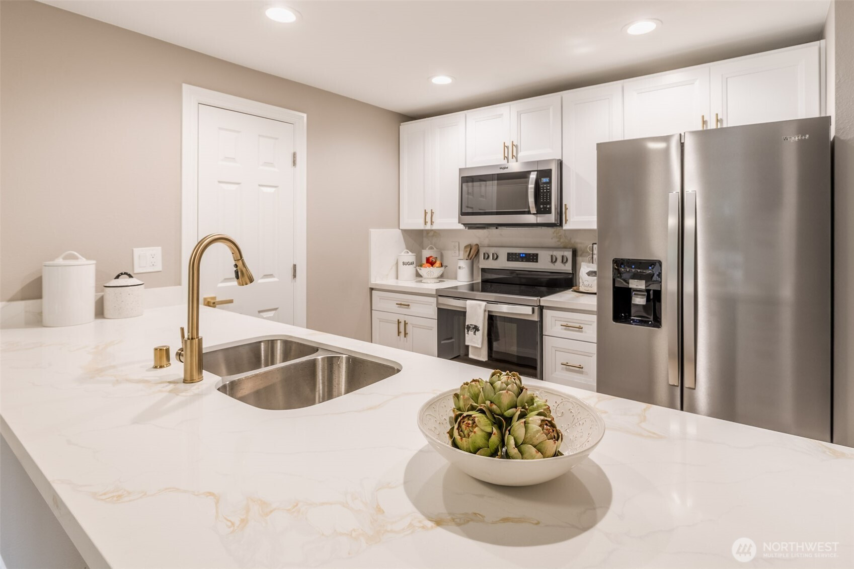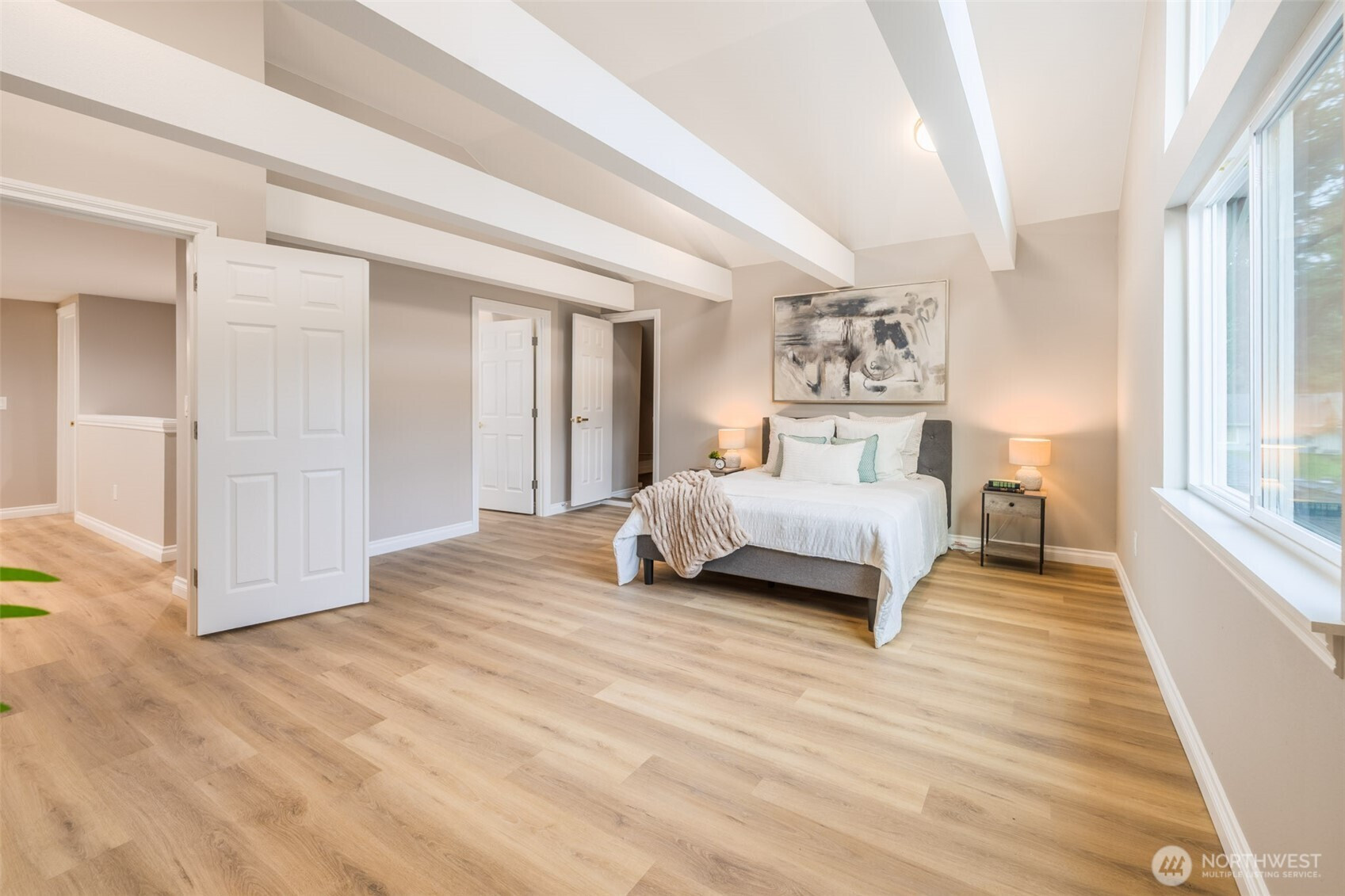 Fully remodeled down to the studs, this Twin Lakes Country Club home lives like new construction. Features 7 bedrooms, 4 bathrooms + dedicated in-home office—ideal for large or multi-generational living. Upper-level 800 sqft primary suite w/ 13 ft vaulted ceiling, walk-in closet, dual vanity w/ lighted mirrors, stand-alone soaking tub & 4x4 shower. Dedicated water heater for upper suite. Main level offers 3 bedrooms, one w/ attached bath. Brand new roof & gutters, vinyl windows, waterproof LVP throughout, exterior paint, quartz countertops, stainless appliances, new cabinetry, dual French doors to deck, landscaped yard, updated electrical panel & onsite Twin Lakes security. Minutes to golf, parks, lakes, shopping & dining.