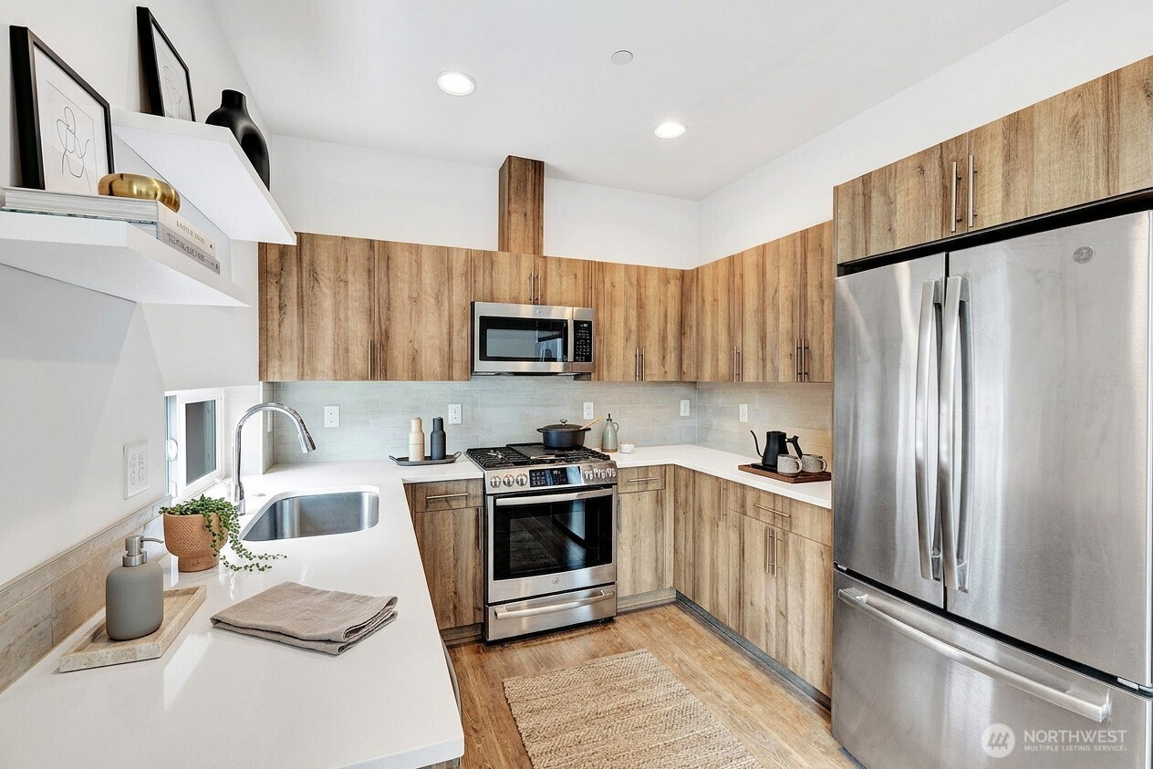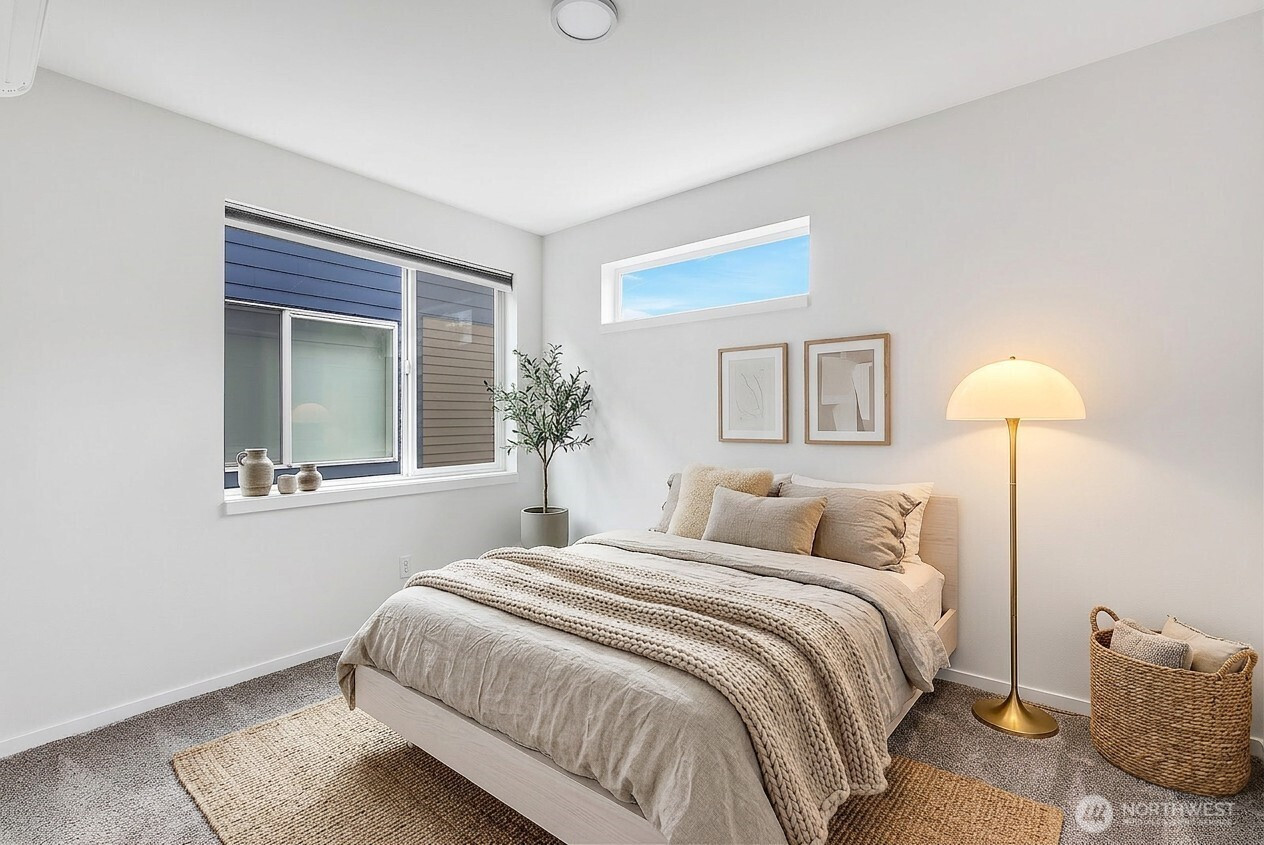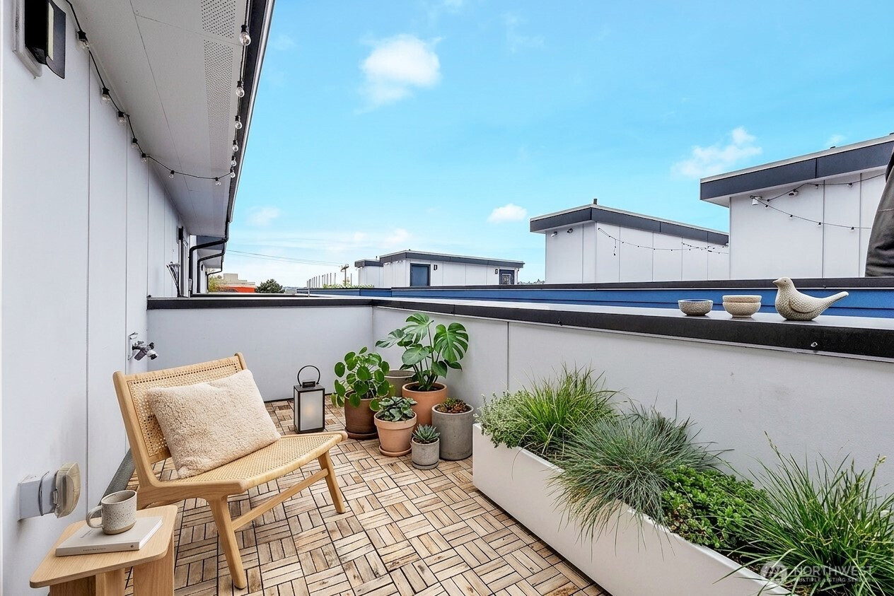 Experience refined, urban living in this light-filled 2-bedroom+LOFT, 2.25-bath corner townhome located in a gated community in Queen Anne. This home showcases an open-concept design enhanced by abundant natural light, dual primary-style bedrooms, and a flexible loft space with powder room. The private rooftop deck offers a serene outdoor retreat ideal for entertaining or enjoying beautiful PNW sunsets. Modern features include gorgeous hardwood floors, sleek kitchen cabinets with stainless steel appliances, full-size washer/dryer, tankless water heater and ductless mini-split for heating and cooling. Complete with one assigned parking spot and convenient access to the RapidRide D Line, this home seamlessly blends style, comfort, and connectivity. Walking distance to cafes, shopping and restaurants!
