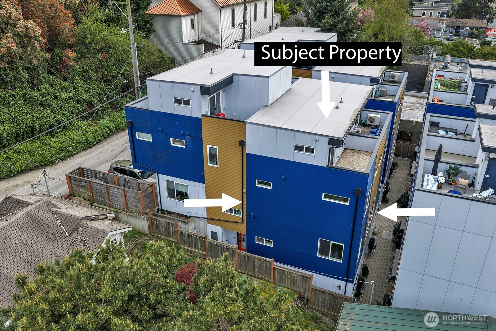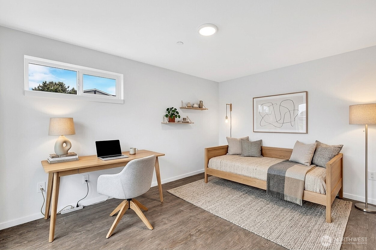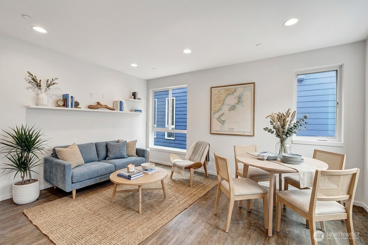 Experience refined, urban living in this light-filled 2-bedroom+LOFT, 2.25-bath corner townhome located in a gated community in Queen Anne. This home showcases an open-concept design enhanced by abundant natural light, dual primary-style bedrooms, and a flexible loft space with powder room. The private rooftop deck offers a serene outdoor retreat ideal for entertaining or enjoying beautiful PNW sunsets. Modern features include gorgeous hardwood floors, sleek kitchen cabinets with stainless steel appliances, full-size washer/dryer, tankless water heater and ductless mini-split for heating and cooling. Complete with one assigned parking spot and convenient access to the RapidRide D Line, this home seamlessly blends style, comfort, and connectivity. Walking distance to cafes, shopping and restaurants!