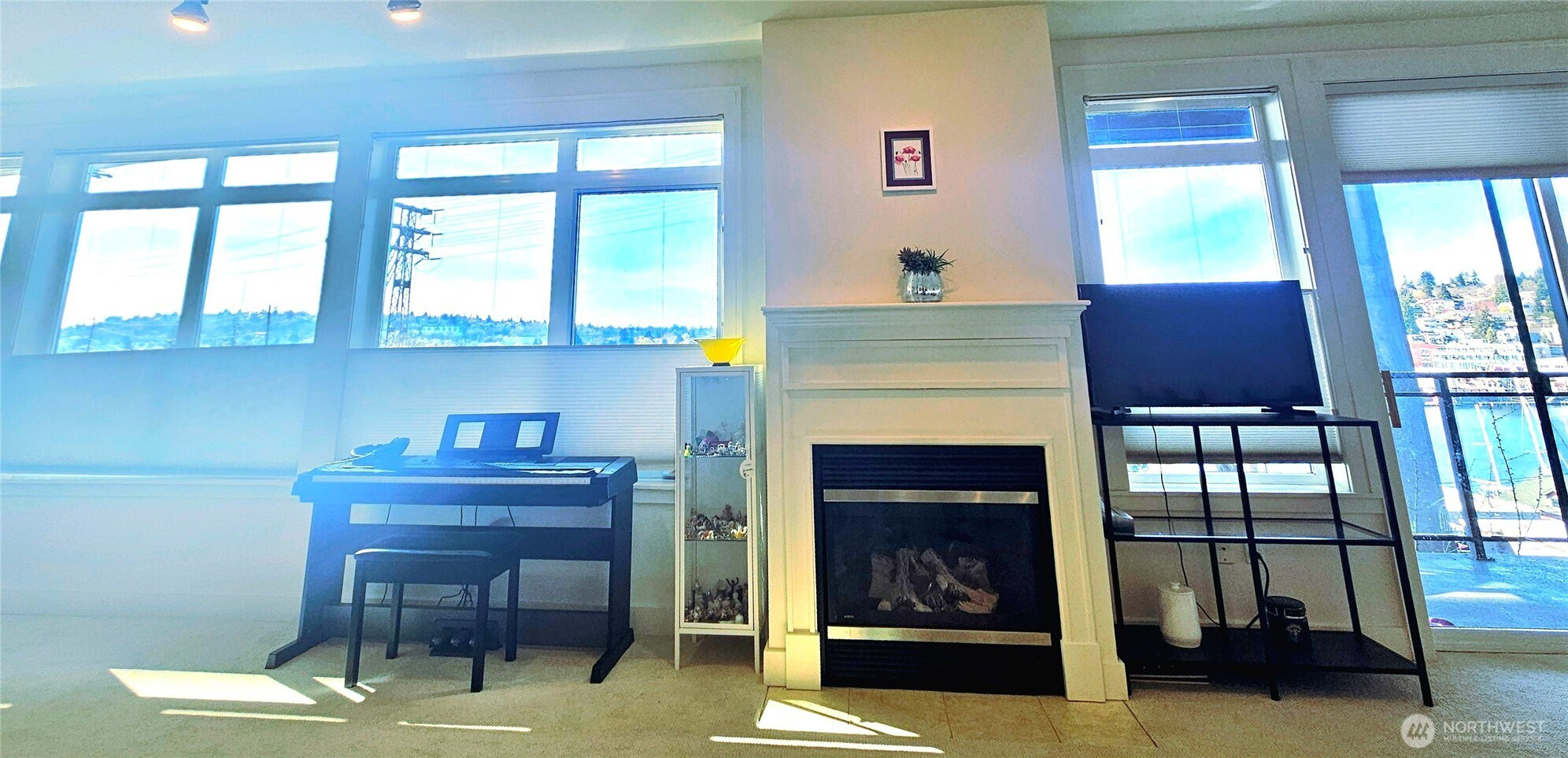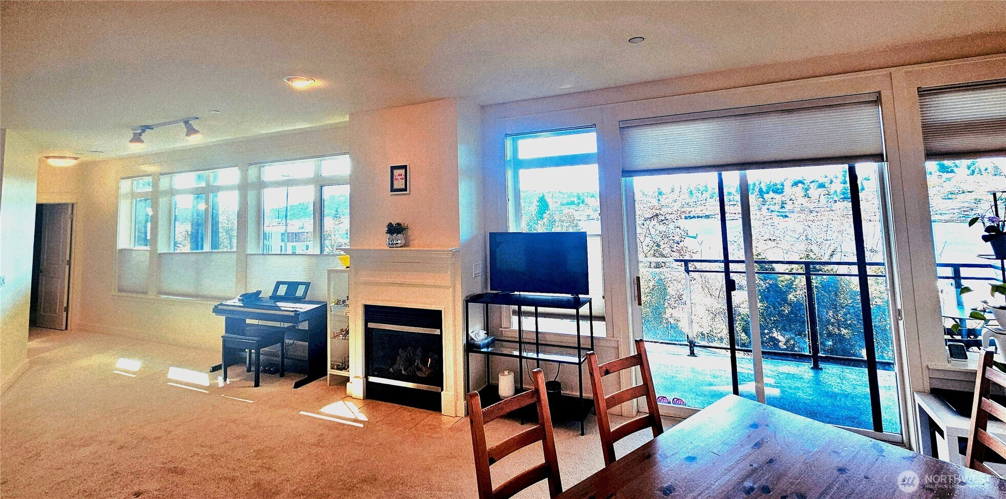 Spectacular lake view from every window! Open layout & chefs kitchen designer finishes like long granite counters, stainless appliances, and cabinet space. Relax by the fireplace overlooking lake view. Take in the view from the integrated living/dining area with balcony, office nook for a home office. Brand new LG washer, dryer and water heater for convenience. The spacious bedroom includes walk-in closet. Designated parking space, storage locker. Convenient location 1 block from lake access, live across from French bakery, coffee, flower shop, eateries, bus stop and near UW & transit.