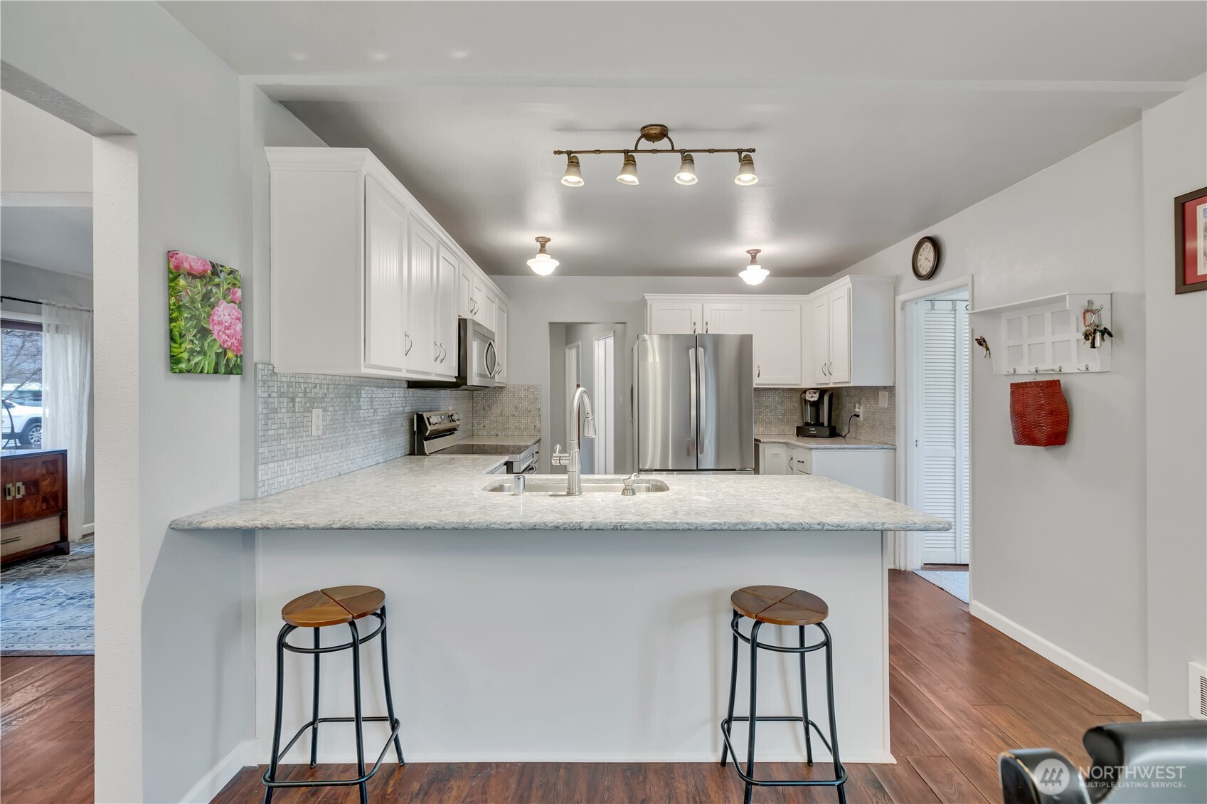Looking for a home that feels timeless, full of character, and offers spacious one-level living with thoughtful updates? This beautifully updated 1930s home sits on a rare .33-acre fully fenced lot, offering space and privacy seldom found today. Inside, classic charm blends seamlessly with modern style—rich cherry floors, marble accents, Shaker cabinetry, and a timeless kitchen with stainless steel appliances and a generous pantry. Both bathrooms have been tastefully updated. The spacious layout includes 4 bedrooms plus a versatile loft, currently used for storage but ideal for flexible living. Additional updates include energy-efficient vinyl windows and a composition roof, and all appliances stay. Step outside to a fully landscaped backyard with full sun exposure—perfect for entertaining, gardening, play, or pets. The detached 2-car garage features a newer door and abundant storage. Character, modern updates, and room to breathe—this home truly offers the best of both worlds.
