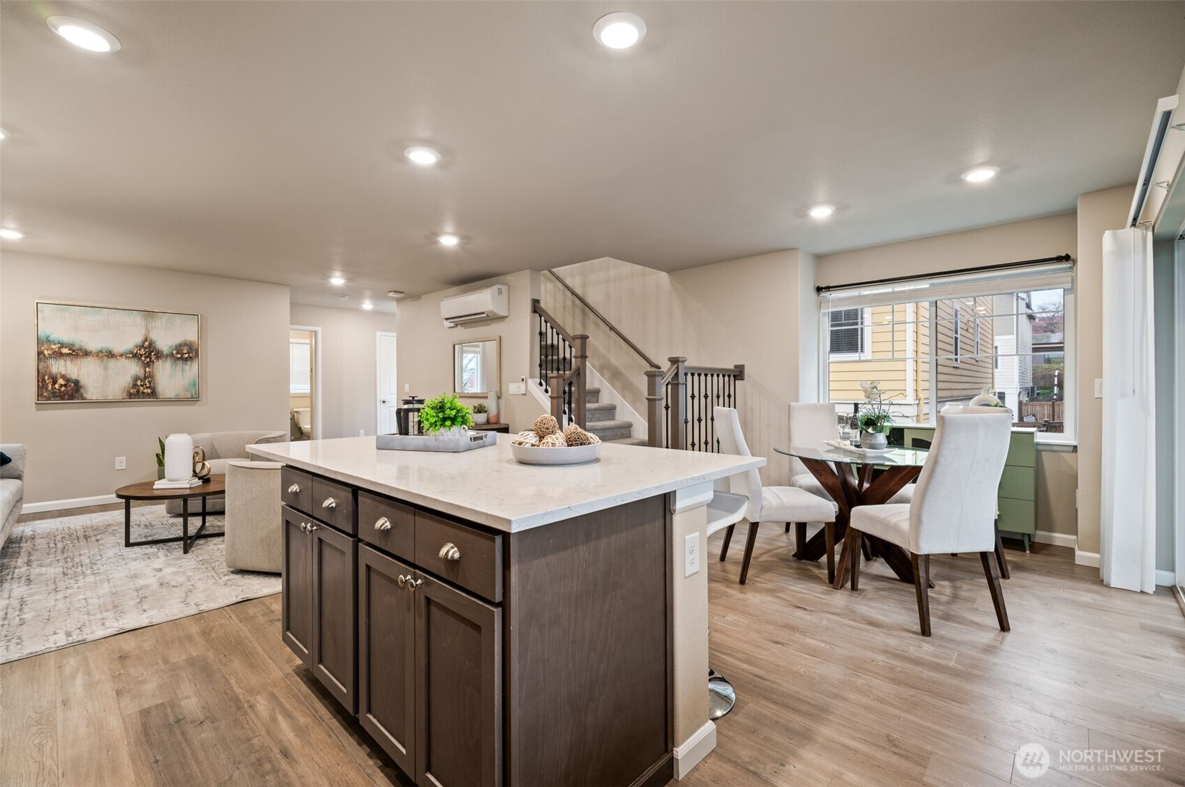 Quiet and private feel at this newer Built Green Lennar resale at the sought after High Point community of West Seattle! Sunny west exposure, adjacent to a community park and located on a dead end street, this fully detached home offers a spacious and functional layout with high end quality features throughout. Covered front porch and spacious entry welcomes you up the wrought iron staircase to the main level open great room with wood laminate flooring, island kitchen with slab quartz countertops and stainless steel appliances, dining area and covered deck for BBQ and amazing sunsets. One bedroom and full bath on the main floor. Upstairs primary suite with walk in closet and spa-like bath with tile floors, quartz vanity and tile shower surround. Additional bedroom, laundry room and an open loft/bonus room upstairs. Lower level features additional Den/Office/Flex space. Ring doorbell. Rocker light switches. Main floor lights Alexa Compatible. Wi-fi certified for smart home connectivity. Extra large 1 car attached garage + 1 car covered driveway parking. Efficient ductless heat pump w/ AC. Unmatched location, mins to DT Seattle or Alki Beach, Walking distance to schools & stunning city skyline views, Community Center, bus line, cafes & parks. Easy care fenced yard in a clean, quiet, and connected neighborhood. Strong HOA with low monthly dues + great neighborhood events and gatherings. Pre-inspected and move in ready!