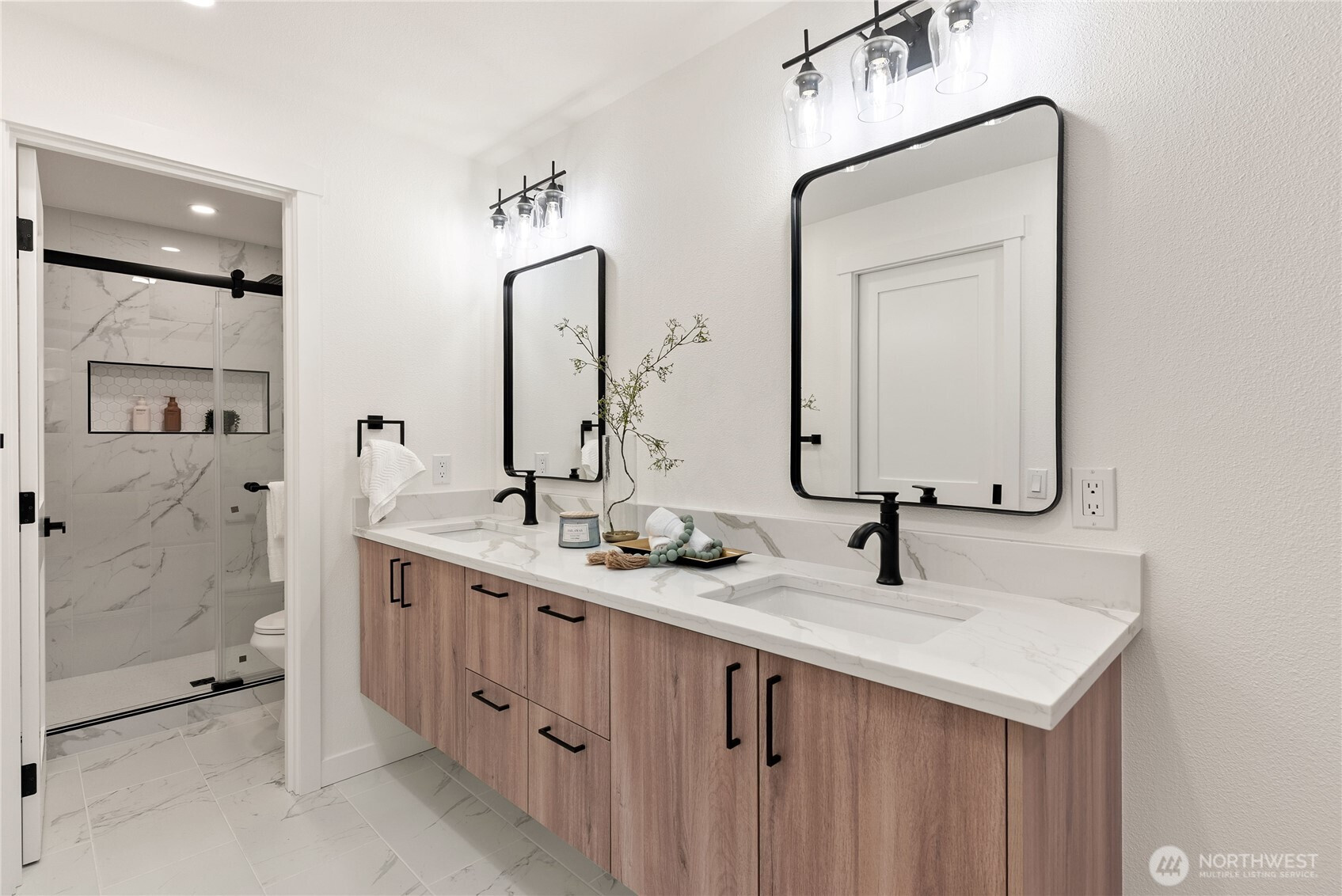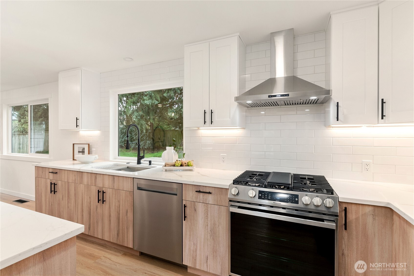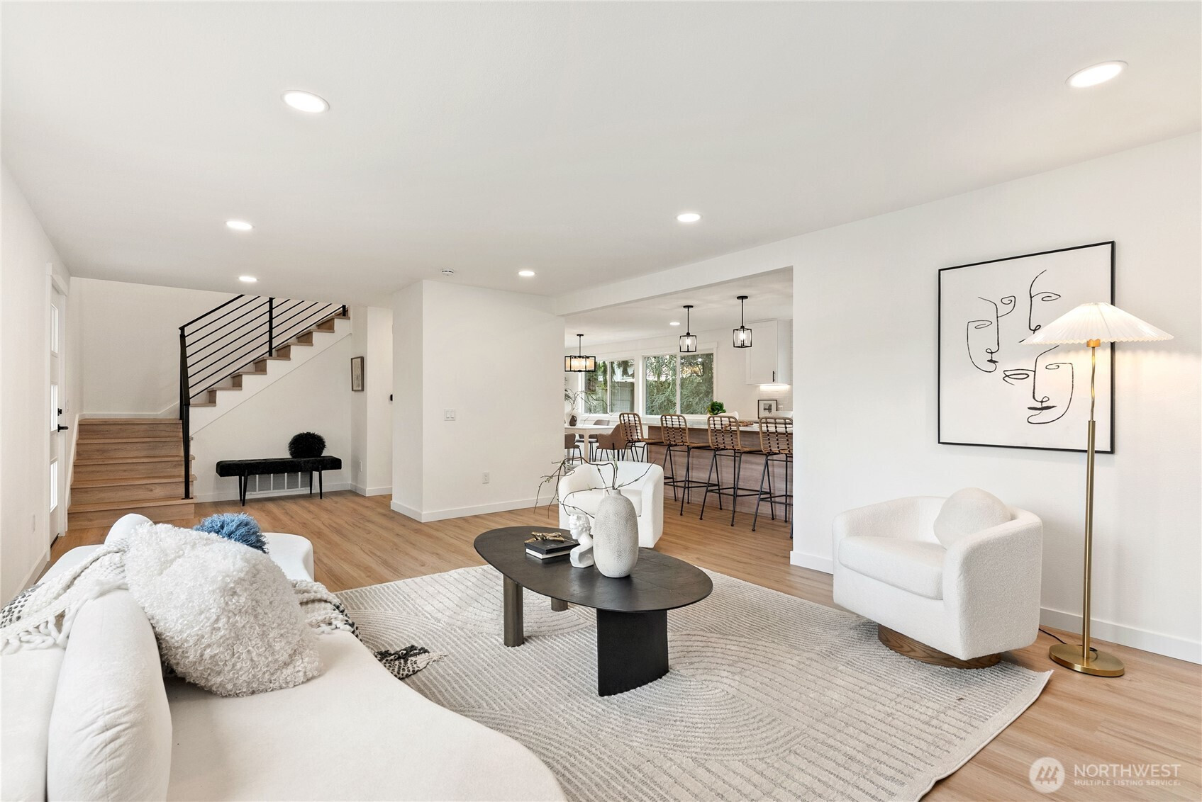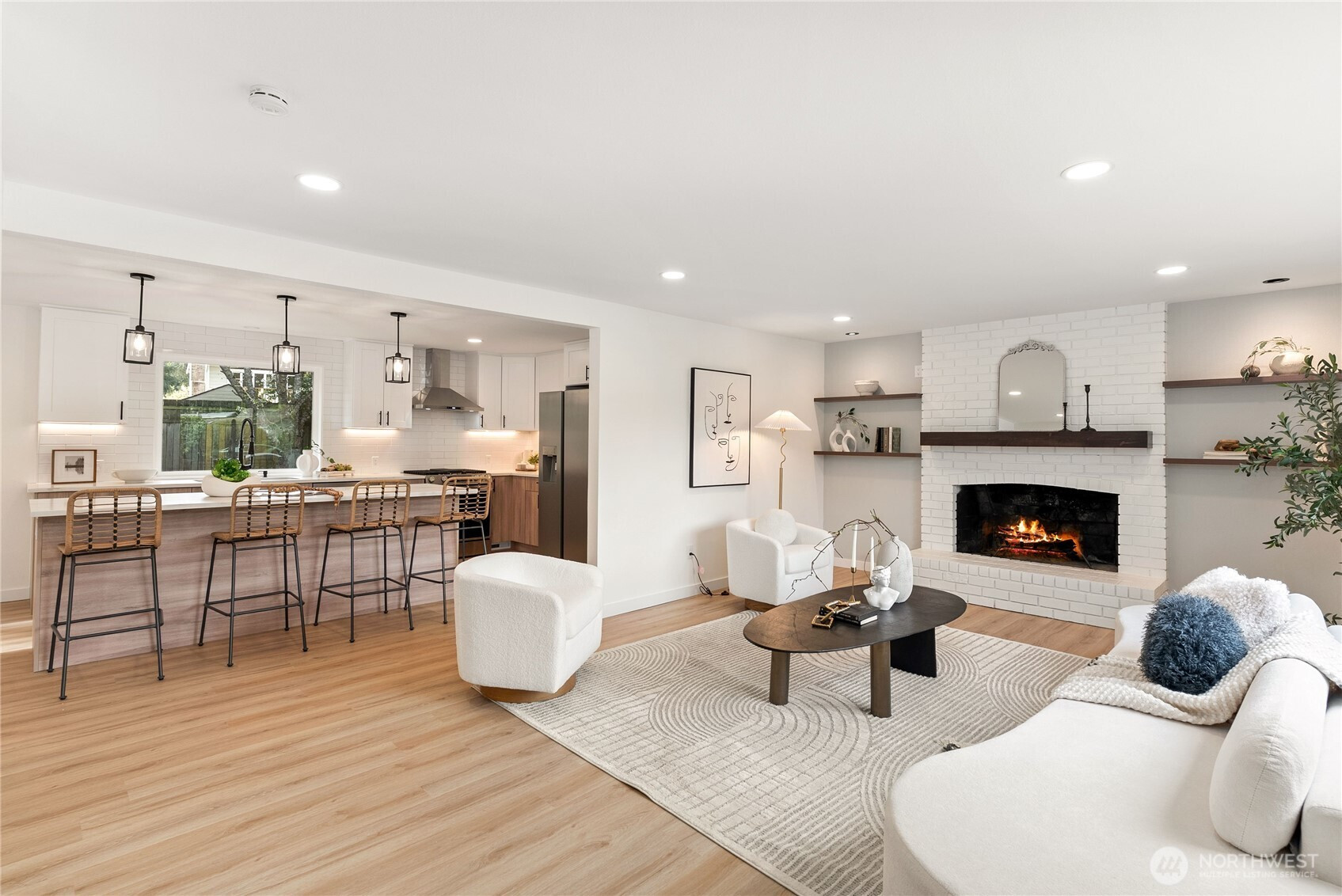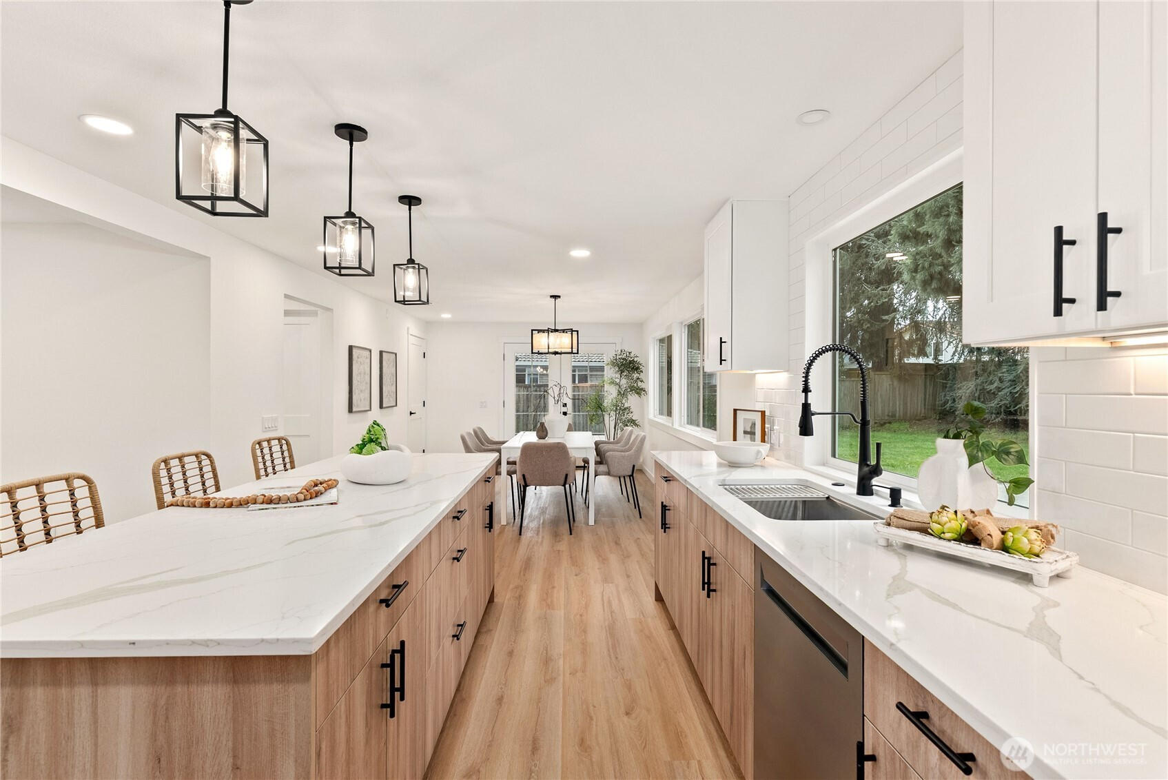Stunning fully remodeled 2-story home in the sought-after Twin Lakes community of Federal Way, ideally located just across from a peaceful pond and minutes from Twin Lakes Golf & Country Club, great rated schools, shopping, and everyday conveniences. Exceptional curb appeal sets the tone with a covered front porch and striking custom blue entry door. Step inside to a bright living room featuring a real wood-burning fireplace, custom floating shelves, and serene pond views. The designer kitchen offers two-tone cabinetry, quartz countertops, stainless steel appliances, under-cabinet lighting, and a walk-in pantry, perfectly blending style and function. The oversized dining area flows to an upgraded Trex deck for seamless indoor-outdoor living. Upstairs includes three bedrooms and a fully updated bath, plus a spacious primary suite with custom accent wall, modern lighting, walk-in closet, double vanity, heated floors, and spa-inspired finishes. Additional highlights include a new roof, new water heater, and a garage with a private sauna. Fully fenced yard offers privacy and space to enjoy. Move-in ready and beautifully updated throughout, this home is a rare find in a prime location. Perfectly positioned in a highly desirable neighborhood, this home offers a rare blend of comfort, style, and convenience. Enjoy peaceful mornings overlooking the pond and relaxing evenings in your private outdoor space. Must-see property stands out.