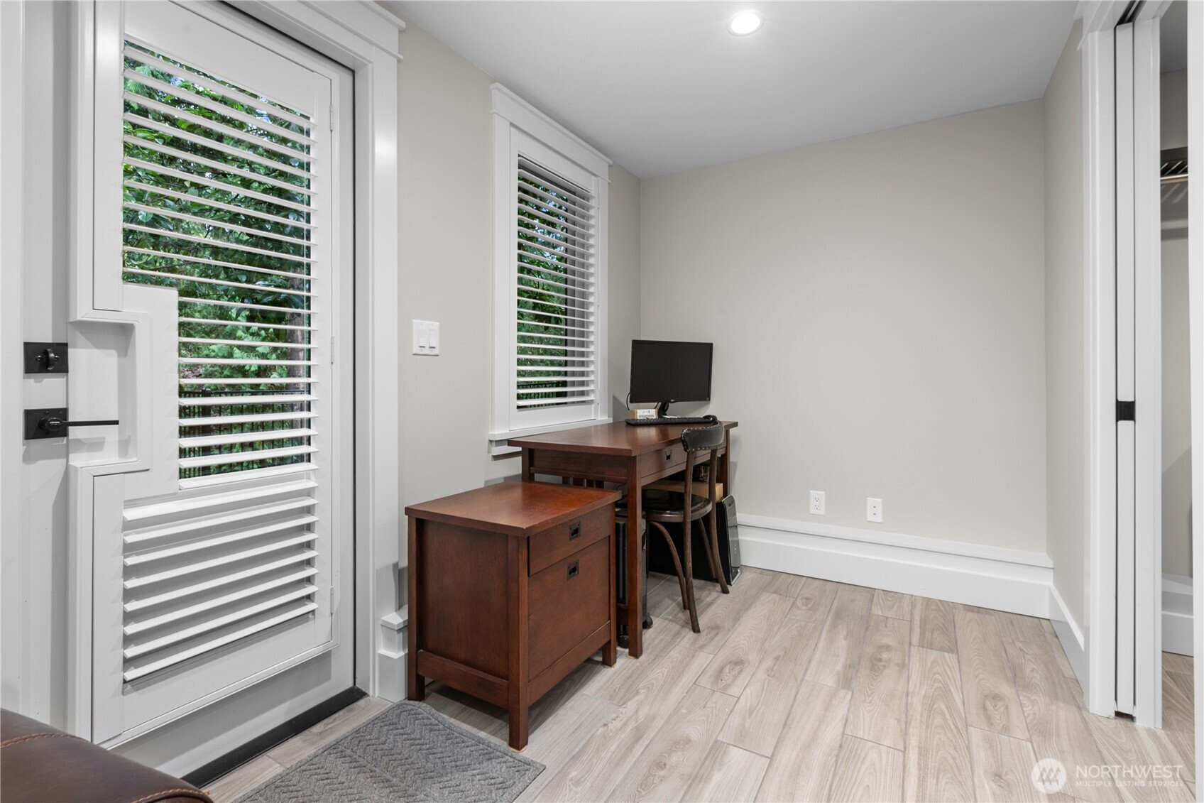 Fully remodeled West Bellevue 4-bedroom, 3-bath home spanning 2,960 sq ft, where modern sophistication meets timeless craftsmanship. Interiors are filled with natural light from skylights and expansive windows, showcasing wide-plank white oak hardwoods, crown molding, and solid wood interior doors throughout. The open-concept main level is anchored by a showpiece chef’s kitchen with professional-grade appliances, soapstone countertops, dual dishwashers, and a marble wet bar—ideal for effortless entertaining. Living spaces are warmed by an Astria gas fireplace and flow seamlessly for everyday living and hosting. The main-floor primary suite offers a spa-like retreat with heated tile floors, a Carrara marble shower, and Graber wood shutters. A second bedroom completes the main level. Downstairs, find two additional bedrooms, a media lounge with bar, and a flexible gym or wellness space. Comfort and reliability are assured with a Bryant Evolution heat pump for efficient heating and A/C, a Rheem water heater with recirculation pump, and a Honeywell standby generator. Additional highlights include a Tesla charger and integrated smart home systems controlling lighting, climate, appliances, and surround sound. Outdoors, a fully fenced backyard retreat backs to a tranquil creek and lush natural surroundings. Ideally located minutes from downtown Bellevue, Kirkland, Redmond, and award-winning schools.