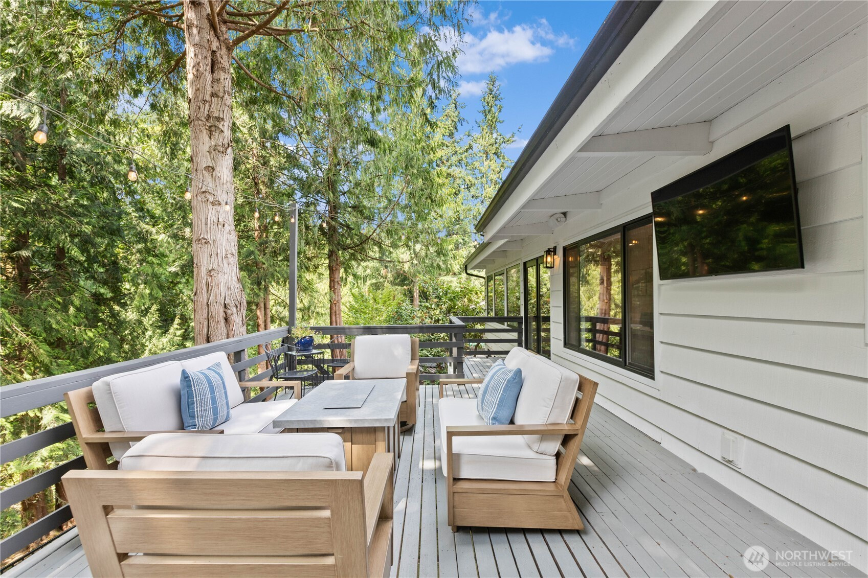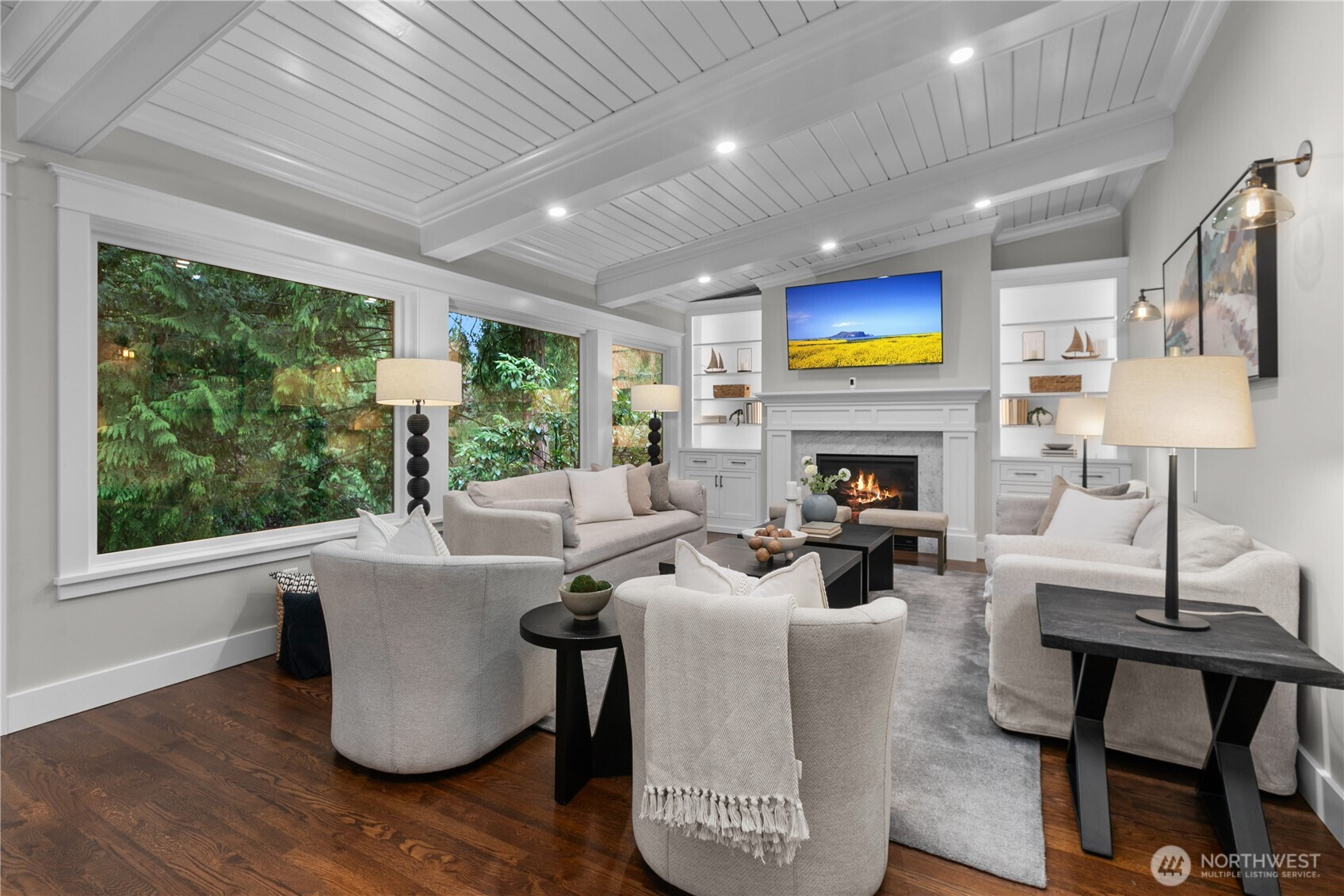 Fully reimagined in West Bellevue, this $800,000 studs out remodel was rebuilt to today’s standards, delivering the performance, efficiency, & livability of a brand new home. Interiors are filled with natural light from expansive windows, highlighting white oak hardwoods, crown molding, & solid wood doors throughout. The open main level is anchored by chef’s kitchen with Monogram appliances, soapstone countertops, dual dishwashers, & a statement marble wet bar, designed for both everyday living & effortless entertaining. Living & dining spaces flow seamlessly to a large deck overlooking a lush, private backdrop, creating a true indoor-outdoor experience. The primary suite offers a spa inspired retreat with heated tile floors & Carrara marble shower, with an additional bedroom & full bath. The lower offers a spacious rec room, beverage bar, built ins, & direct access to a covered patio. 2 bedrooms, a bonus room with 3/4 bath, & flexible utility space provide room to live, work, and unwind. Set along a tranquil creek & surrounded by mature greenery, the fully fenced backyard feels private & serene. Upgrades include Bryant Evolution heat pump with A/C, Rheem water heater with recirculation pump, Honeywell standby generator, Tesla charger, alarm system, & integrated smart home systems. Ideally located just minutes from DT Bellevue, Kirkland, Redmond, & top rated schools, this home offers a balance of design, comfort, & location.