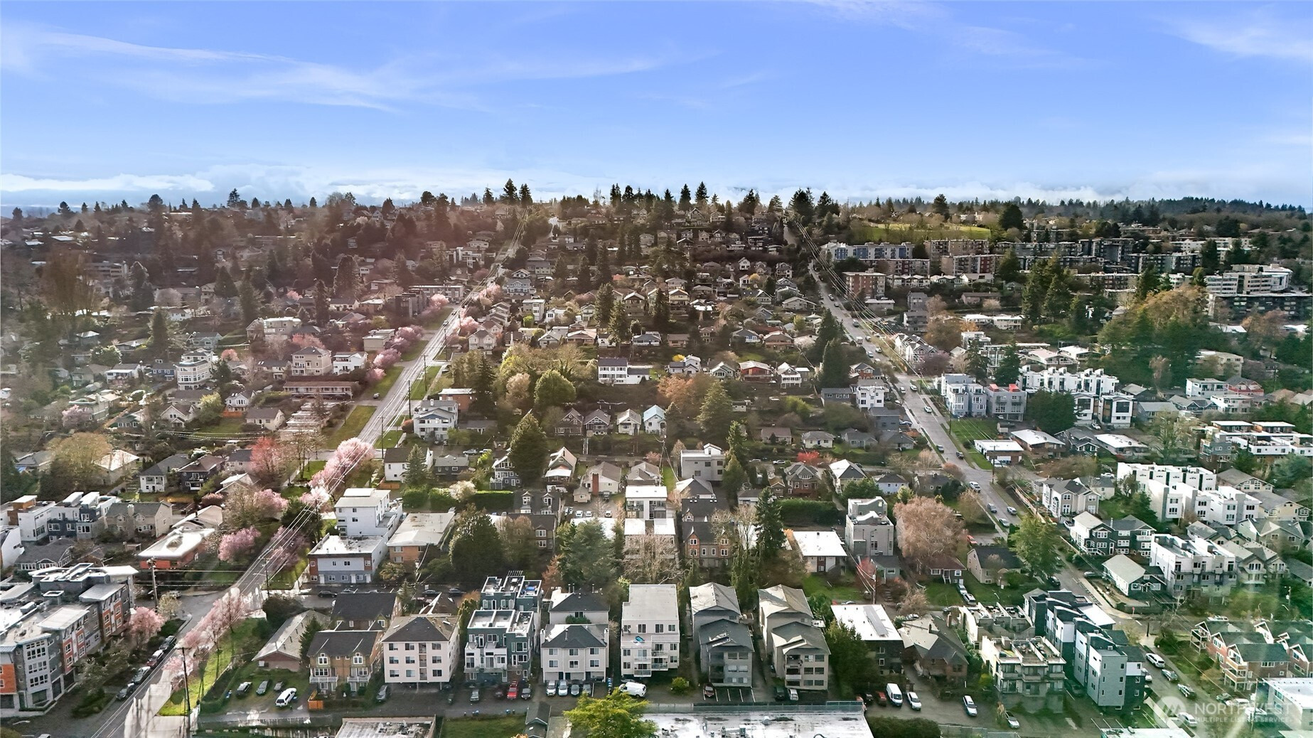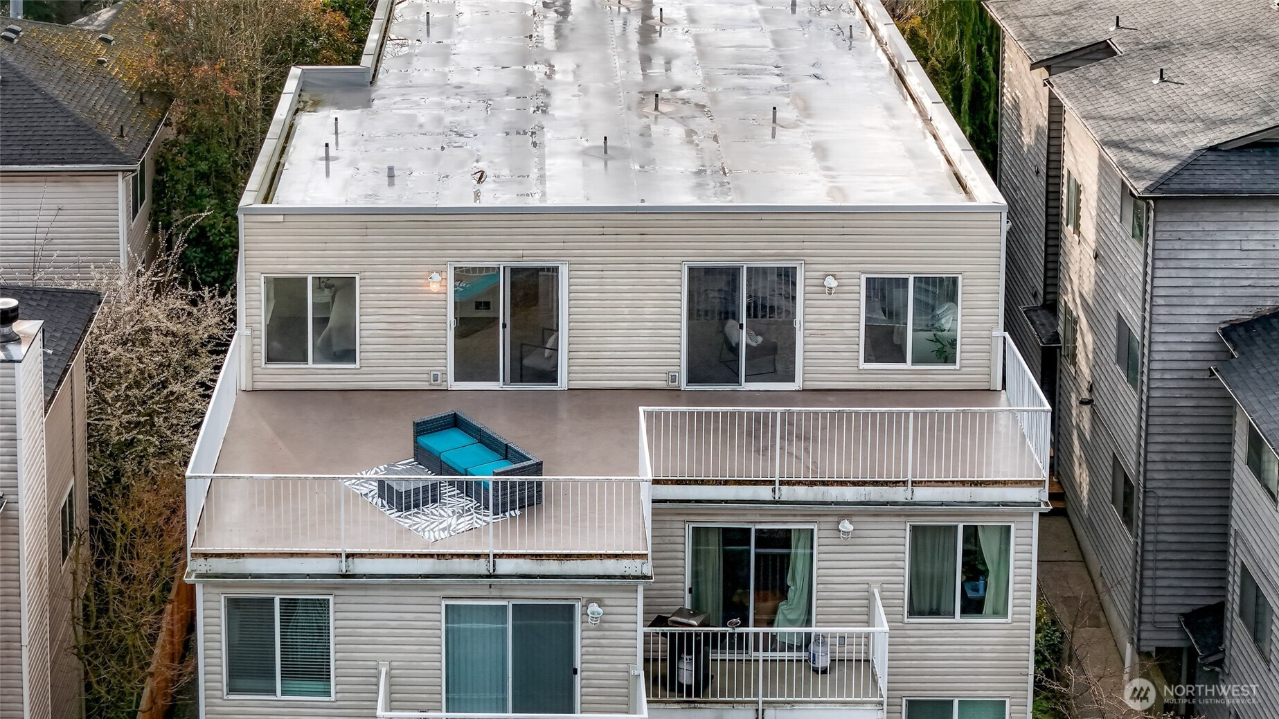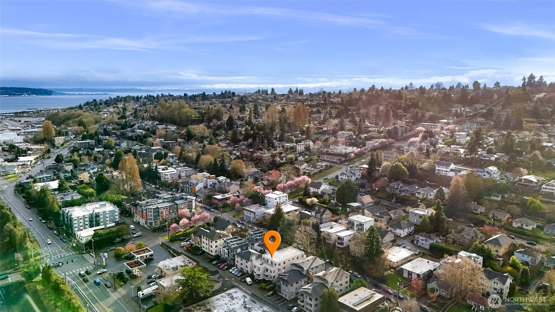 This end-unit Magnolia penthouse offers 2 bedrooms and 2 bathrooms, highlighted by a spacious, oversized private exterior deck that serves as an additional living area in warmer months—perfect for entertaining, container gardening, and enjoying the outdoors with no neighboring units in sight. Enjoy sweeping 180-degree views from Salmon Bay to the Seattle skyline. The interior has been freshly repainted and recarpeted, creating a bright, move-in-ready feel. An open-concept kitchen and living area flows seamlessly to the expansive deck—ideal for hosting guests or everyday living. The guest bedroom and full bath are thoughtfully positioned, while the primary suite features an ensuite bath, walk-in closet, direct deck access, and stunning views to wake up to each morning. Pets are welcome, and there is no rental cap. One parking space is included in the garage, along with a generous approx. 6' x 4.5' storage unit. Mortgage savings may be available for buyers of this listing.