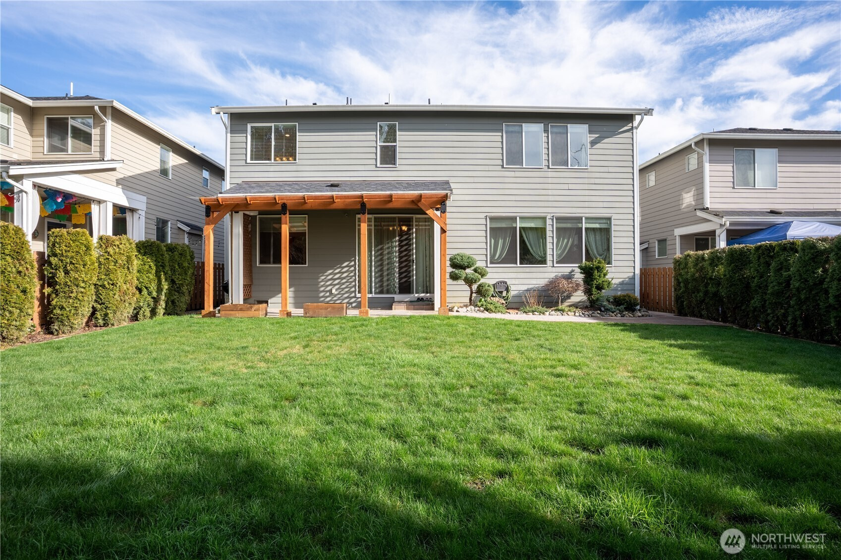 Impeccably maintained and beautifully updated, this inviting home is tucked away in the highly desirable Canyon Creek community of Auburn. Offering 2,796 sq ft, 4 bedrooms, 2.5 baths, and a 2-car garage, the layout is both functional and welcoming—perfect for everyday living and entertaining. The main level features rich hardwood floors, an open-concept living space, and a chef-inspired kitchen complete with quartz countertops, stainless steel appliances, a new refrigerator, a walk-in pantry, and an oversized island with seating. The great room flows seamlessly into the dining area and out to the covered patio. The backyard is truly a standout—fully fenced, thoughtfully landscaped, and incredibly serene. Sprinkler system equipped entire yard. Whether you’re hosting gatherings, enjoying quiet mornings, or letting pets play freely, this outdoor space offers both beauty and privacy. Upstairs, you’ll find a spacious bonus/flex area, a convenient laundry room, and a stunning primary suite featuring a spa-like 5-piece bath, double vanity, and an expansive walk-in closet. Ideally located just minutes from I-5, SR-167, SR-18, transit options including the Sounder Station, and Light Rail. Close to shopping, dining, and entertainment—this home truly has it all. Pre-inspected.