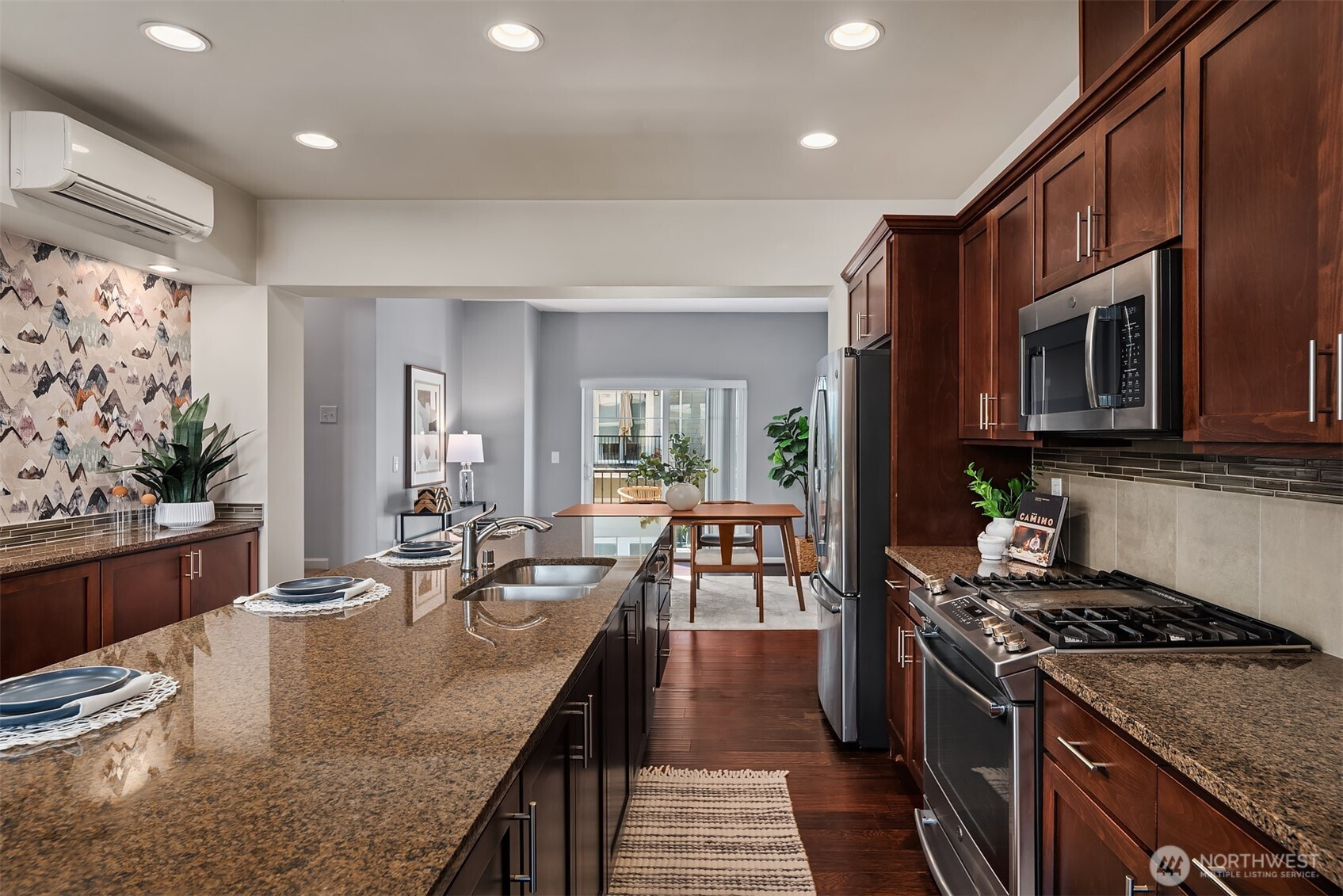 Step into style, comfort, and community in this beautifully designed 2-bedroom + den townhome in High Point at Graham. Surrounded by peaceful, tree-lined streets, this home offers the perfect blend of modern living and everyday convenience in a welcoming neighborhood. The bright, open main level features engineered hardwood floors and a seamless layout ideal for both entertaining and daily living. The kitchen truly shines with quartz countertops, a tile backsplash, gas cooking, stainless steel appliances, and rare extra counter space and storage—perfect for anyone who loves to cook, host, or simply enjoy a well-designed space. Enjoy your private deck for morning coffee, weekend lounging, or evening unwinding. Upstairs, the versatile den creates the perfect home office, media space, or creative retreat to fit your lifestyle. Both bedrooms are spacious, light-filled, and designed for comfort and privacy. Stay comfortable year-round with energy-efficient ductless mini-splits, and take advantage of the oversized garage complete with EV charger and generous space for storage, hobbies, or outdoor gear. Located near parks, green spaces, restaurants, and coffee shops, this home offers charm, convenience, and a vibrant lifestyle all in one. Don’t miss this opportunity to own in one of the area’s most desirable communities—welcome home.