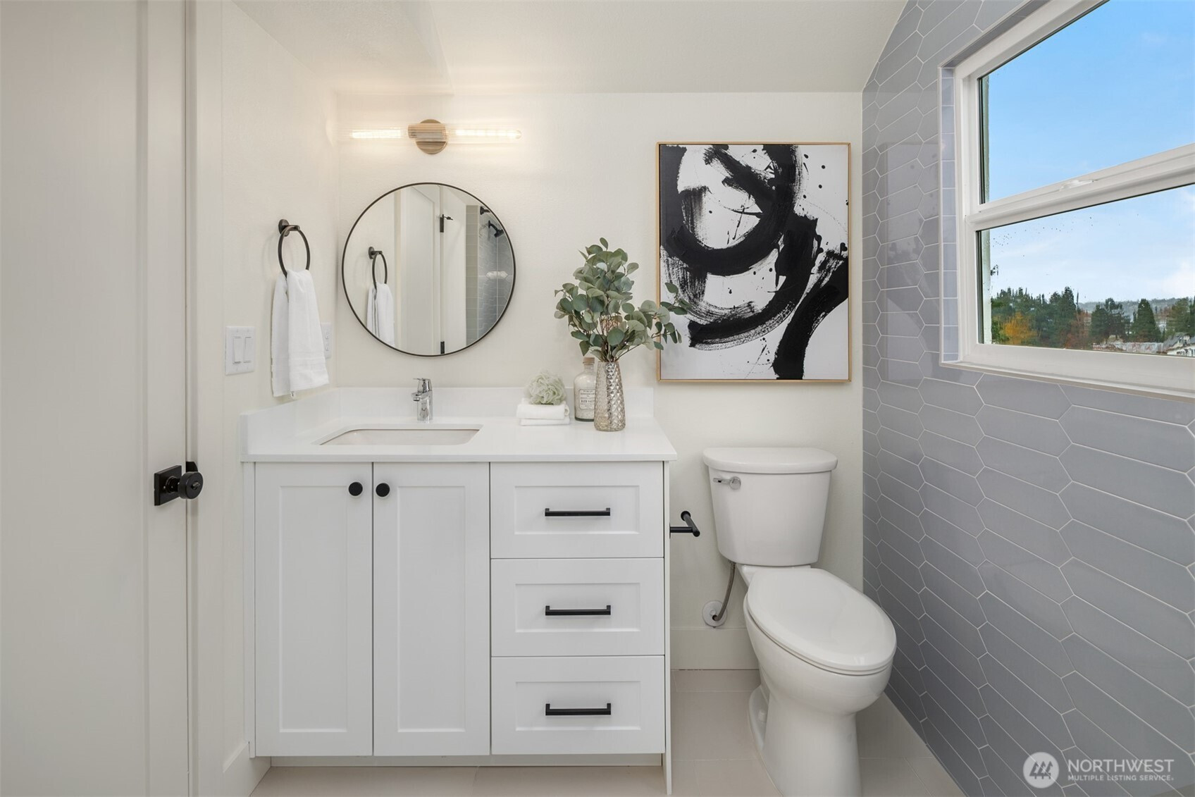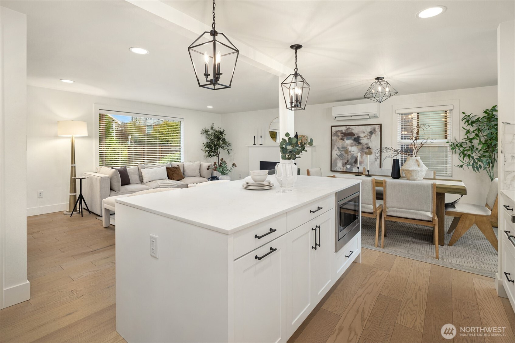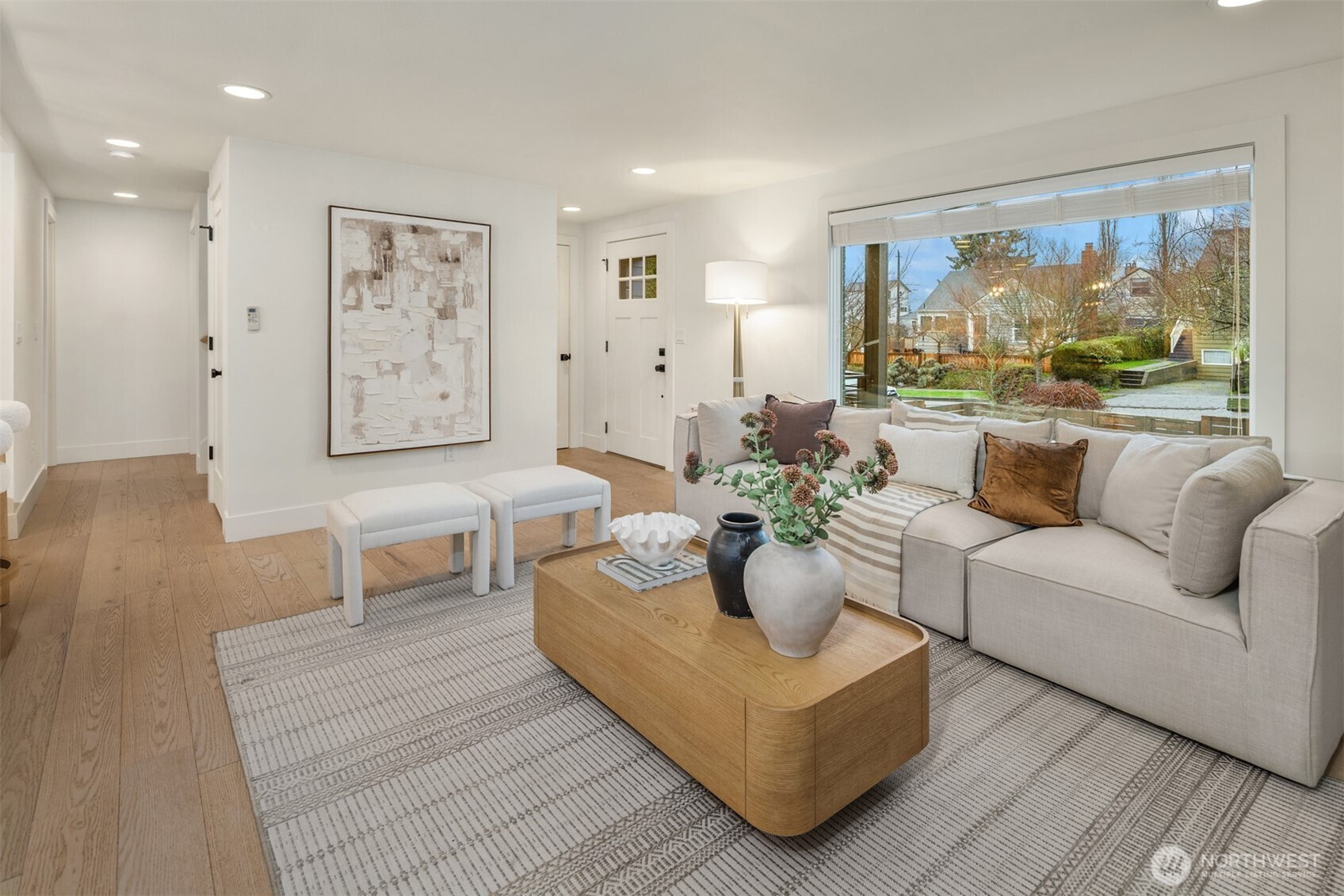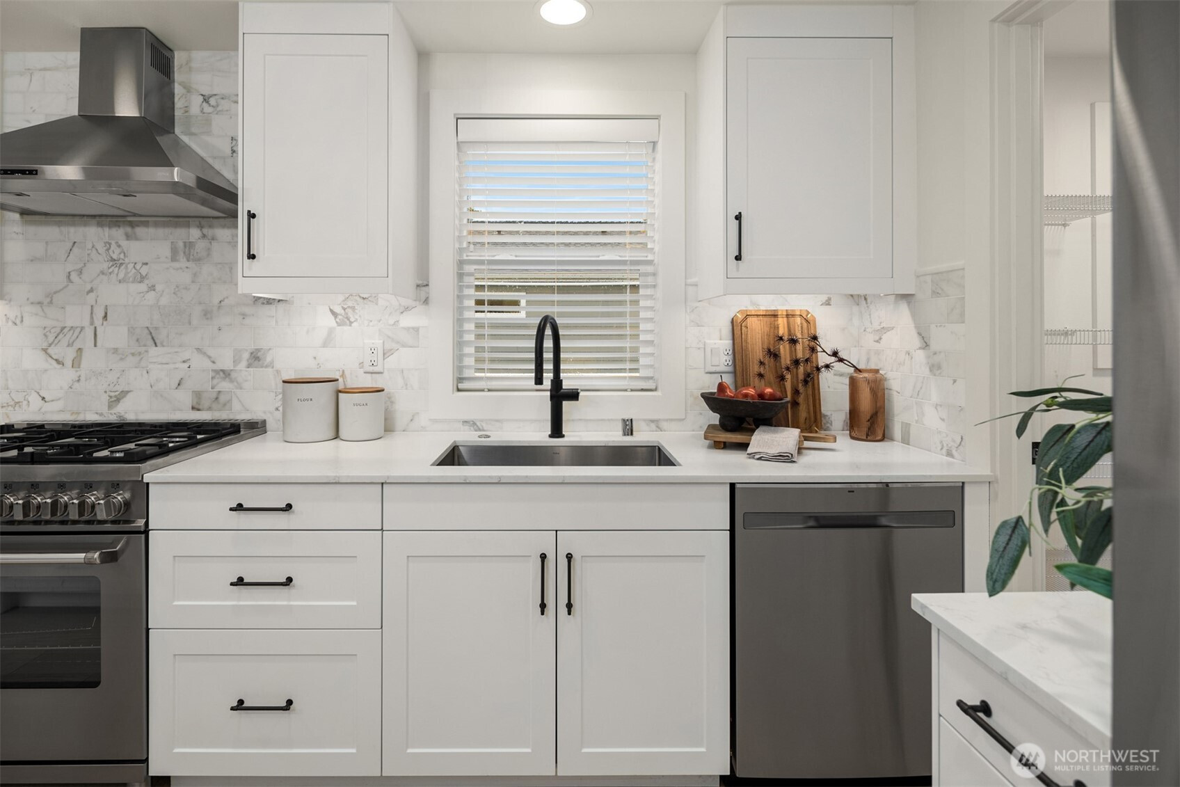 Amazing opportunity to live in one of Ballard’s most sought-after neighborhoods. This beautifully remodeled 1940s home blends modern design with timeless old-world charm. The open-concept kitchen and living area flow seamlessly to the back deck, creating an ideal setting for entertaining and indoor-outdoor living. The main level features a spacious primary suite, while the upper level offers two additional bedrooms. The lower level includes a private suite with an additional bedroom, bathroom, and kitchen—perfect for rental income, a home office, or guest accommodations. Enjoy peekaboo views of the Ship Canal Bridge and stunning sunset vistas. This studs-down remodel was executed by esteemed local design-build experts at Gerry Homes.