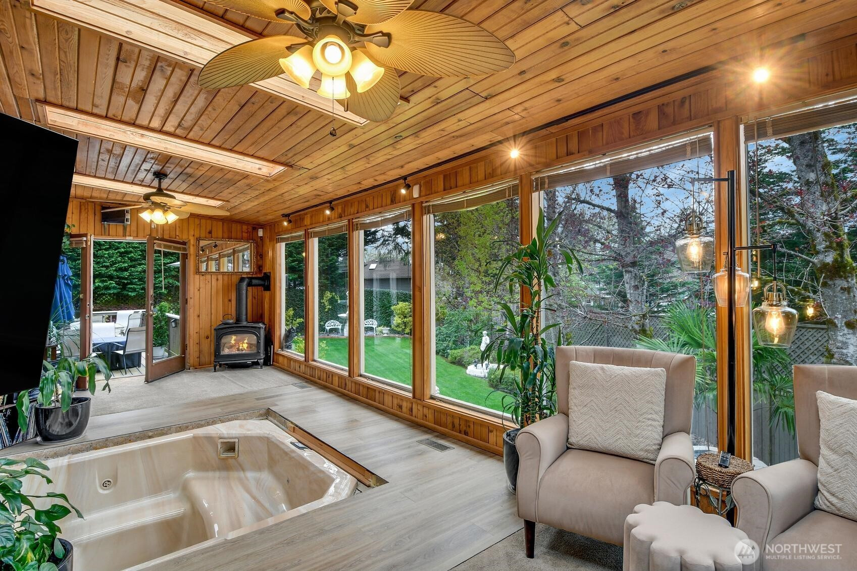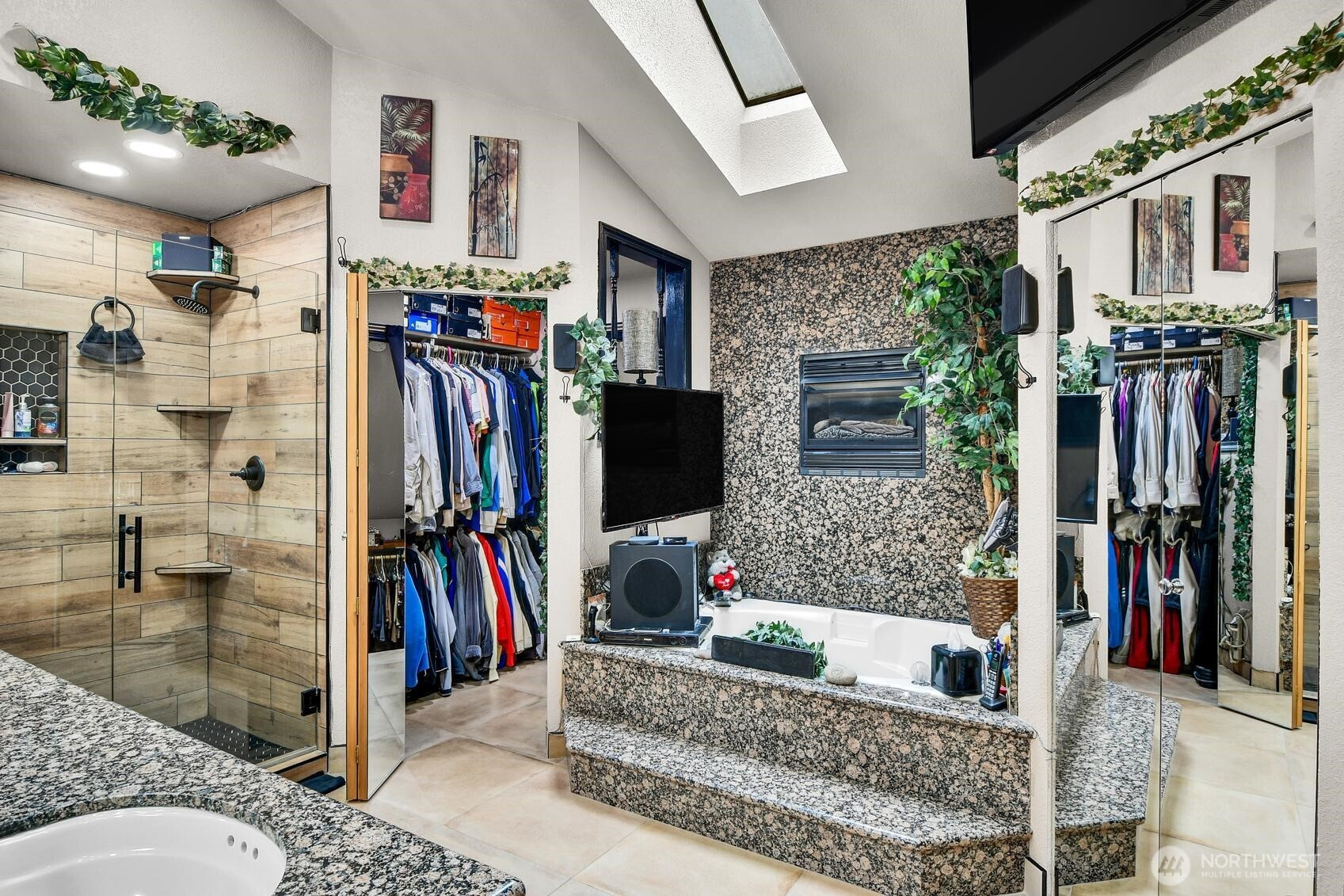 Tucked away at the end of a quiet cul-de-sac, this one-of-a-kind custom residence offers over 4,000 sq ft of thoughtfully designed living space and luxury amenities. From the moment you enter, soaring vaulted ceilings, rich hardwood floors, and expansive living areas create an elegant yet inviting atmosphere ideal for both everyday living and entertaining. At the heart of the home is a beautifully appointed kitchen with stone countertops and an inviting dining space that flows seamlessly into the main living area. Just beyond, the home reveals its most unforgettable feature — a stunning indoor spa sunroom complete with a built-in hot tub and floor-to-ceiling windows overlooking the private, tree-lined backyard. The lower level is designed for entertainment , featuring a game room and lounge perfect for gatherings or movie nights. A main-floor guest bedroom and bath provide space for visitors or home office. The primary suite offers a cozy sitting area, fireplace, spa-inspired bathroom with heated floors, and an impressive custom walk-in closet designed for exceptional storage. Additional highlights include multiple gas fireplaces, central air conditioning, smart home features, and beautifully landscaped grounds with sprinkler and drip systems. Surrounded by mature trees and located near parks, shopping, and major commuter routes, this exceptional home delivers space, privacy, and custom luxury living in one of Federal Way’s most peaceful settings.
