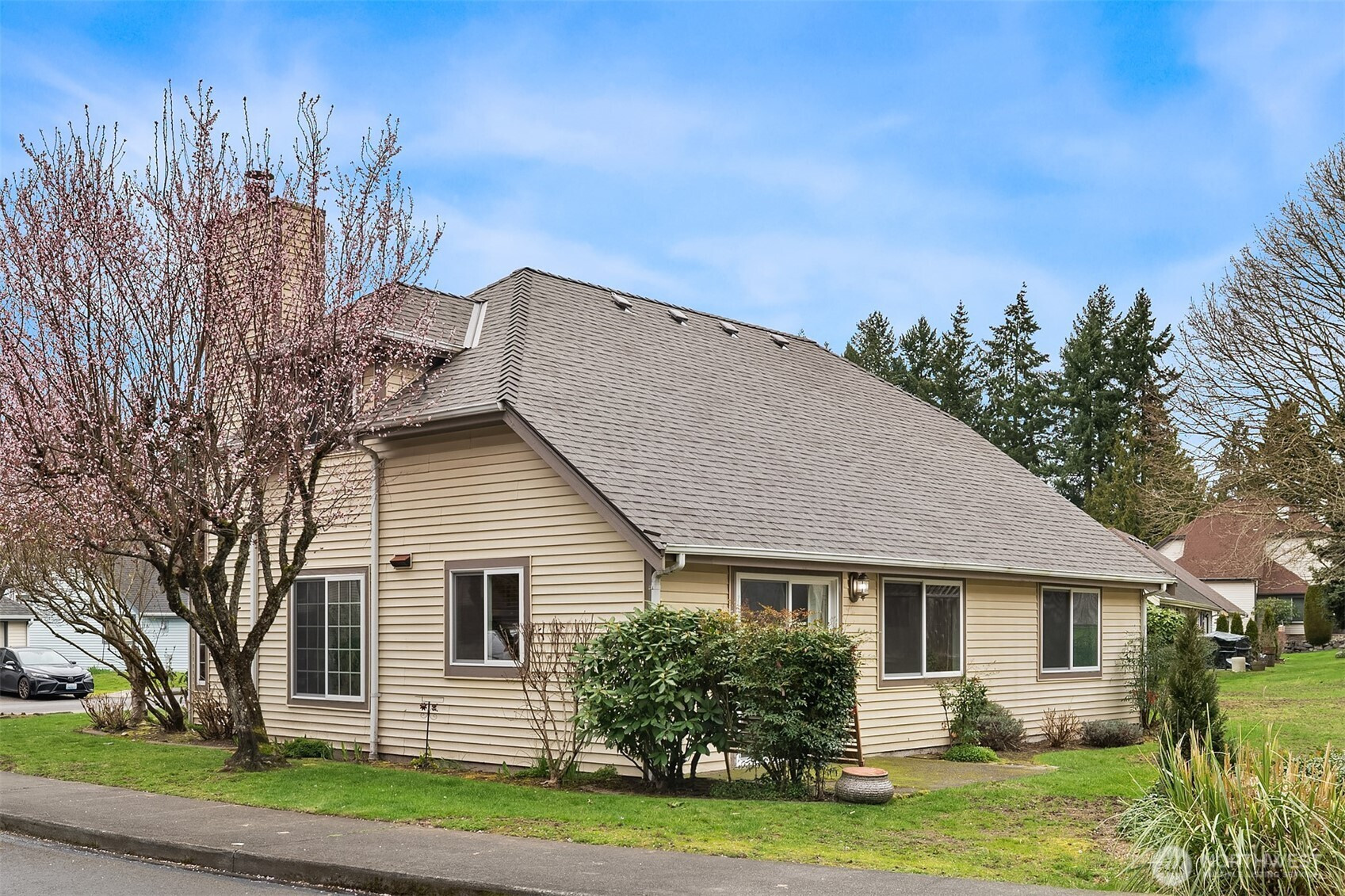 Experience effortless living in the desirable Heritage Court. Perfectly positioned on a sprawling corner lot with exceptional curb appeal, this home features an attached garage and a brand-new roof for added peace of mind. Inside, the inviting two-bedroom layout offers a generous primary suite complete with a private ensuite bath. The Main Floor second bedroom provides outstanding flexibility—ideal for guests or a spacious home office. Living room fireplace with large front-facing windows and vaulted ceilings bathe the home in natural light. Enjoy Mini-split heating and A/C systems on both levels to ensure comfortable A/C during warm summer days. Just minutes from shopping, dining, medical facilities, and scenic walking trails, this location offers both convenience and lifestyle. You’ll also appreciate abundant storage throughout, including ample closet space and a sizable upstairs storage area. The unique HOA maintains the lawns and trees, allowing you to enjoy as much—or as little—gardening as you like. Community amenities include a sport court and a reservable cabana, perfect for gatherings and special occasions.