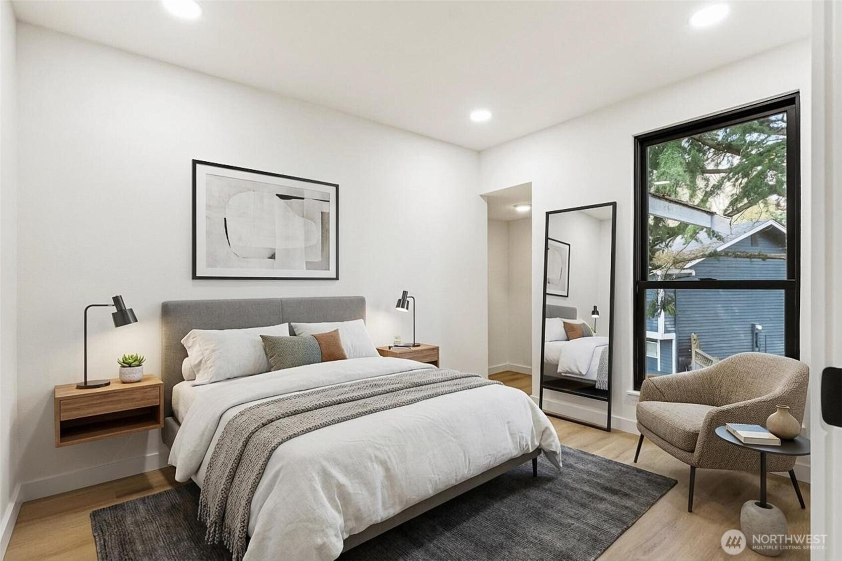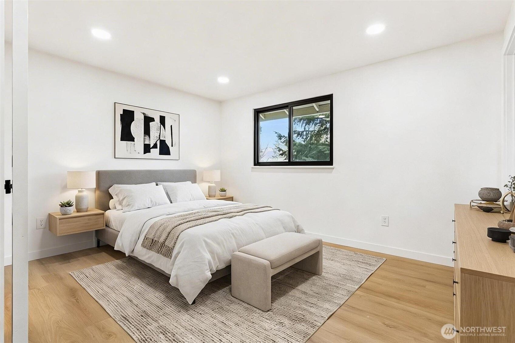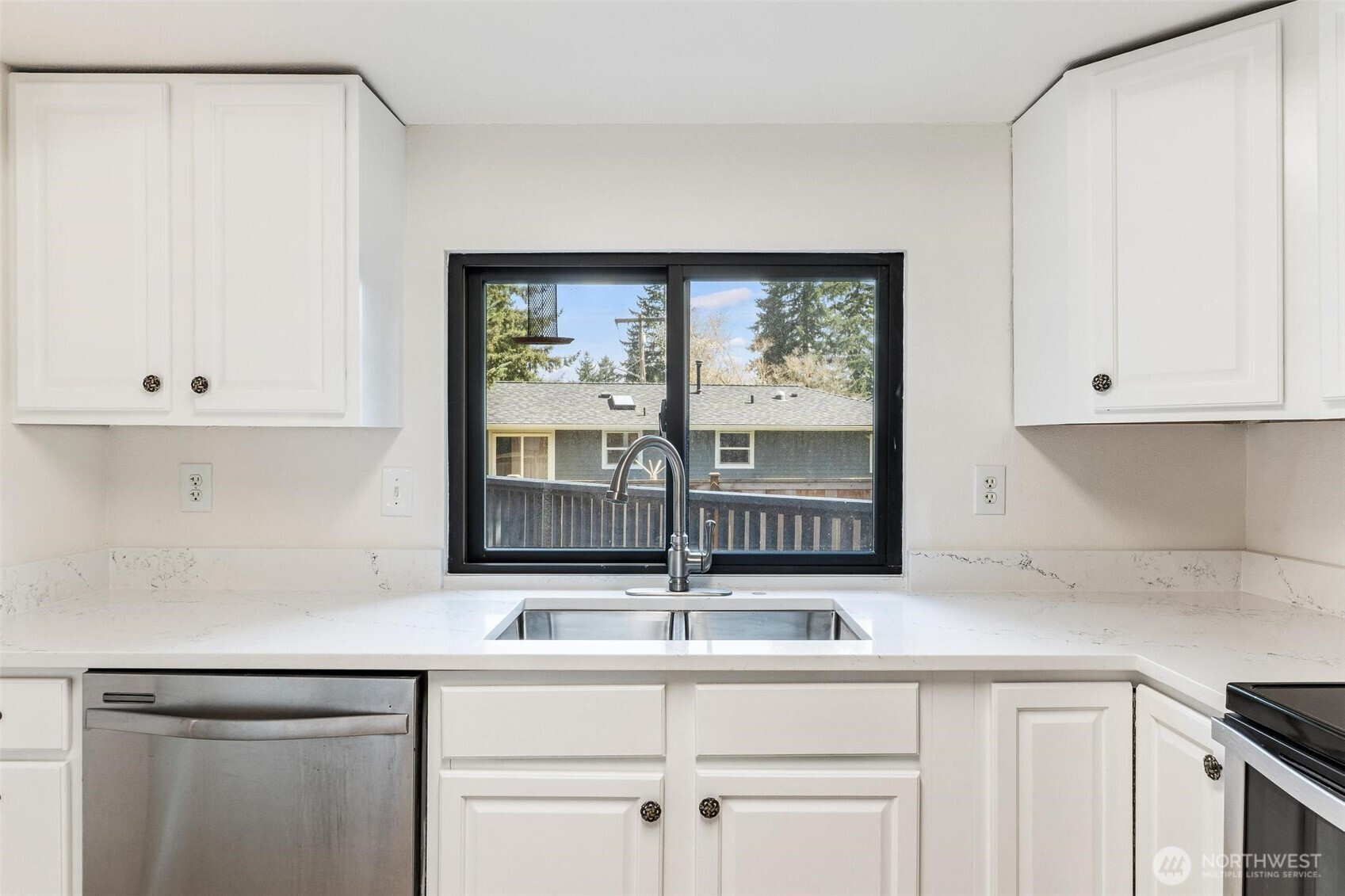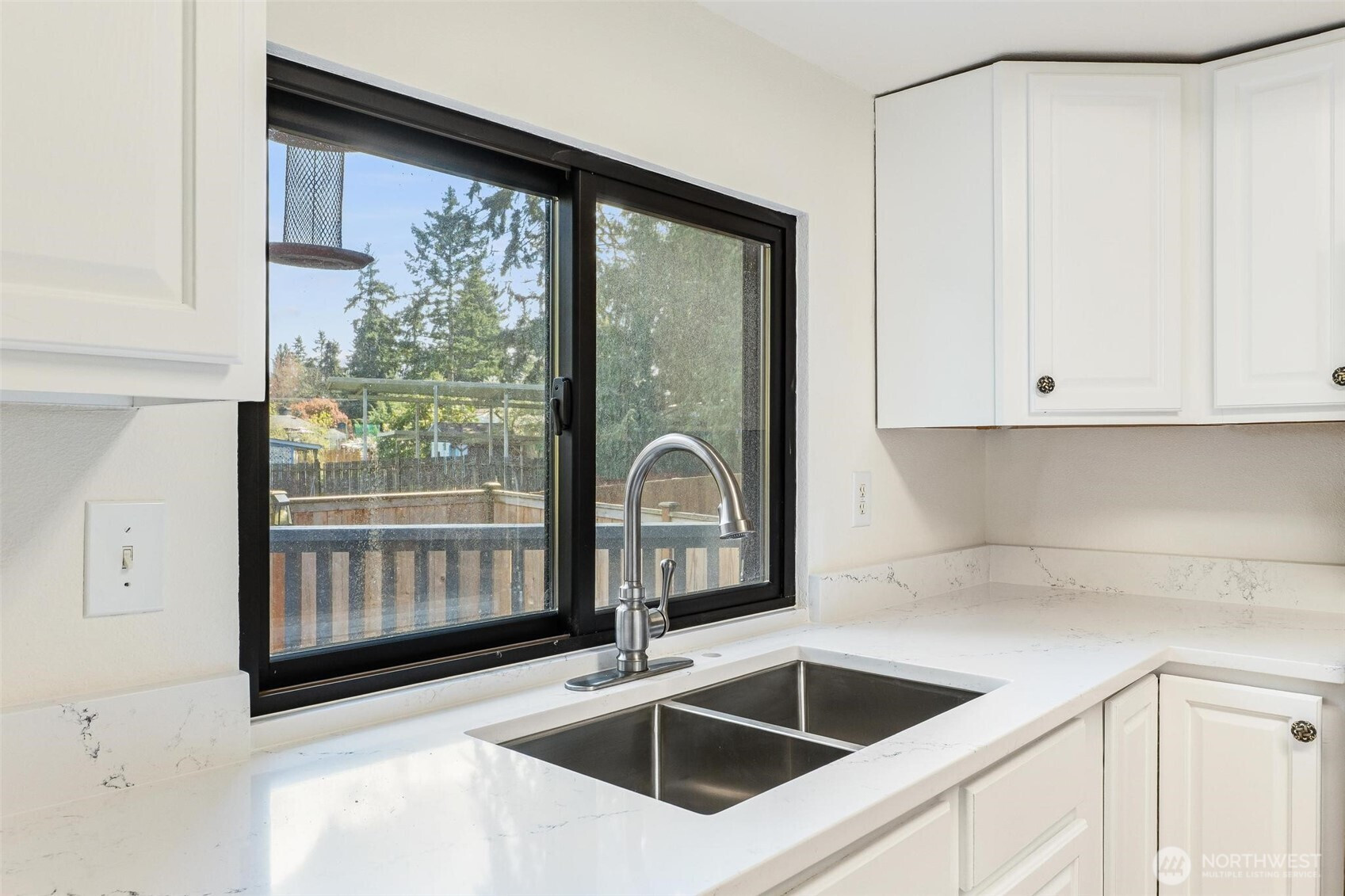 Tucked away in a quiet cul-de-sac with no through traffic, this beautifully updated home offers comfort, style, and an ideal location for commuters with easy access to Highway 18 and I-5. Filled with abundant natural light, the home features new luxury vinyl plank flooring throughout, a striking black fireplace that anchors the inviting living space, and elegant iron railing accents. The updated kitchen showcases quartz countertops and stainless steel appliances, flowing seamlessly into the dining area with direct deck access—perfect for indoor-outdoor living. The main-floor primary suite offers convenience and privacy with an en-suite bath and French doors, while the spacious lower-level bonus area with its own bathroom and backyard access provides versatile living options for guests, work, or recreation. Enjoy garden space in the backyard and a prime location near schools, shopping, dining, The Commons at Federal Way, and Twin Lakes Golf & Country Club, making this home the perfect blend of lifestyle and accessibility.