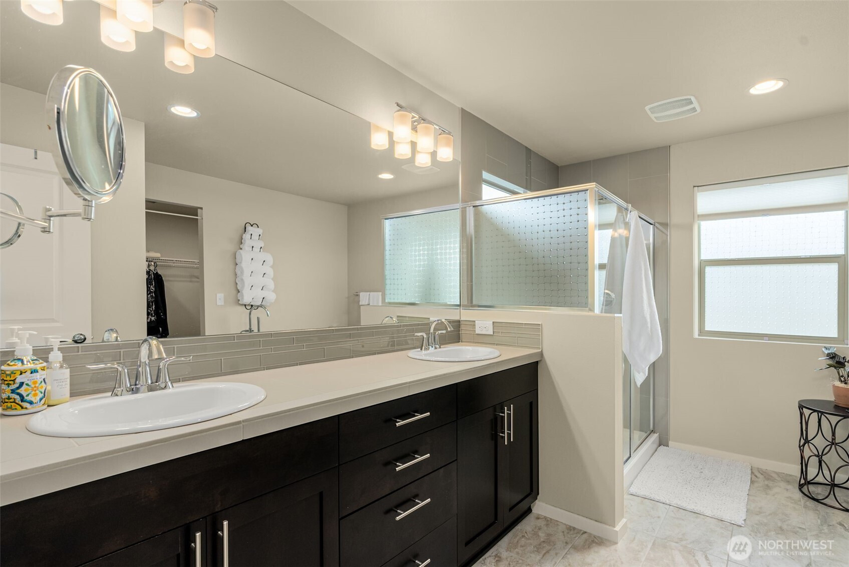 Built by Conner Homes and ideally situated on a desirable corner lot in the sought-after Ten Trails community! This beautifully maintained 5-bedroom, 2.5-bath home offers 2,570 sq ft of bright, thoughtfully designed living space. The open main level features a spacious living area with a modern fireplace, a convenient mudroom off the two-car garage, and a chef-inspired kitchen with slab countertops, an oversized island, and a walk-in pantry. Upstairs, enjoy a generous loft, well-appointed secondary bedrooms, and a serene primary suite complete with a spa-like bath and walk-in closet. Outdoor living includes a private, low-maintenance side yard, as well as an oversized, covered front porch. Easy access to parks, scenic trails, playgrounds, community events, and high-speed fiber internet.