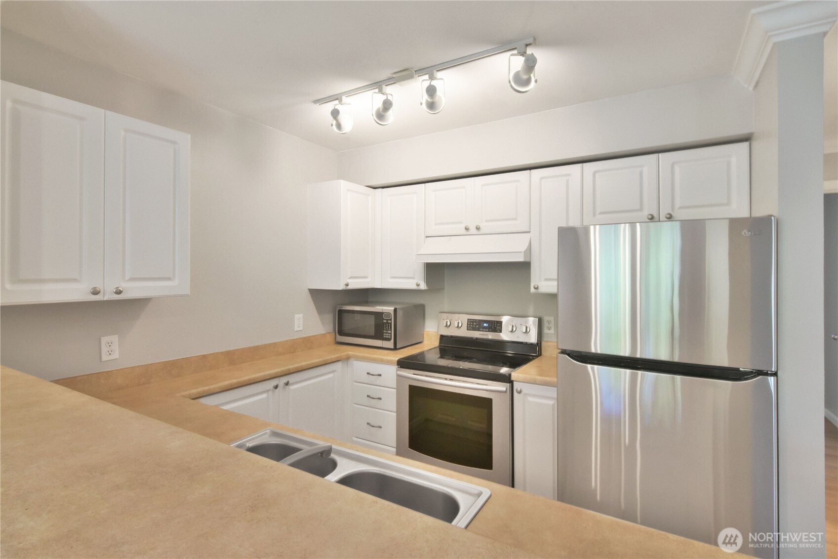 Experience easy living in this welcoming condo at Latitude, a serene, tree-lined community near Twin Lakes. Enjoy brand-new flooring, a cozy wood-burning fireplace, and an open-concept layout that connects kitchen, dining, and living spaces for effortless entertaining. Sip your morning coffee on the private balcony, and appreciate the convenience of your own one-car garage. With a pool, hot tub, sauna, fitness center, and clubhouse, Latitude offers resort-style comfort every day.