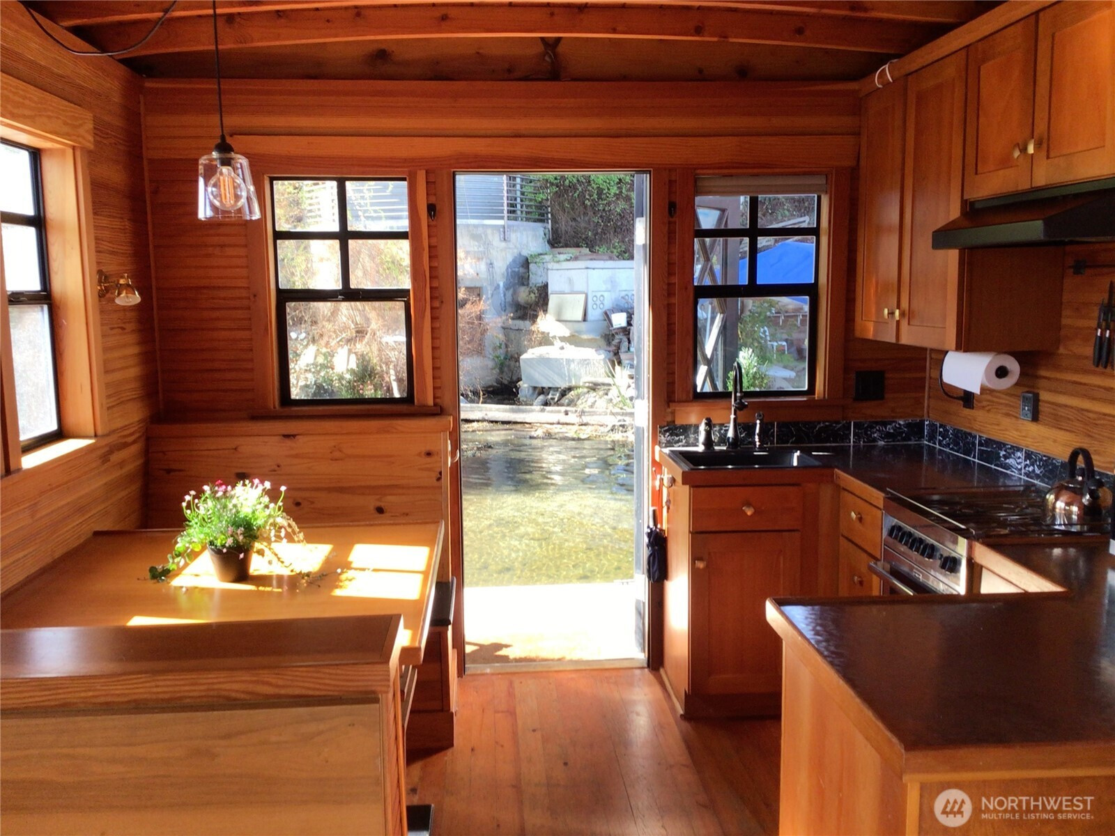 Welcome aboard vibrant Limoncello houseboat! Classic 2008 Haggard craftsman built on rare reinforced concrete hull. End-of-dock slip with open water views of UW campus, peaceful Seattle shoreline, and enjoy Ivar's, Gasworks Brewing and more just a minute's paddle away. Trademark river rock propane fireplace, coved cedar ceilings, fir walls & floor, clever built-in office desk, built-in dining nook, washer/dryer combo, huge pier with kayak/SUP racks, community garden & 2 free storage units! Walk or bike to local shops/restaurants. Rentals and pets OK, only $850/mo slip fee + $100/mo live aboard fee. FOWR 730.