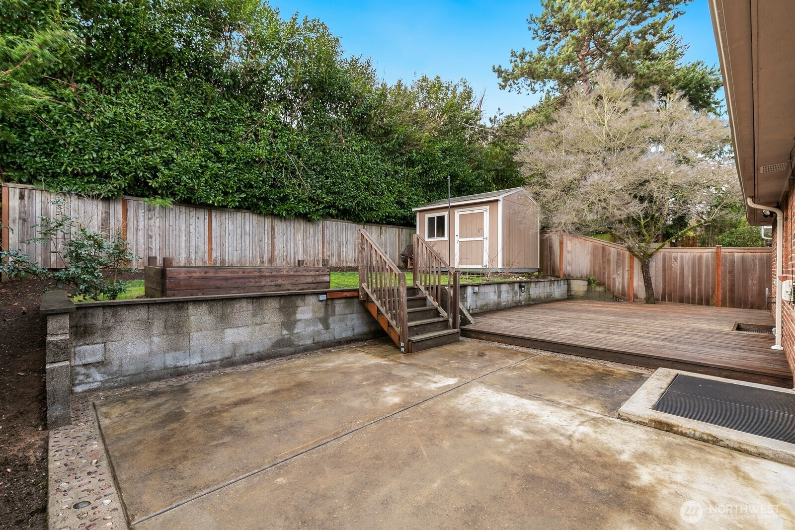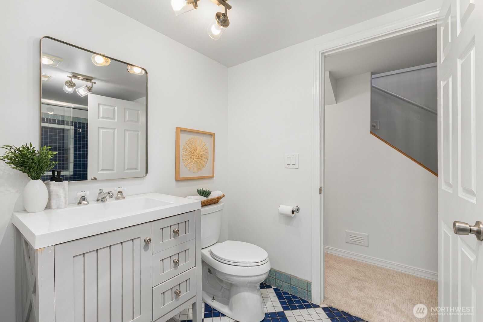 Beautiful mid-century brick home perched above the street with a thoughtfully designed circular floor plan. Stunning birch hardwood floors shine throughout the main level, leading to an updated spacious, modern kitchen with a statement island seating up to 8. A half flight up, 2 bedrooms & a full bath are privately positioned above the living spaces. The lower level features rare 9+-foot ceilings, a spacious rec room, primary bedroom, & bath. Enjoy a large, level backyard w/patio, garden space, & a bonus outbuilding ideal for a home office or extra storage. Upgrades include, new mini-splits,carpet, updated electrical, refinished hrdwd floors & interior paint. Ideal location, just minutes to the"Village", Discovery Park & downtown.