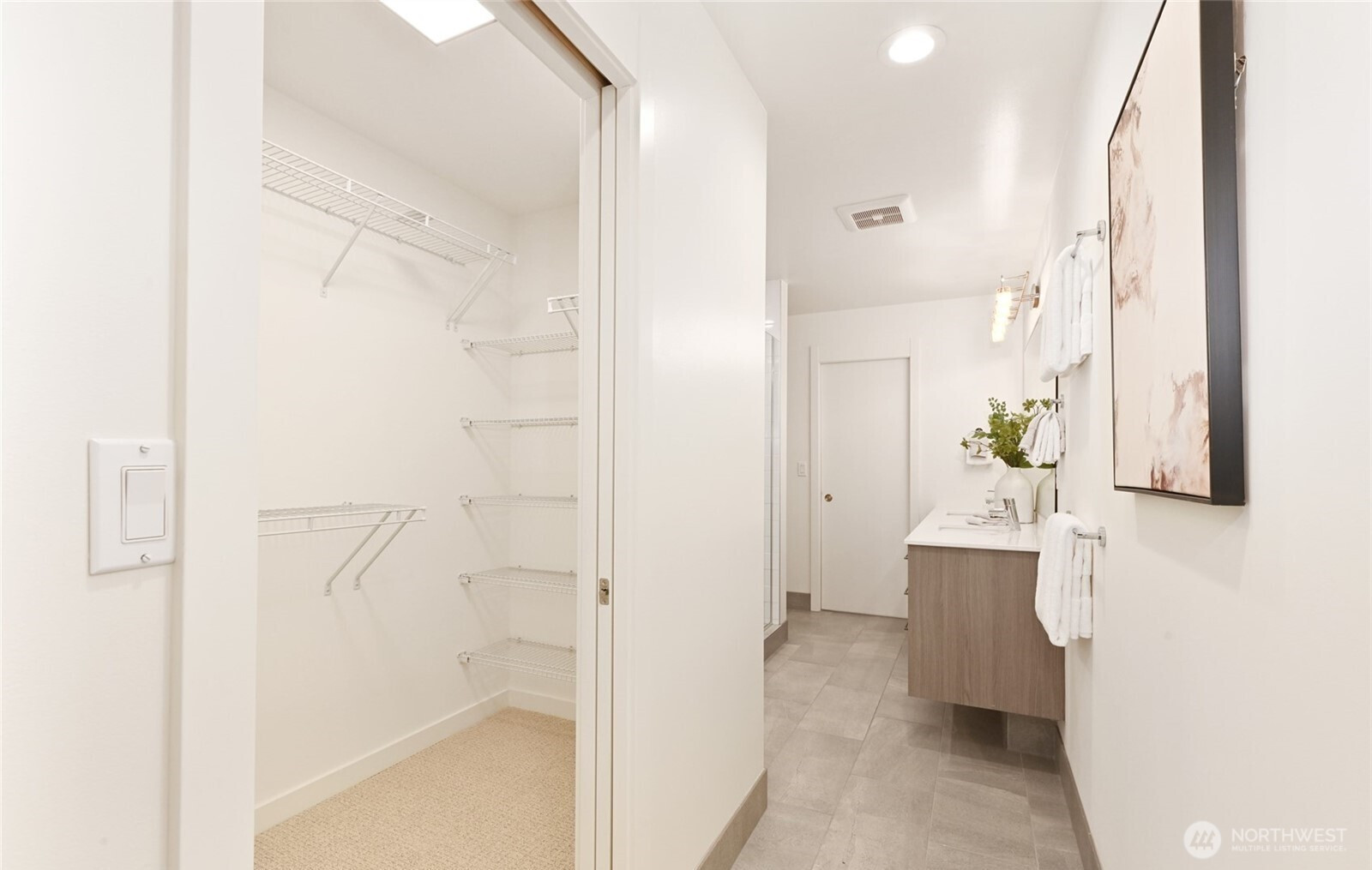Modern comfort meets Northwest charm in this newer upscale townhouse nestled on a quiet dead-end street in desirable Magnolia. Enjoy peaceful, unobstructed views of protected green space and an unbeatable location just two blocks from Discovery Park, with an easy stroll to the Ballard Locks and Magnolia Village. This thoughtfully designed 3-bedroom, 2-bath, corner unit home features an open-concept main living area ideal for everyday living and entertaining. The stylish kitchen is outfitted with stainless steel appliances, a gas range, and a generous island that flows seamlessly into the dining and living spaces. A gas fireplace adds warmth and ambiance to the inviting living room. The private top-floor primary suite offers a relaxing retreat with a spa-inspired bathroom and walk-in closet. Two additional bedrooms on the first floor share a full bath—perfect for guests, home office space, or flexible living. Distinctive design details including rustic wood accents, rift-sawn oak floors, and striking metal stairway railings give the home a sophisticated yet cozy Northwest aesthetic. Take in expansive evergreen views from the rooftop deck—ideal for morning coffee or sunset gatherings. Assigned parking included, and no HOA dues make this a rare Magnolia opportunity.