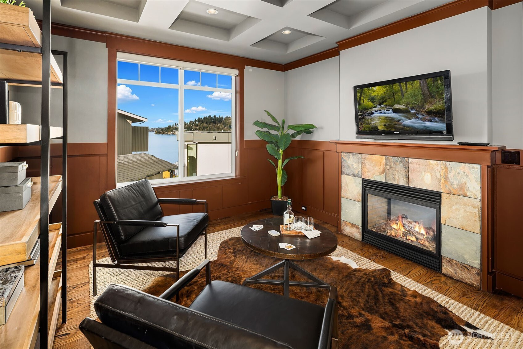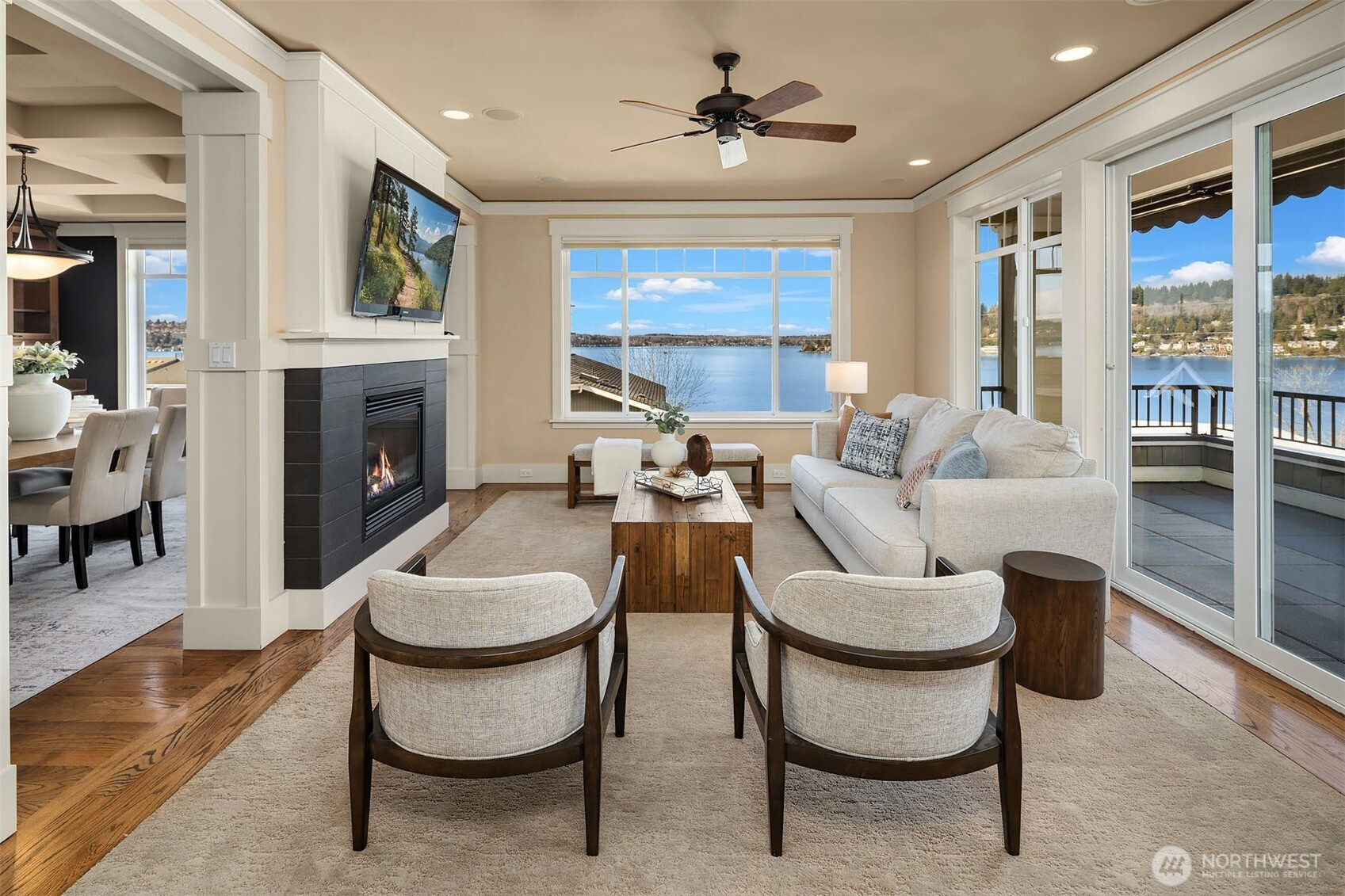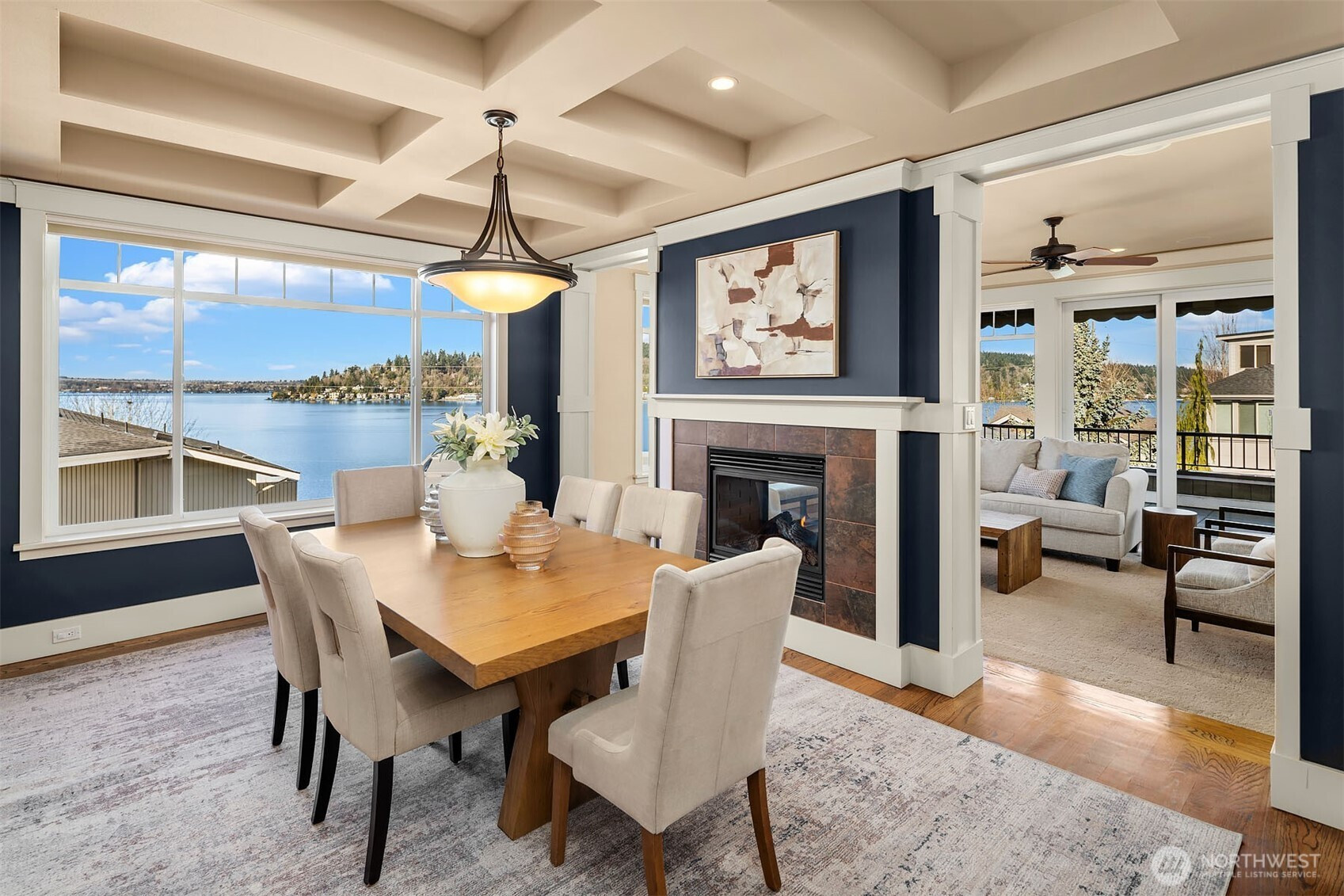 Situated in the sought-after Lower Kennydale neighborhood, this exceptional residence offers sweeping panoramic views encompassing Lake Washington, Mercer Island, and the Olympic Mountains. The home showcases refined craftsmanship and thoughtful detailing, seamlessly blending traditional and contemporary elements with a sophisticated yet inviting palette. Enjoy a tranquil and private sanctuary, free from street noise. The luxurious primary suite includes a fireplace and a secluded deck, while the office and den feature custom cabinetry. The chef’s kitchen connects to an elegant dining room that boasts a fireplace and remarkable western vistas. Outdoor dining and boat watching are available on two spacious decks. The lower level comprises a home theater and bonus room with potential for a MIL suite. Enhancing convenience, the property is equipped with a beautiful elevator. Located just minutes from Kennydale Beach Park, East Trail for walking and biking, Coulon Beach Park, SeaTac Airport, Downtown Bellevue, and Seattle, the home provides impeccable maintenance and design. It combines luxury living with rare accessibility—quick access to I-405 without freeway noise. This modern classic embodies distinguished luxury living.