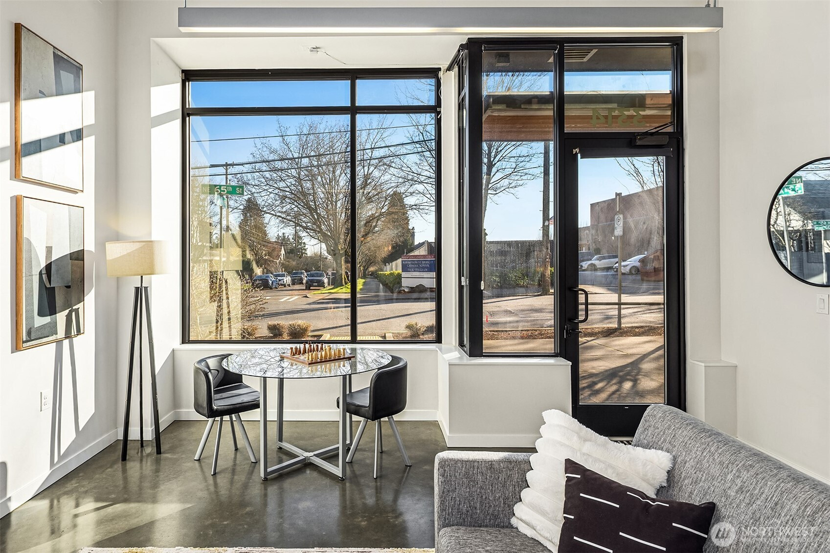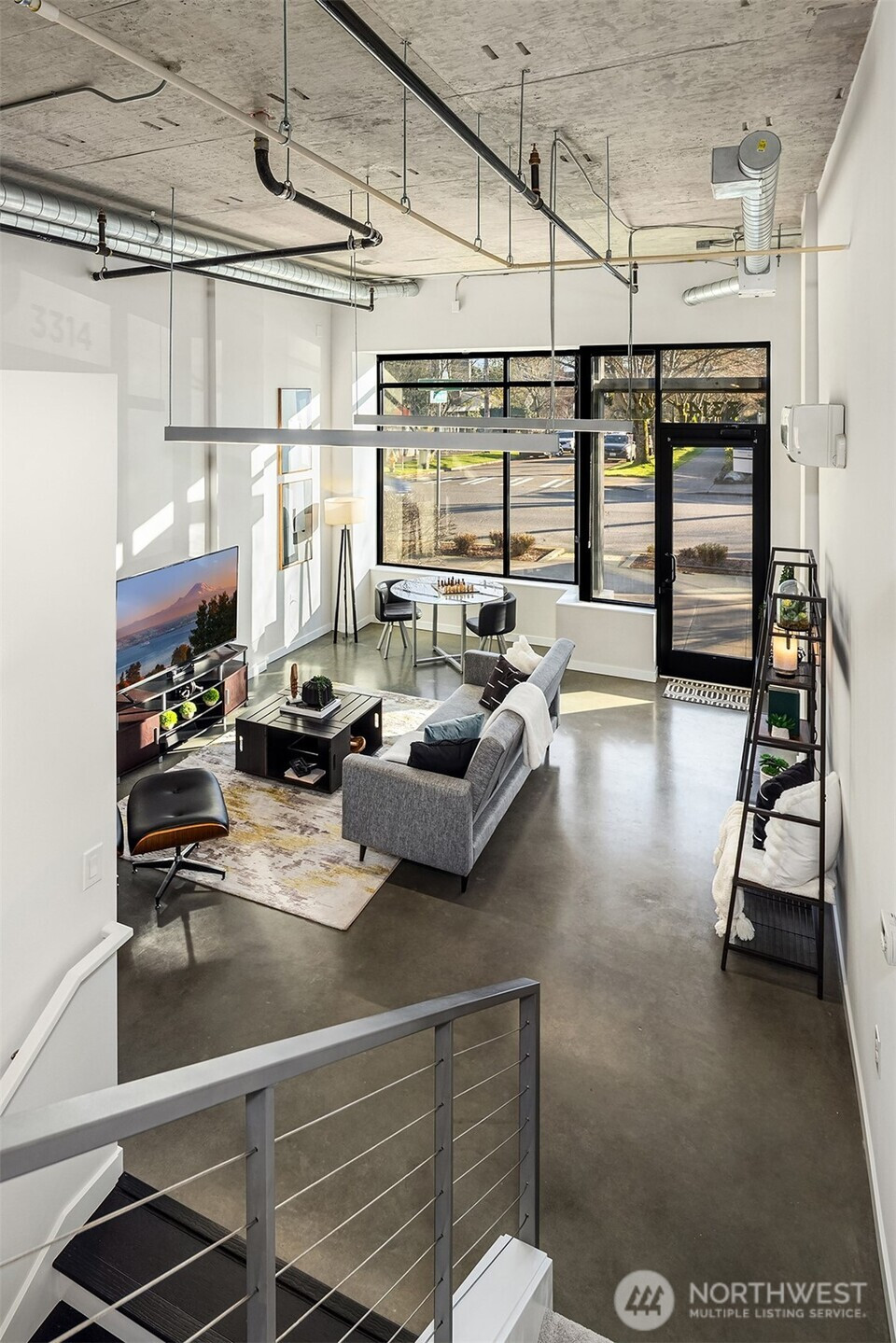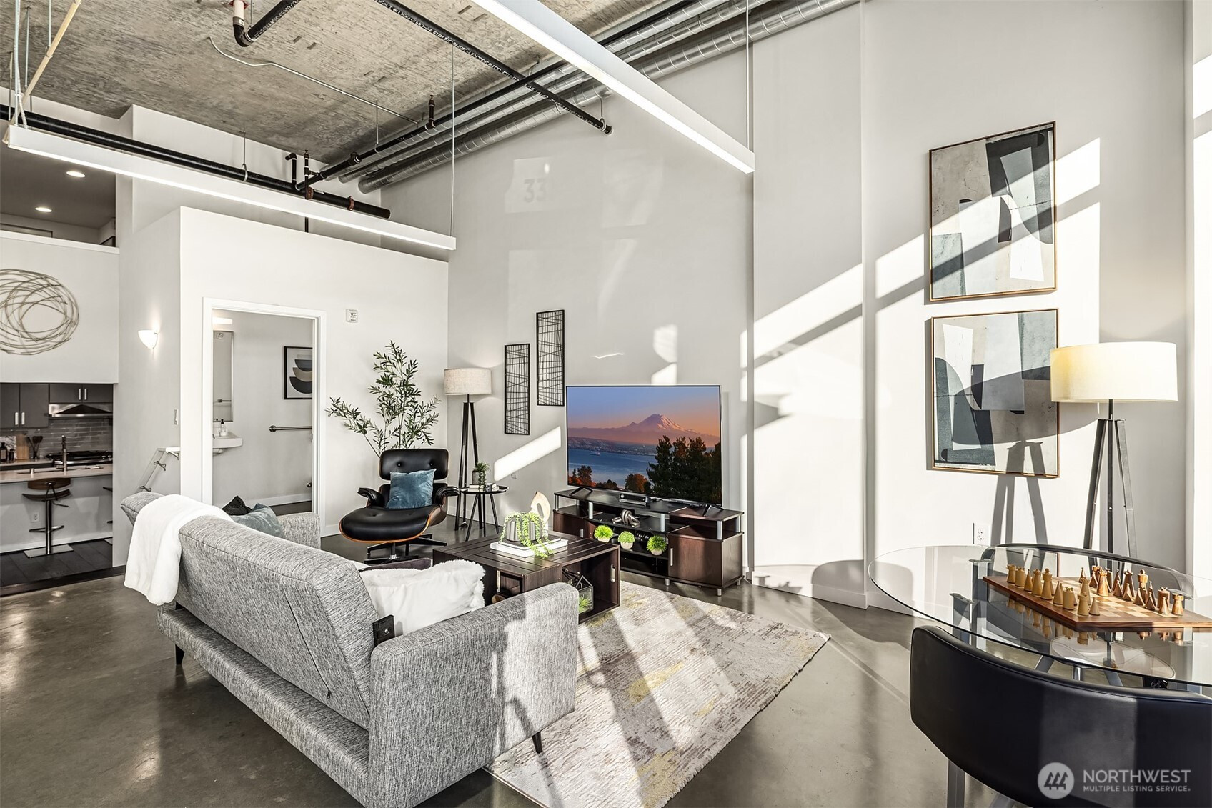 Enjoy modern living in the vibrant Ravenna community! This sleek loft offers live/work flexibility. Modern design elements include polished concrete floors, soaring ceilings and oversized windows that bask the interior with natural light. Inviting main level living space with a convenient half bath. The lower level kitchen is beautifully appointed with quartz counters, a stainless appliance package and subway tile backsplash. Flex space for office or dining. Upper level primary bedroom with ensuite bath and laundry. Secure garage parking space. Newer building with nearby transit makes commuting a breeze. Minutes to UW, Seattle Children's Hospital and shops and dining at University Village. Pre-inspected, turn-key condition. Welcome home!