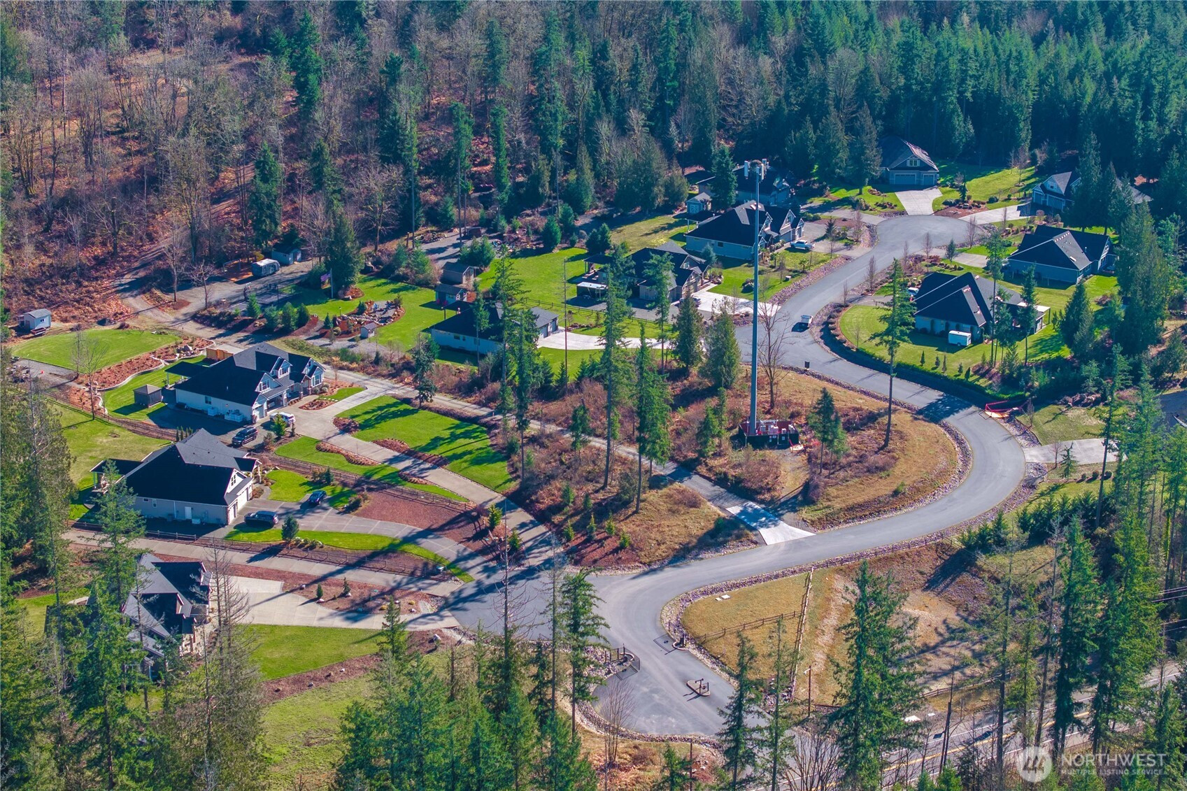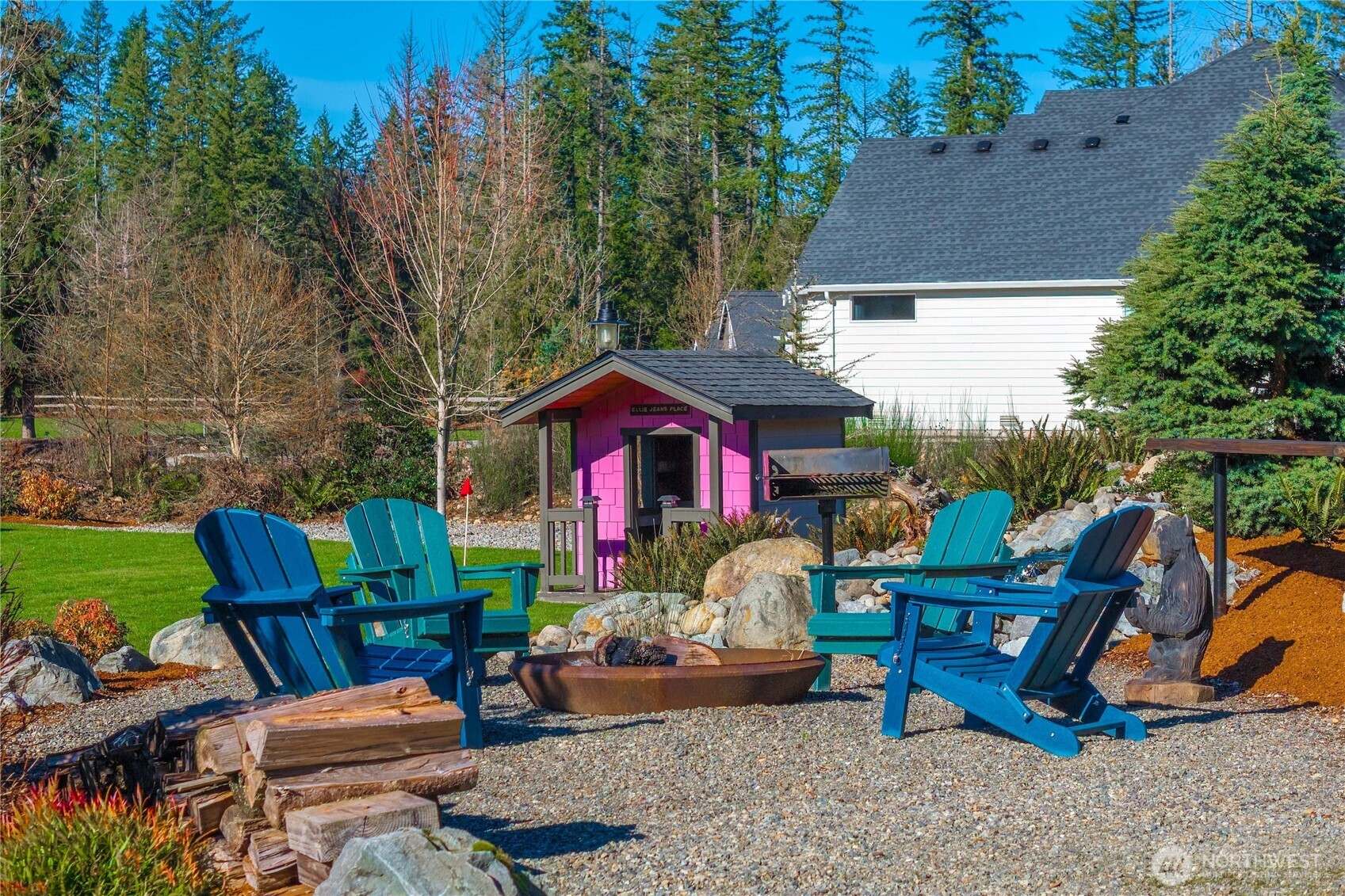 Rare cul-de-sac rambler on a spacious acreage lot in the desirable, gated Estates at Forest Mill community, offering privacy, flexibility, and true single-level living. This Garrette Custom Homes 3-bedroom, 2-bath rambler features an open, flowing floor plan with high ceilings, abundant natural light, and air conditioning for year-round comfort. The great room is designed for both daily living and entertaining. The gourmet kitchen includes a gas range, double oven, quartz countertops, stainless steel appliances, and generous workspace with seamless connection to the dining and living areas. The privately positioned primary suite offers a comfortable retreat with a spacious walk-in closet and en suite bath, thoughtfully separated from secondary bedrooms for added privacy. A parlor off the entry provides a versatile space ideal for a home office, hobby room, or secondary living area.The backyard is a true oasis with a covered porch, landscaped areas, fire pit, sport court, playhouse, horseshoe pits, treehouse, landscape lighting, and irrigation, creating exceptional outdoor living and recreation space. Two powered outbuildings and a woodshed add functionality and storage. The three-car garage features epoxy flooring and a generator panel that services the built-in generator. Designed for long-term livability, this property offers a rare combination of acreage, recreation, privacy, and functionality in a quiet, well-established setting.