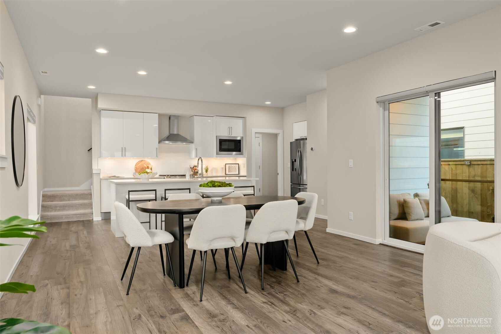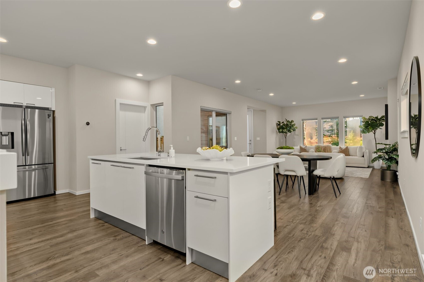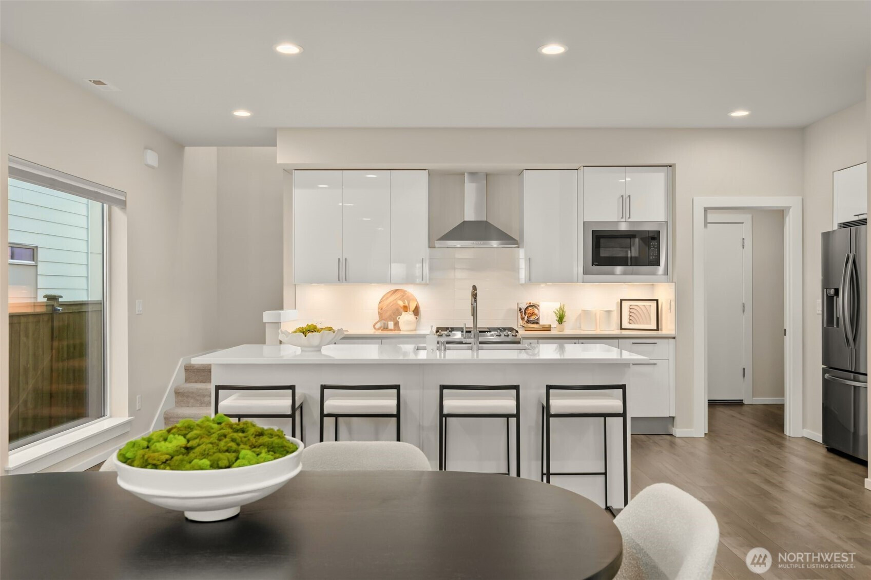 Tucked away on a quiet street in the Ten Trails community, this thoughtfully designed Ichijo home delivers modern comfort, smart functionality, and room to truly settle in. The light-filled main level features an open-concept layout anchored by a welcoming great room with gas fireplace and a contemporary kitchen that flows seamlessly into the living and dining spaces, perfect for everyday living and effortless entertaining. Quartz countertops, a gas range, soft-close cabinetry with pull-down shelving, built-in organizers, under-cabinet lighting, and a walk-in pantry bring both style and efficiency to the heart of the home. Upstairs, the primary suite offers a generous walk-in closet and spa-like five-piece ensuite. Well-sized secondary bedrooms and a versatile loft provide flexibility for a home office, movie room, or workout space. Outside, enjoy a covered patio and partially fenced yard with low-maintenance landscaping, ideal for relaxed evenings or weekend hosting. All of this is set within a vibrant, well-connected community featuring parks, playgrounds, trails, and easy access to Black Diamond amenities and commuter routes.