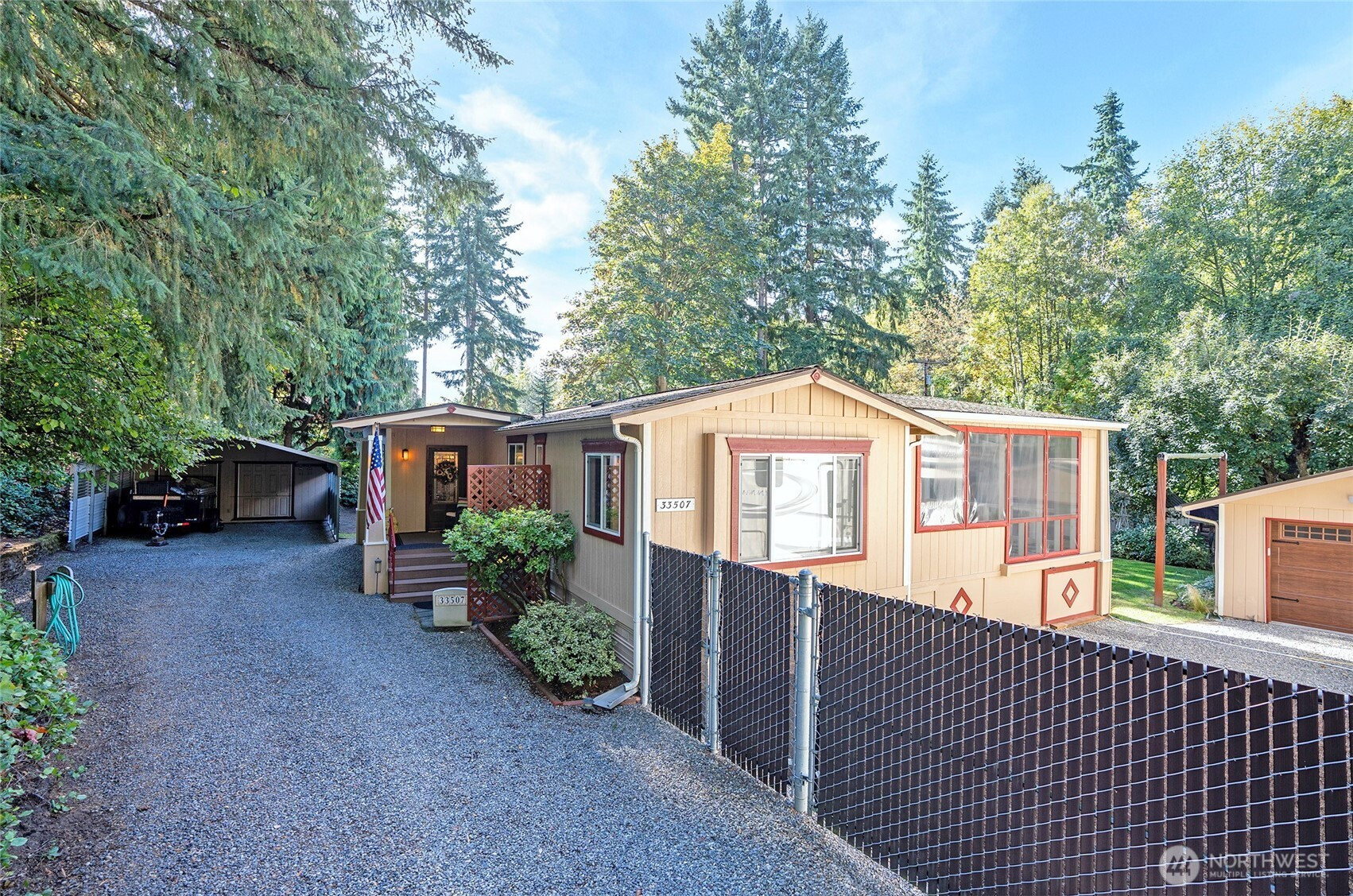 If you’ve been dreaming of cozy country living without giving up city living, this beautifully updated manufactured home is for you! Enjoy a remodeled kitchen with SS appliances, a large walk-in closet, and a 280 SF bonus/entertainment room for relaxing or hosting. The bonus/entertainment room area opens to a covered Azek deck with a hot tub. Need extra space? The 520 SF flex building is ideal for a home office/ studio. Recent updates include a new roof, siding, heat pump, & generator-ready wiring. With multiple sheds, garage, carport, & gated RV parking, storage is never an issue. Step outside to a flat, landscaped yard with a firepit & outdoor movie screen—the perfect blend of comfort, functionality, & playful outdoor living.