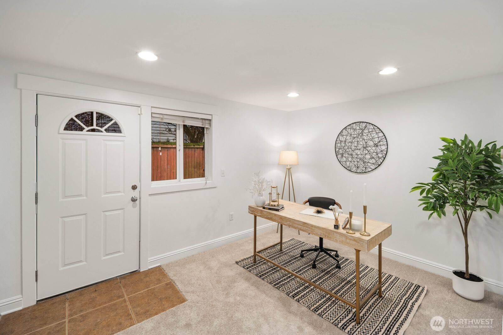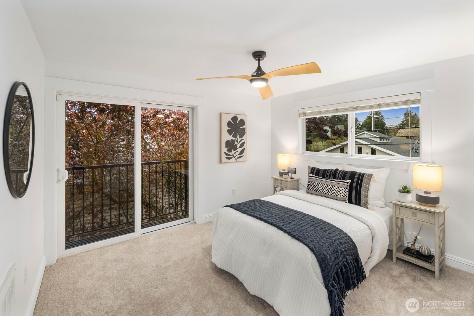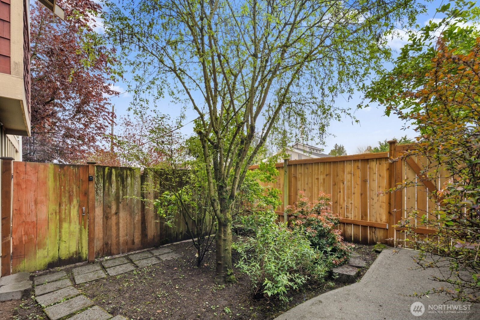 Spacious and flexible end-unit townhome in the heart of Greenwood that meets modern living. Tucked within a 3-unit community with no HOA, this home offers a perfect blend of privacy and convenience. The corner position brings in exceptional natural light through large windows while maintaining a quiet, protected feel. A wider-than-typical layout, tall ceilings, and open spaces create an airy, comfortable flow you don’t often find in Seattle townhomes. The entry level includes a flex bedroom / office and full bath with its own secure back entrance—ideal for guests, work-from-home, or rental potential. Off the entry level bed you'll find a unique oversized yard with code-equipped access that adds usable outdoor space without sacrificing privacy. The second level is dialed—featuring hardwood floors throughout the open concept living, kitchen, and dining spaces, plus a well-placed powder room off the living area. The kitchen has a gas range, ample cabinetry, bar seating, and great prep space for daily living or hosting. On the 3rd and final level, you'll find the primary suite with a double vanity en-suite and strong natural light between the mature landscaping shading the Juliet balcony. Fresh interior paint and new carpet make it truly move-in ready. Dedicated off-street parking provides everyday convenience. Steps to transit and minutes to the Lightrail. Simple commute to DT, the Eastside, and all things Seattle has to offer. Don't miss it!