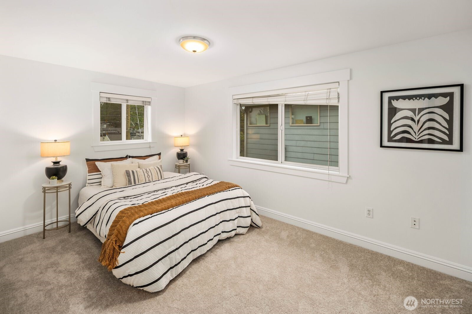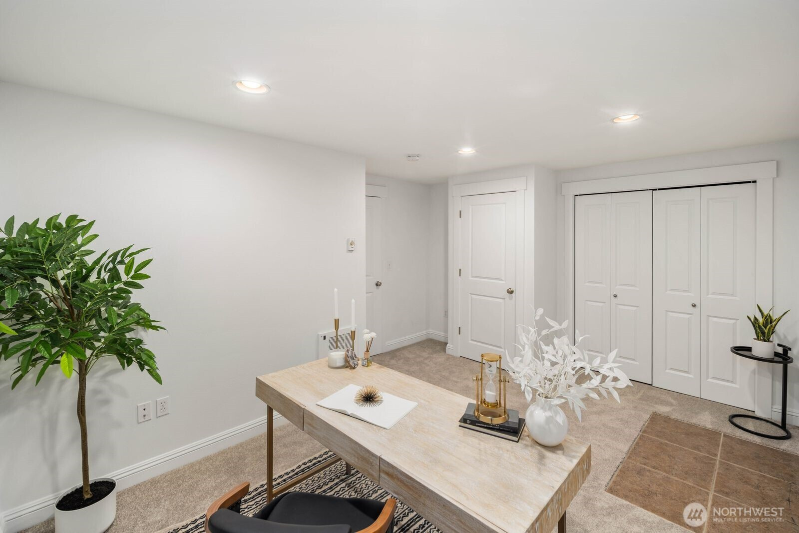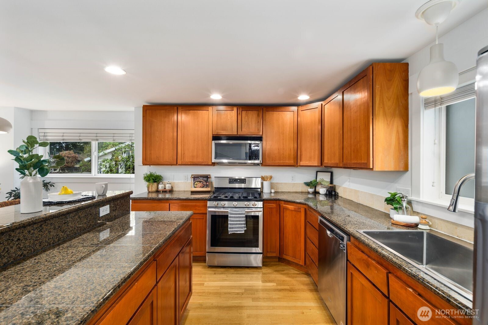 Spacious and flexible end-unit townhome in the heart of Greenwood that meets modern living. Tucked within a 3-unit community with no HOA, this home offers a perfect blend of privacy and convenience. The corner position brings in exceptional natural light through large windows while maintaining a quiet, protected feel. A wider-than-typical layout, tall ceilings, and open spaces create an airy, comfortable flow you don’t often find in Seattle townhomes. The entry level includes a flex bedroom / office and full bath with its own secure back entrance—ideal for guests, work-from-home, or rental potential. Off the entry level bed you'll find a unique oversized yard with code-equipped access that adds usable outdoor space without sacrificing privacy. The second level is dialed—featuring hardwood floors throughout the open concept living, kitchen, and dining spaces, plus a well-placed powder room off the living area. The kitchen has a gas range, ample cabinetry, bar seating, and great prep space for daily living or hosting. On the 3rd and final level, you'll find the primary suite with a double vanity en-suite and strong natural light between the mature landscaping shading the Juliet balcony. Fresh interior paint and new carpet make it truly move-in ready. Dedicated off-street parking provides everyday convenience. Steps to transit and minutes to the Lightrail. Simple commute to DT, the Eastside, and all things Seattle has to offer. Don't miss it!
