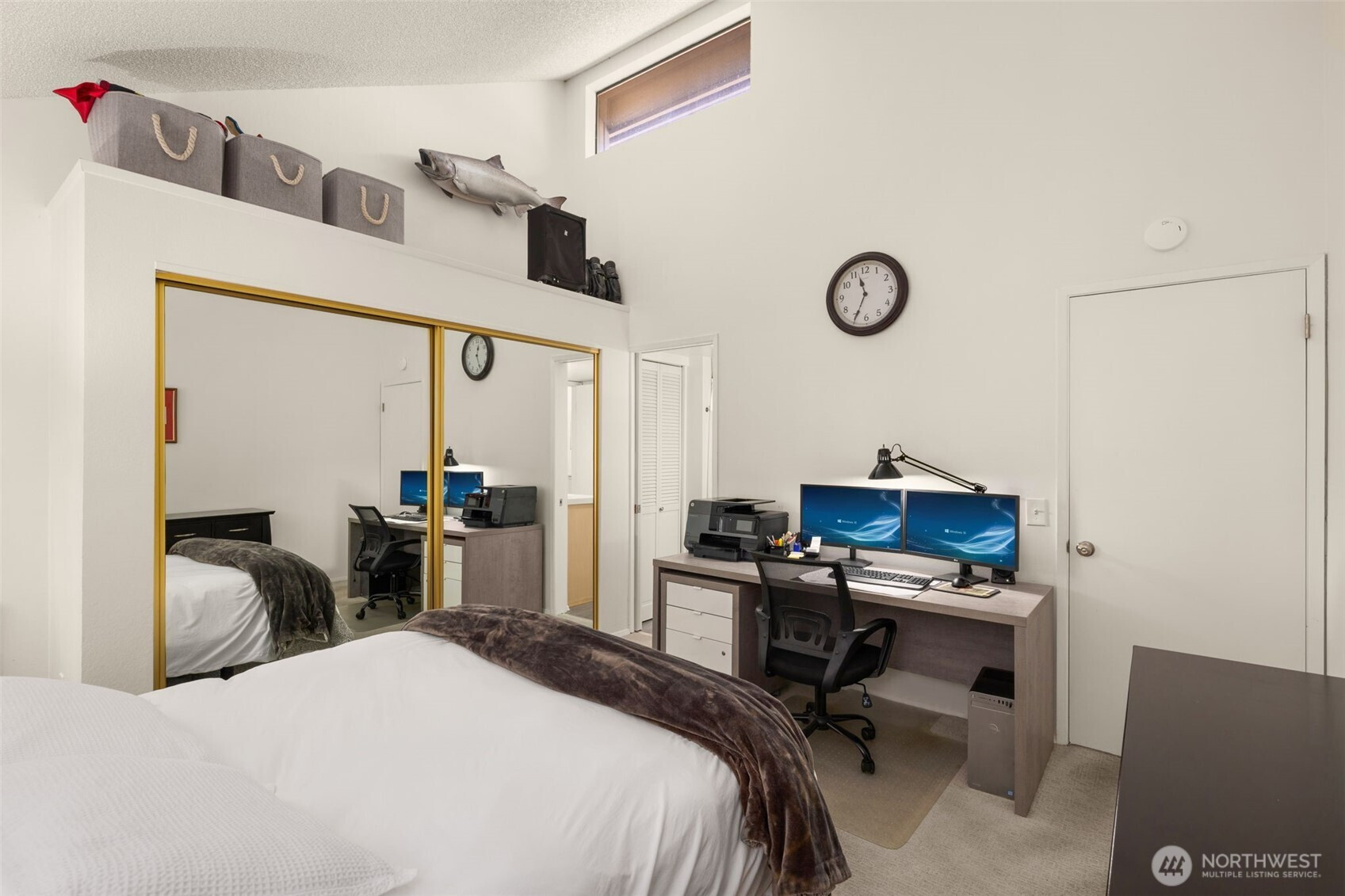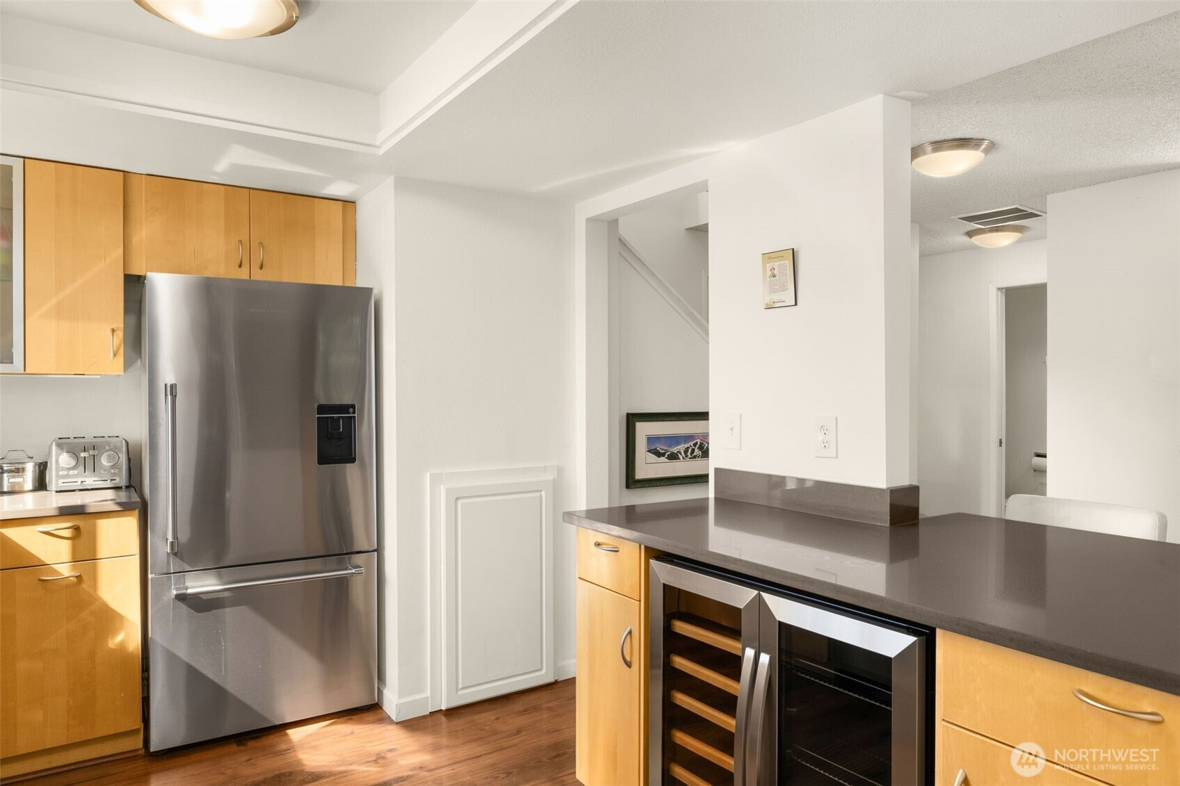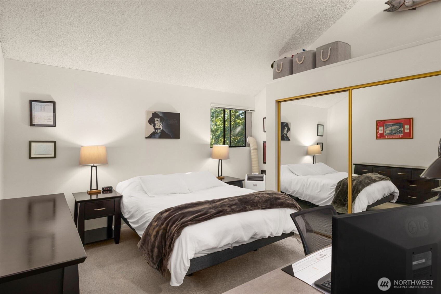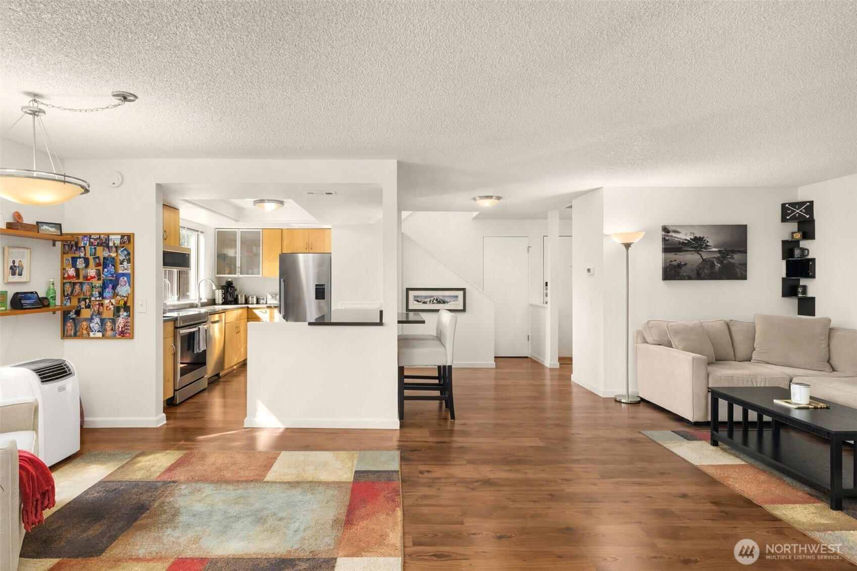 Beautiful NW Contemporary townhouse end unit in Yarrowood! Prime location near Seattle, DT Bellevue, Redmond & Kirkland. Vaulted ceilings and large windows offer tons of natural light and views of mature landscaping. The great room features hardwood floors, a wood-burning fireplace and an open floor plan that leads to a beautiful private patio—perfect for enjoying PNW evenings. Upstairs offers 2 bedrooms, full bath, and a laundry room. Just steps from the pool, tennis court & clubhouse. Includes 2 parking spaces, extra storage, and no rental cap!