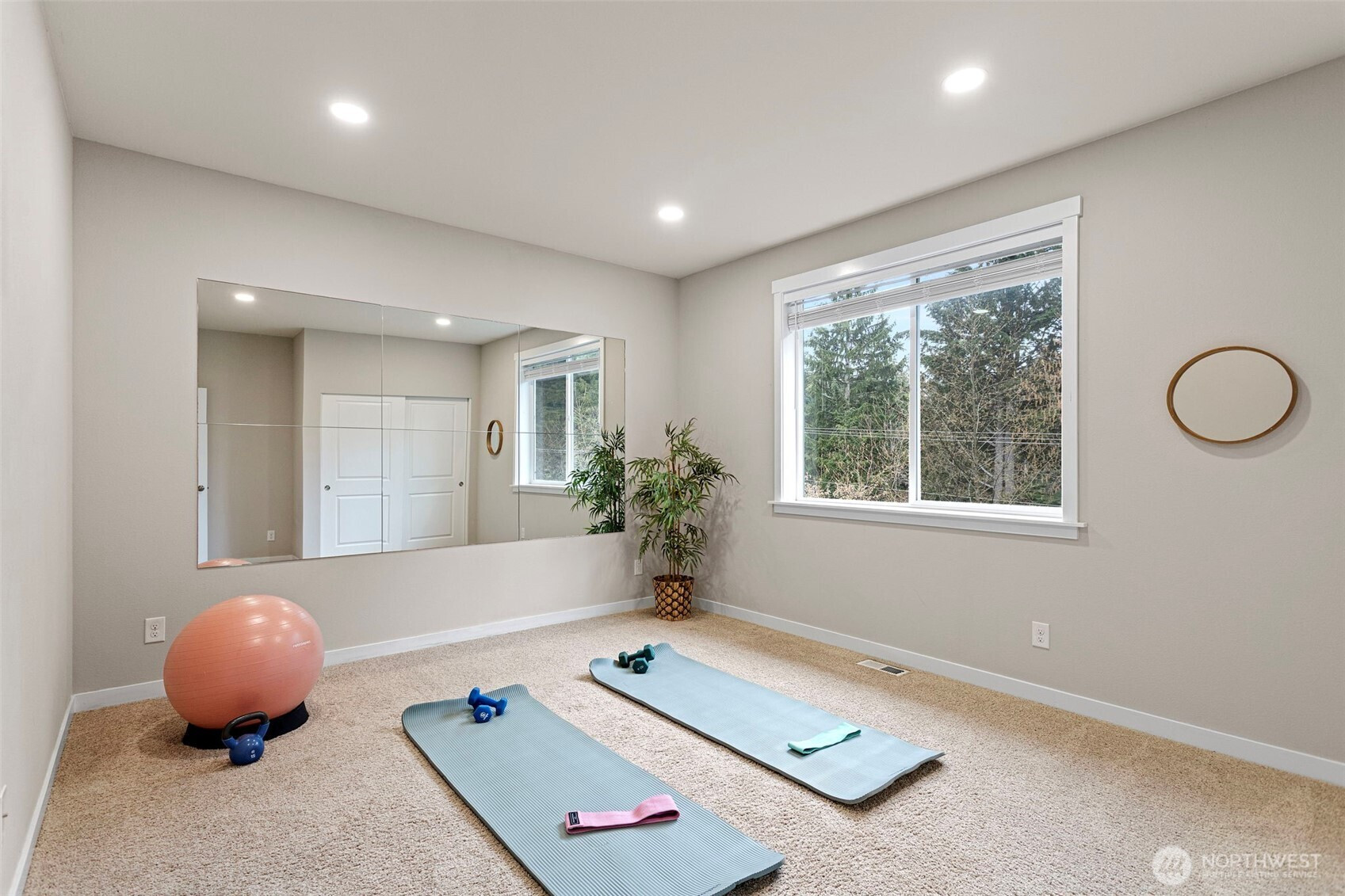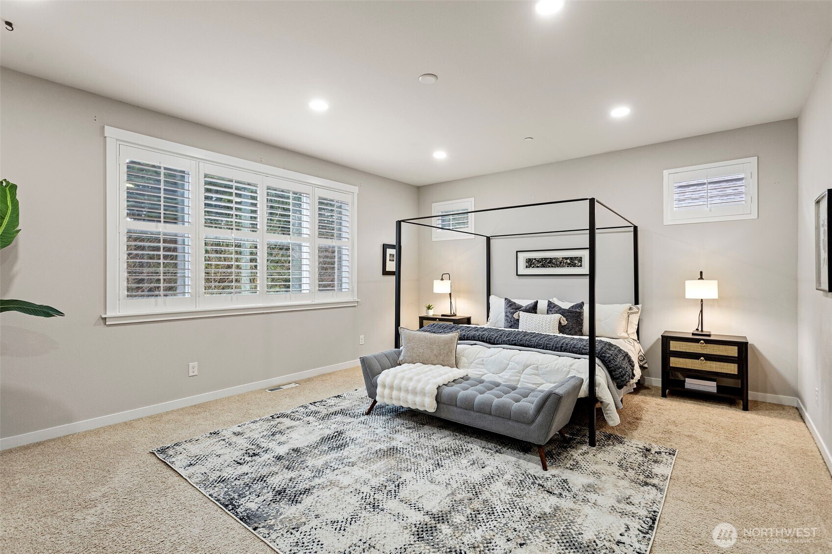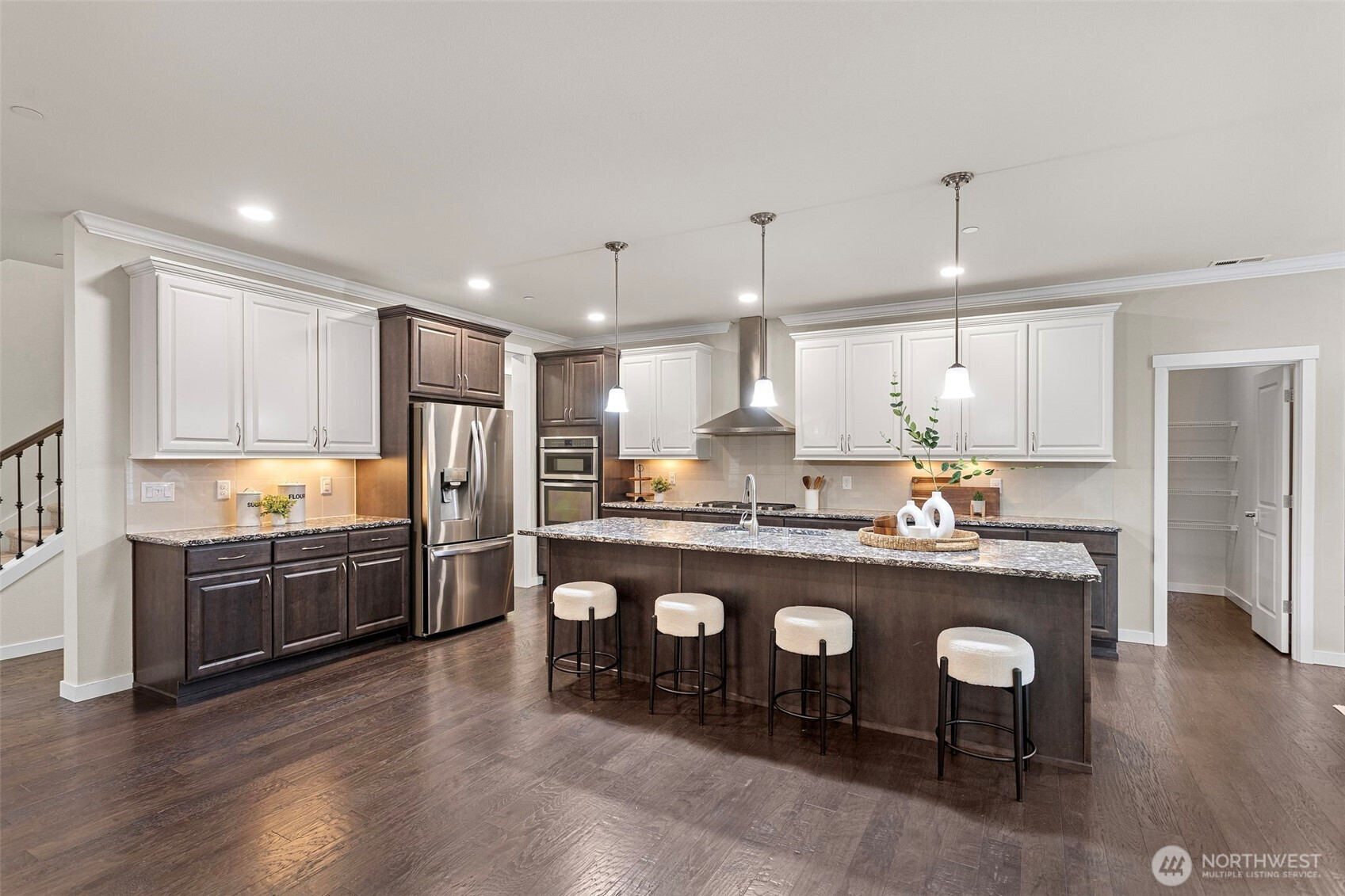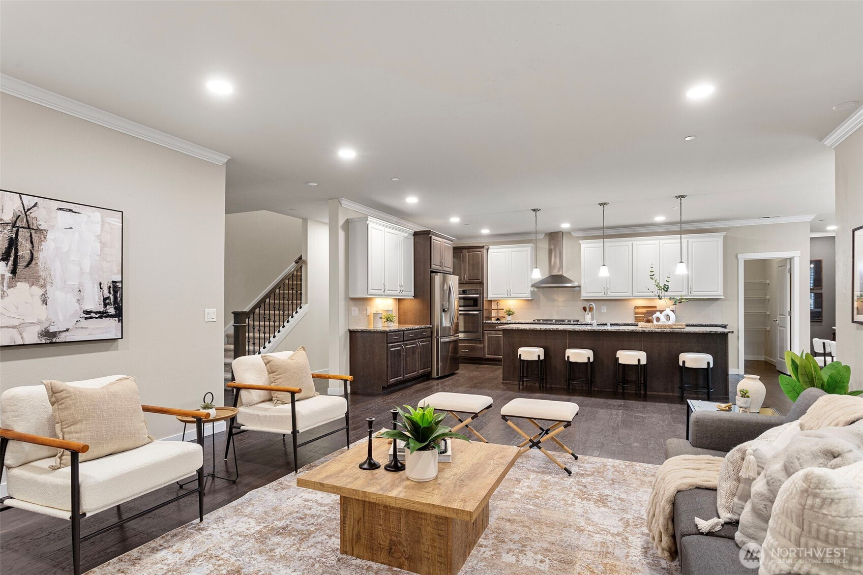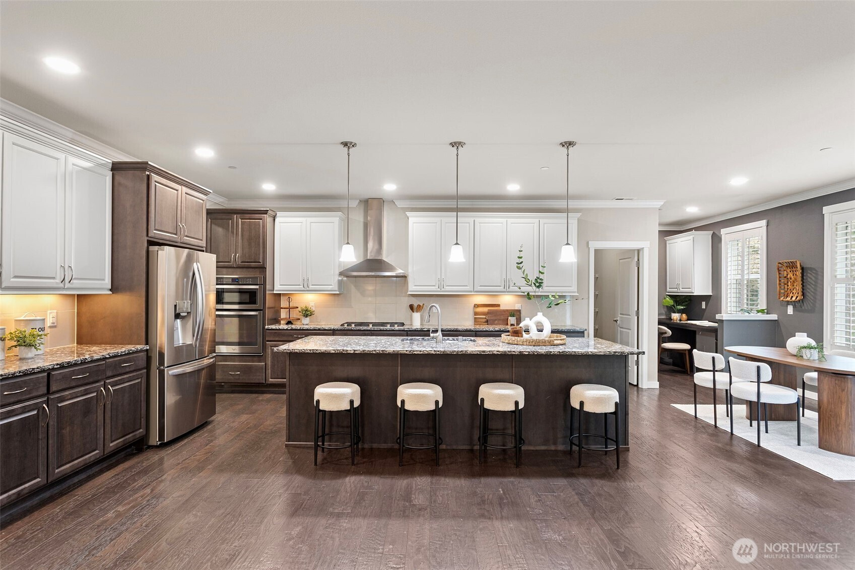 Welcome to The Timbers, a coveted 34-home enclave nestled among the trees on a flat cul-de-sac in sought-after Snoqualmie Ridge. This stunning 5-bedroom residence is the largest floor plan in the neighborhood and offers rare versatility with a spacious main-floor bedroom featuring its own ensuite—ideal for guests or multigenerational living. The heart of the home is the expansive kitchen, anchored by an impressive center island perfect for cooking, hosting, or gathering. Large windows line the back of the home, filling the space with natural light and framing serene views of the lush greenspace behind the property. Enjoy formal dining for special occasions, work from home in the main-floor office, and let your imagination run in the massive upstairs bonus room. Upstairs, the oversized primary suite is a true retreat, complemented by three additional bedrooms and two more bathrooms, ensuring room for everyone and everything. With thoughtful details throughout, plus wiring for audio and a hot tub, this home blends comfort, space, and privacy in an exceptional setting. Come experience it and fall in love.