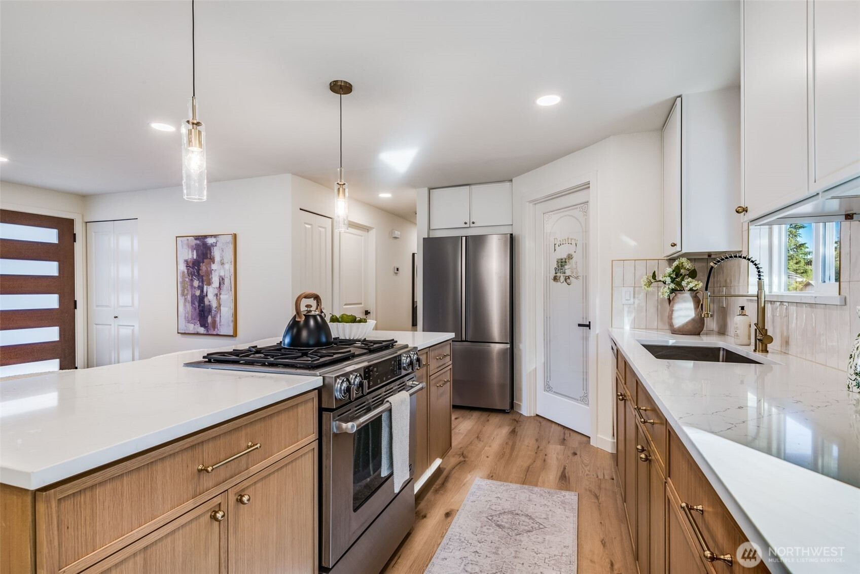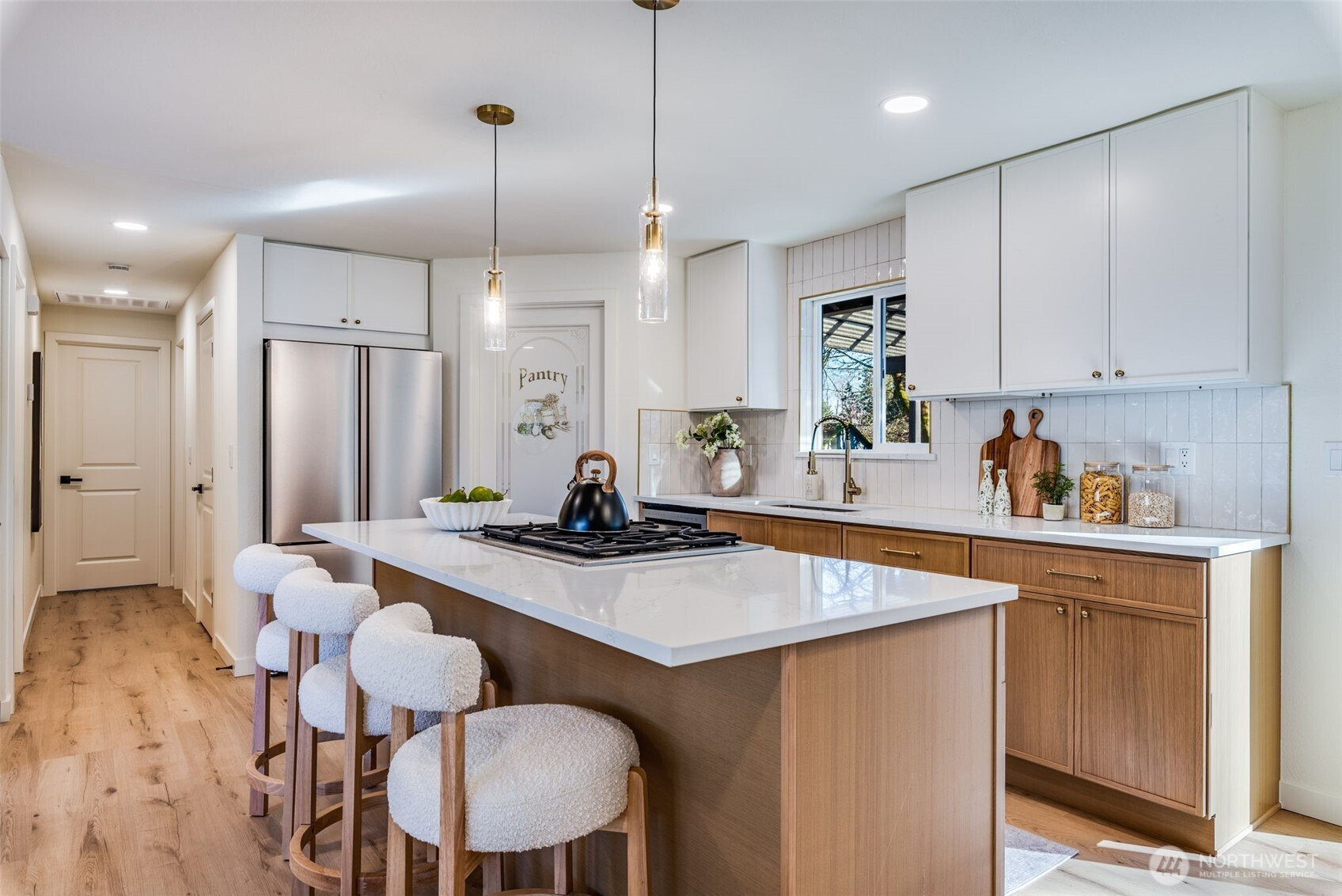 Beautifully remodeled and thoughtfully designed, this 3 bedroom, 2 bath home offers a perfect blend of classic style and modern comfort. The open concept living space features a spacious island, stunning walk-in pantry, and a cozy electric fireplace that creates an inviting atmosphere for everyday living. The primary suite includes a walk-in closet and a private en-suite bath, providing a comfortable retreat. Every detail of this home was updated with a timeless, classic aesthetic in mind, maximizing functionality while maintaining warmth and charm. Efficiently laid out with plenty of space to live and entertain, this home is truly move in ready with a brand new roof and a new hvac system!