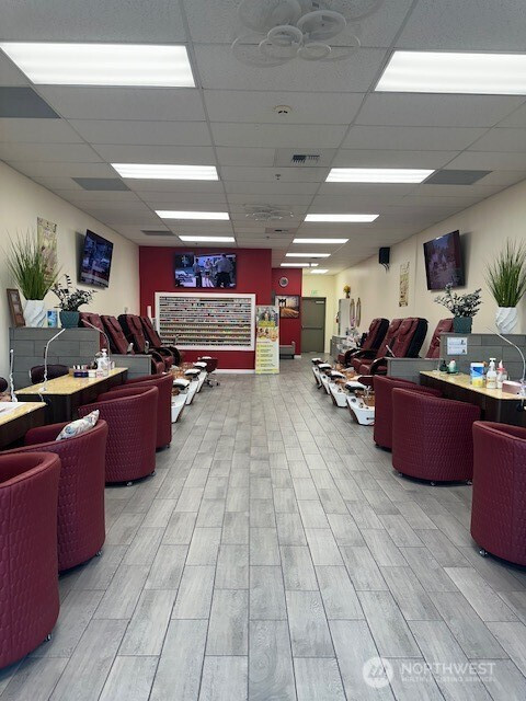 Sought after location of NE Tacoma!. Eden Nails, a well-established, fully equipped nail salon on Hoyt Rd with high traffic and visibility. All furniture and equipment is staying. This modern nail salon has a total of 8 manicure tables and 8 pedicure chairs that can accommodate high traffic busy days. The large space give ample room and comfortable working area for employees and clients to move around. A large waxing room and lunch/supply room has plenty of storage space. Location is in a plaza that has a Walgreens, KinderCare, Teriyaki, Great Clips, Starbucks and more!. Sellers is very motivated and have room for negotiation!.