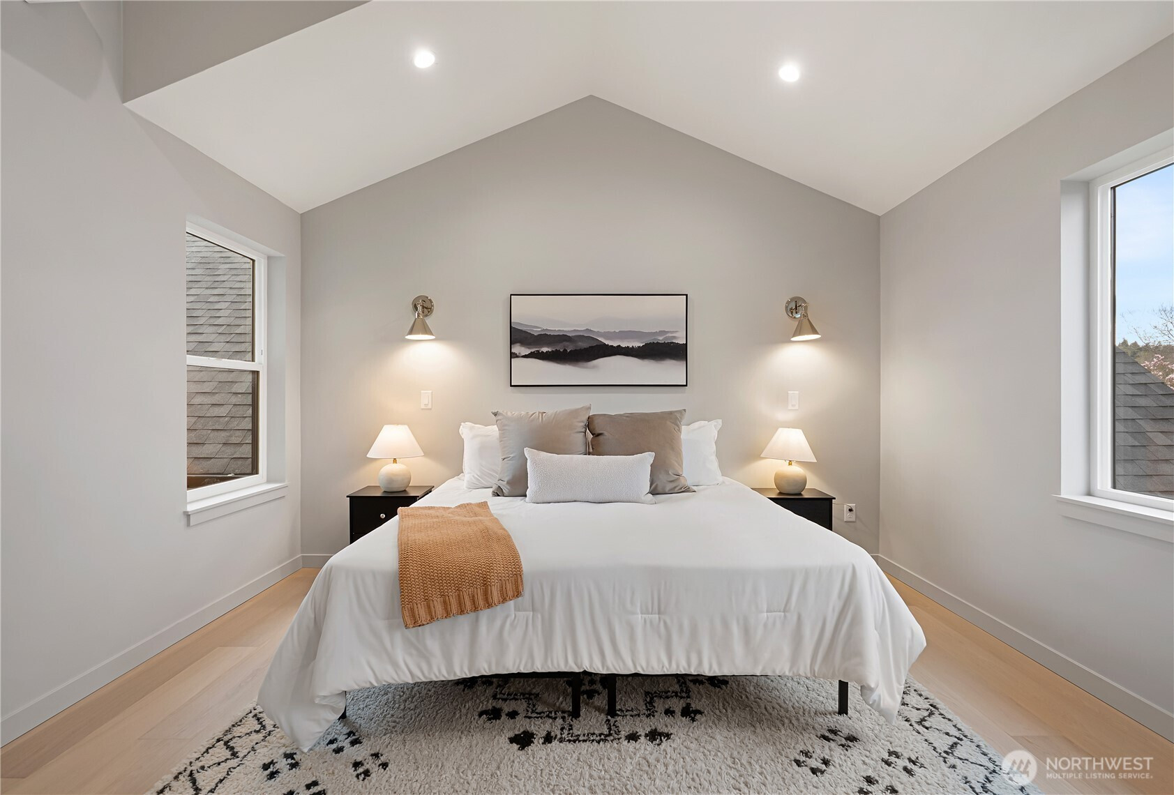 Modern new construction home with private garage in the heart of Sunset Hill. Ideally located on a quiet dead-end street just moments from some of Ballard’s most beloved destinations. Walk to the Ballard Locks, Golden Gardens, the Burke-Gilman Trail, Picolinos, Baker’s, and the vibrant shops and restaurants of downtown Ballard. Inside, thoughtful design and elevated finishes create a welcoming, contemporary feel throughout this 2-bedroom home. The main level offers an inviting open-concept living space anchored by a stylish kitchen featuring quartz countertops, stainless steel appliances, a custom tile backsplash, and generous cabinetry. Upstairs, vaulted ceilings bring an airy feel and abundant natural light to the upper level. The primary suite includes a walk-in closet and a beautifully finished ¾ bath with double vanity, heated tile floors, and a custom tile shower. A second bedroom and a full hall bath with heated tile floors complete the floor plan. A rare opportunity to enjoy brand-new construction in one of Seattle’s most desirable neighborhoods.