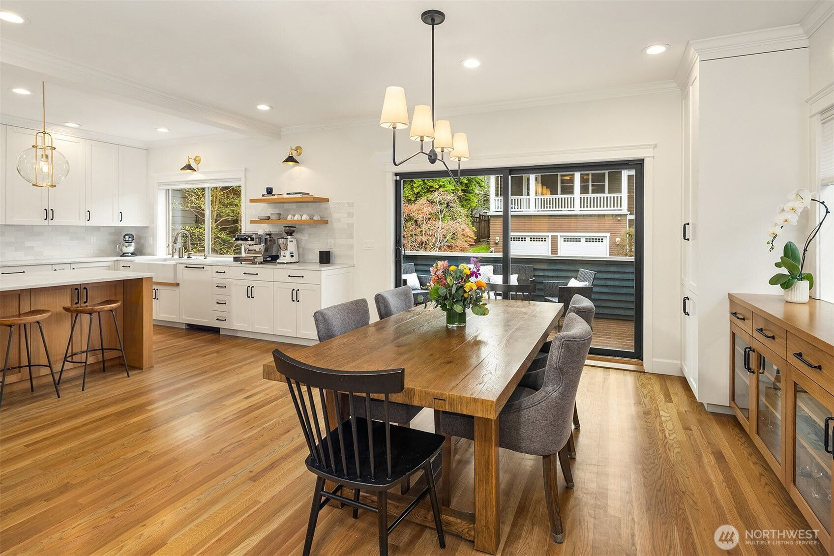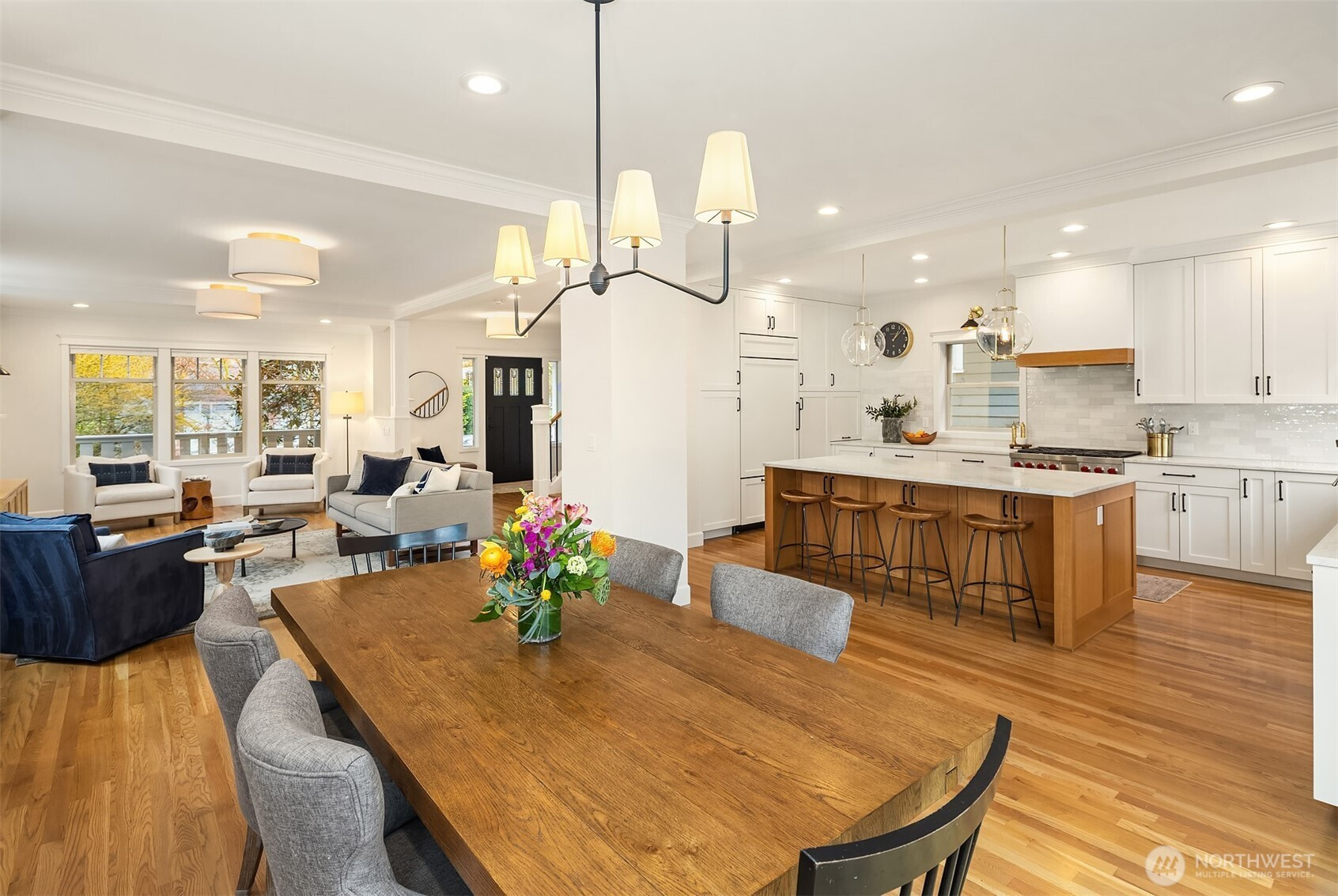 Fully renovated in 2022, this Madrona residence offers a rare blend of luxury, craftsmanship, and everyday livability. The current owners completed a comprehensive, fully permitted transformation, resulting in a home that feels both elevated and effortlessly functional. The chef’s kitchen serves as the heart of the home, showcasing stunning marble slab countertops, an impressive island, paneled Sub-Zero refrigerator, Wolf range, custom cabinetry, and a layout designed for seamless entertaining. Upstairs, a light-filled primary suite features two closets and a spa-inspired bath with heated floors, designer tilework, a walk-in rain shower, and a custom vanity. Three additional bedrooms, stylishly updated baths, and a versatile family room—ideal for movie nights, games, or guests—offer flexible living. Hardwood floors, curated finishes, and bespoke built-ins create a cohesive and refined interior, while major system upgrades—including a heat pump with air conditioning, a new furnace, and a water heater—provide modern comfort. Outdoors, professionally designed landscaping, a tiled patio, and a grilling deck create an inviting retreat. A temperature-controlled 350-bottle wine cellar and a spacious two-car garage with additional storage and driveway parking complete this exceptional offering. Ideally located just minutes from Lake Washington, parks, top-rated schools, restaurants, shops, and with easy access to downtown and the Eastside.